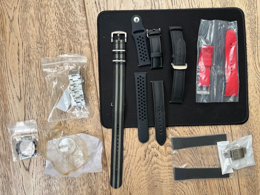 Hi r/watchexchange, I am looking to sell my Orient Ray 2. I am the original owner. In 2023, the watch was upgraded to a double dome sapphire, as well as a ceramic bezel (and bezel insert), all from Crystaltimes. The bracelet was also upgraded to a Strapcode/Miltat oyster-style bracelet. While I try to take good care of my belongings, I have worn this watch, on and off, since I purchased it in 2017/2018, so condition should be commensurate with its age. There are also marks on the lugs from strap and bracelet changes. I do not have a timegrapher, but the watch seems to run relatively accurately. This will come as a full kit – box, papers, all extra bracelet links for the Strapcode bracelet. Also included are the original bezel, bezel insert, crystal, and bracelet, as well as a few extra aftermarket straps – an new and unused cut-to-size (CTS) FKM strap, two sailcloth straps, a bond nato, a perforated silicone strap, and a brand new red FKM strap. For more information regarding the watch, you can check out Orient’s website: [https://www.orientwatchusa.com/collections/sport/taa02004b9](https://www.orientwatchusa.com/collections/sport/taa02004b9) Price: $250 shipped in the CONUS. Not looking for trades at this time. Please let me know if you have any questions. Thanks for looking.
