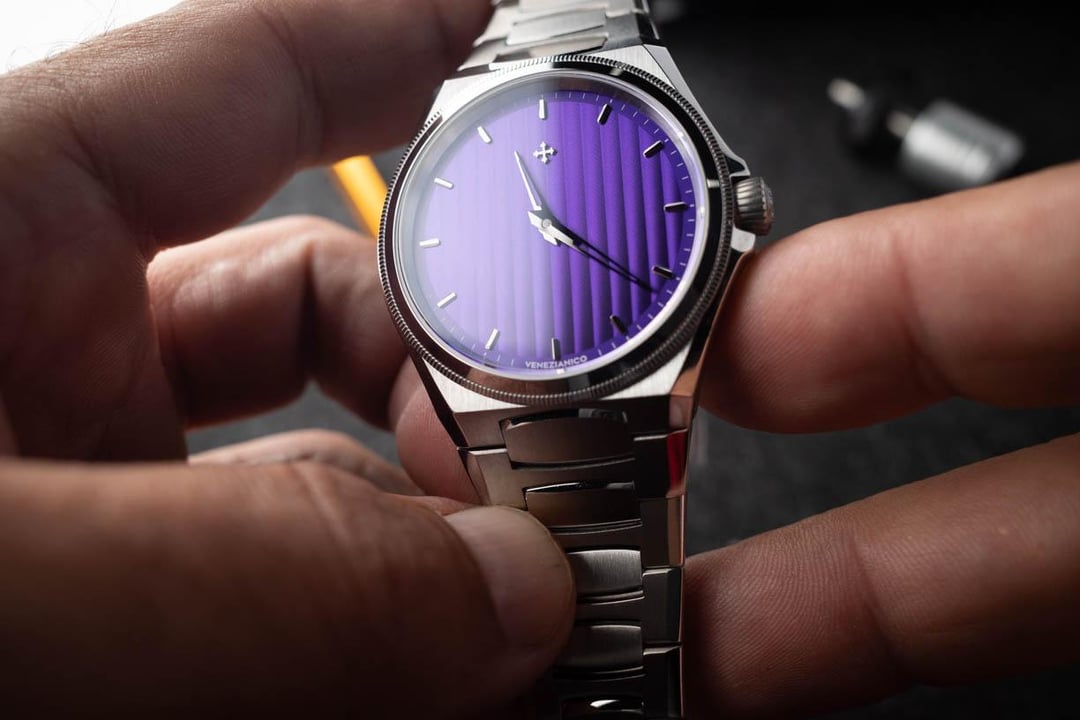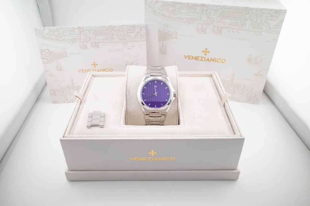 Timestamp: [https://imgur.com/a/TLnqYui](https://imgur.com/a/TLnqYui) Selling my Venezianico Arsenale 40 — Ref. 6221501C. This was a catch and release for me: I wanted to try something elegant and thin, but ultimately it won’t land in my rotation as much as I hoped. Condition: * Excellent overall, almost new. Can’t find any scratches on the watch, maybe there are some hairlines somewhere, but hard to even find. * Movement runs reliably If you’re looking for a watch that can dress it up or still work as a sports watch, the Arsenale is a good choice. It’s a sleek automatic that has Italian flair and presence. At just under 9 mm thick in a 40 mm case, it wears incredibly comfortably under a cuff, comfortable to wear, while the vertical Côtes de Genève dial adds real dial depth and refinement. I really liked the integrated bracelet. Sleek, seamless, and it doesn’t feel like a typical microbrand throwaway — it punches above its weight in both craftsmanship and style. Find out more about this piece here: [https://www.venezianico.com/products/arsenale-40-6221501c](https://www.venezianico.com/products/arsenale-40-6221501c) # Specs: * Case: 316L stainless steel, Ø 40 mm, lug-to-lug \~44 mm, thickness **8.95 mm** including sapphire crystal * Movement: Miyota 9029 automatic, manual-winding, ≈24 jewels, ≈42 h power reserve Dial: Vertical Côtes de Genève finish, clean two-hand layout, no date clutter * Crystal: Sapphire with anti-reflective coating * Bracelet: Venezianico’s Canova Concept stainless bracelet, * Water resistance: 50 m / 5 ATM * Retails for $940 USD # Kit: Full Kit **Price:** $525 including ground shipping to CONUS. (+$25 2 day) **Location:** Texas **Shipping:** CONUS only, insured shipping included **Payment:** PayPal G&S + 3.5%. F&F for only 10+ transactions **Trades:** Possible for 10+ transactions