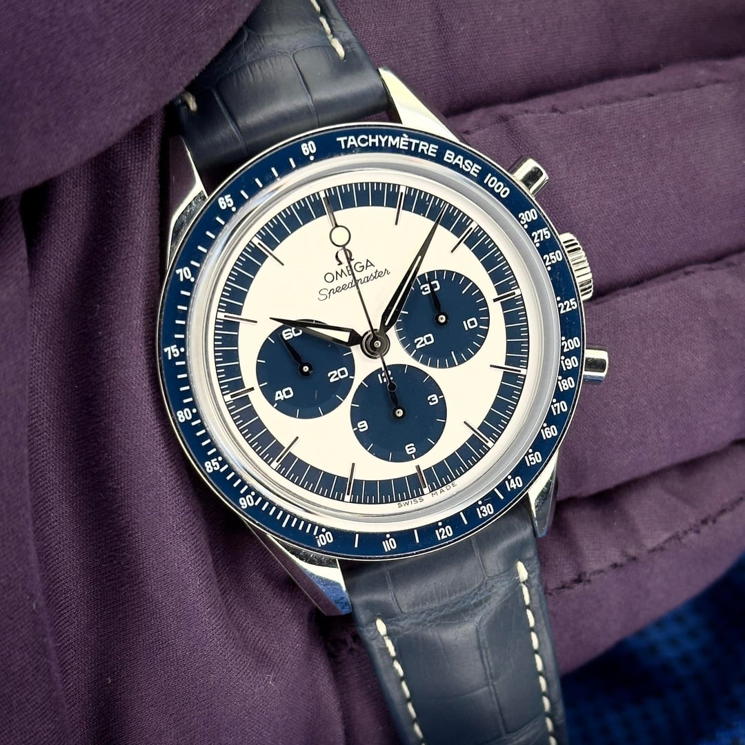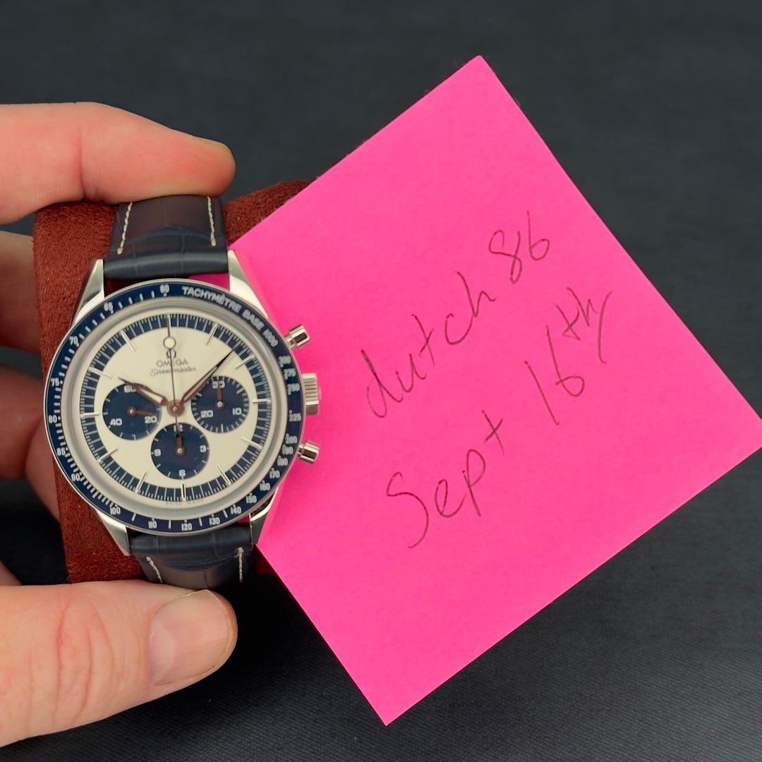 Let's say that you absolutely love the standard Omega Speedmaster Professional Moonwatch. However, you either feel it is A) too big, or B) too common, then this may be the piece for you! Coming in at just under 40mm and being a limited release of only 2998 units, this limited edition with it's "Panda" dial and blue accents is a very special watch. Make this one yours today! This example comes with the watch, the limited edition inner and outer box, original Omega strap and buckle, operations manual, pictogram card, and warranty card, and extra Omega Nato strap ($280 value!). Overall this piece is in excellent condition and functions as it should. Asking $6750 The watch will be shipped, overnight, fully insured, with signature required, as soon as funds clear. As for myself, I have many references from buying and selling across the various forums, Reddit, WUS, TRF, and others that I would be willing to provide upon request. Feel free to reach out to me with any questions and I will do my best to answer! Thanks for looking and feel free to follow me on IG for more! @the.apex.co