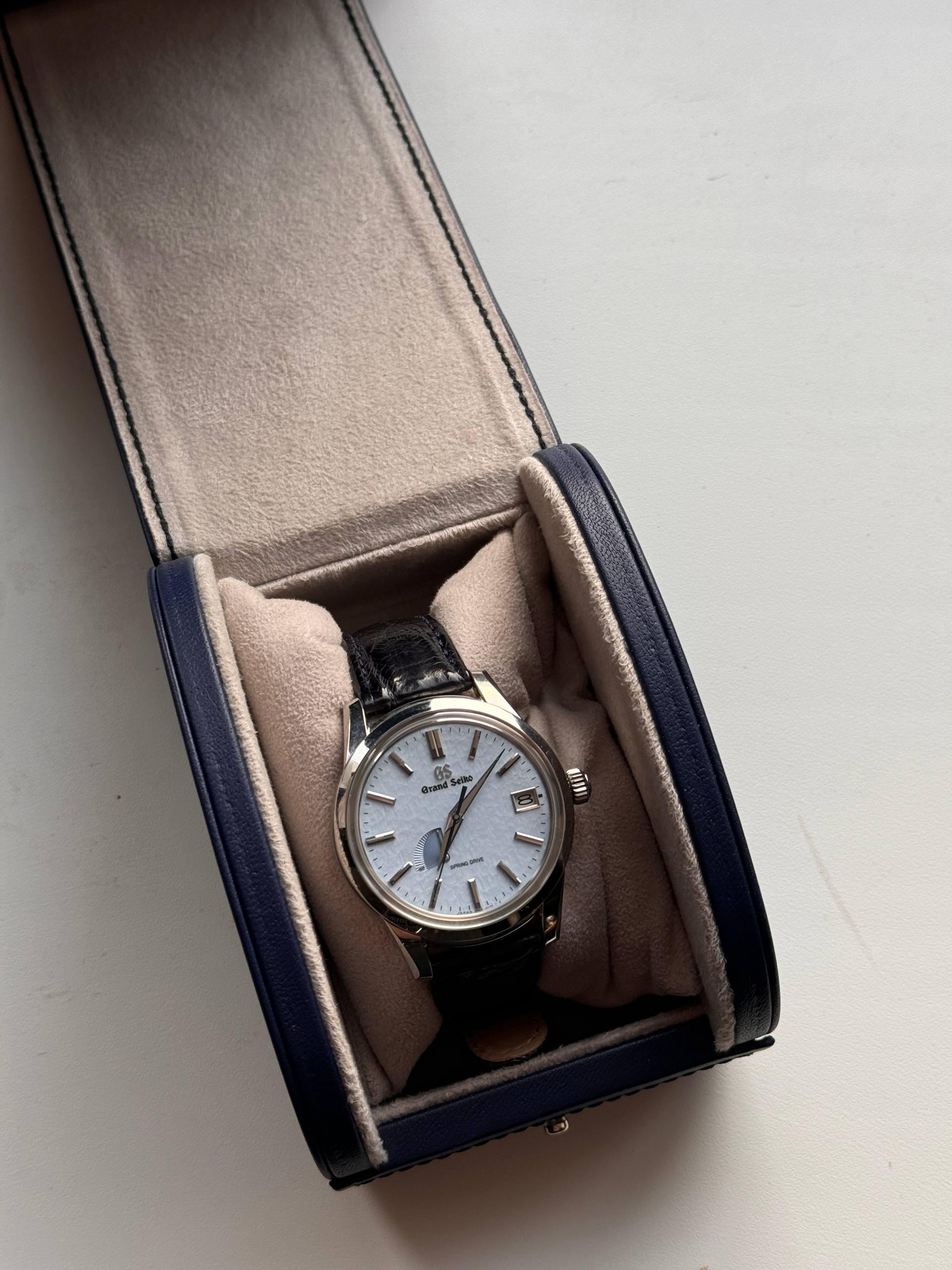 Presenting a truly gorgeous timepiece, the Grand Seiko SBGA407, known affectionately by enthusiasts as the "Skyflake." Grand Seiko is renowned for its incredible watchmaking skills and obsession with perfection, and this piece is a prime example of their artistry and technical innovation. I have sold many exceptional timepieces right here on r/watchexchange This is a stunning example of Grand Seiko's Elegance Collection, featuring the brand's unique Spring Drive movement. The movement, dial, and hands are all original and exemplify the pinnacle of Japanese watchmaking. Pics: [https://imgur.com/a/D0Er1qK](https://imgur.com/a/D0Er1qK) Timestamp: [https://imgur.com/a/ijg4tGy](https://imgur.com/a/ijg4tGy) This watch contains the high-grade Caliber 9R65 Spring Drive movement, conceived and assembled at the Shinshu Watch Studio in Japan. This revolutionary movement is a hybrid of mechanical and quartz technology, offering the best of both worlds: the soul of a mechanical watch with an accuracy that surpasses any traditional escapement. The watch is running incredibly smoothly and keeping exceptional time. The Spring Drive movement is rated to an impressive accuracy of ±1 second per day, or ±15 seconds per month on average. It boasts a 72-hour power reserve, with a convenient power reserve indicator right on the dial. A key feature of the Spring Drive is the mesmerizingly smooth, silent glide of the seconds hand, a true spectacle to behold and a testament to the continuous flow of time. The movement has a hacking function, so you can stop the seconds hand to set the time precisely. The watch features the flawless and captivating "Skyflake" dial. Inspired by the wind-swept snow of the Shinshu mountains, the dial has a delicate, textured pattern in a beautiful light blue hue. It features exquisitely polished, multi-faceted hands and hour markers that play with light beautifully, ensuring excellent legibility. The hands and markers are original, and they are just gorgeous! The distortion-free, mirror-like finish, achieved through Grand Seiko's signature Zaratsu polishing, is a sight to behold. The 40.2mm stainless steel case is a masterclass in finishing, with a delicate interplay of Zaratsu polishing and fine hairline brushing. It has a total thickness of approximately 12.8mm and a lug-to-lug distance of 48.5mm, making it wear very comfortably on the wrist. The watch features a box-shaped sapphire crystal and an exhibition case back, allowing you to admire the beautifully finished movement. It has a 19mm lug width and comes on its original blue crocodile leather strap with a three-fold clasp. The case and strap are both in NEW and unworn condition. What a stunning piece! A chance to own a top-quality Grand Seiko with a truly unique and beautiful dial, all in a tasteful and comfortable size. Asking $3,400 USD OBO including shipping. Accept Wire or possibly Zelle
