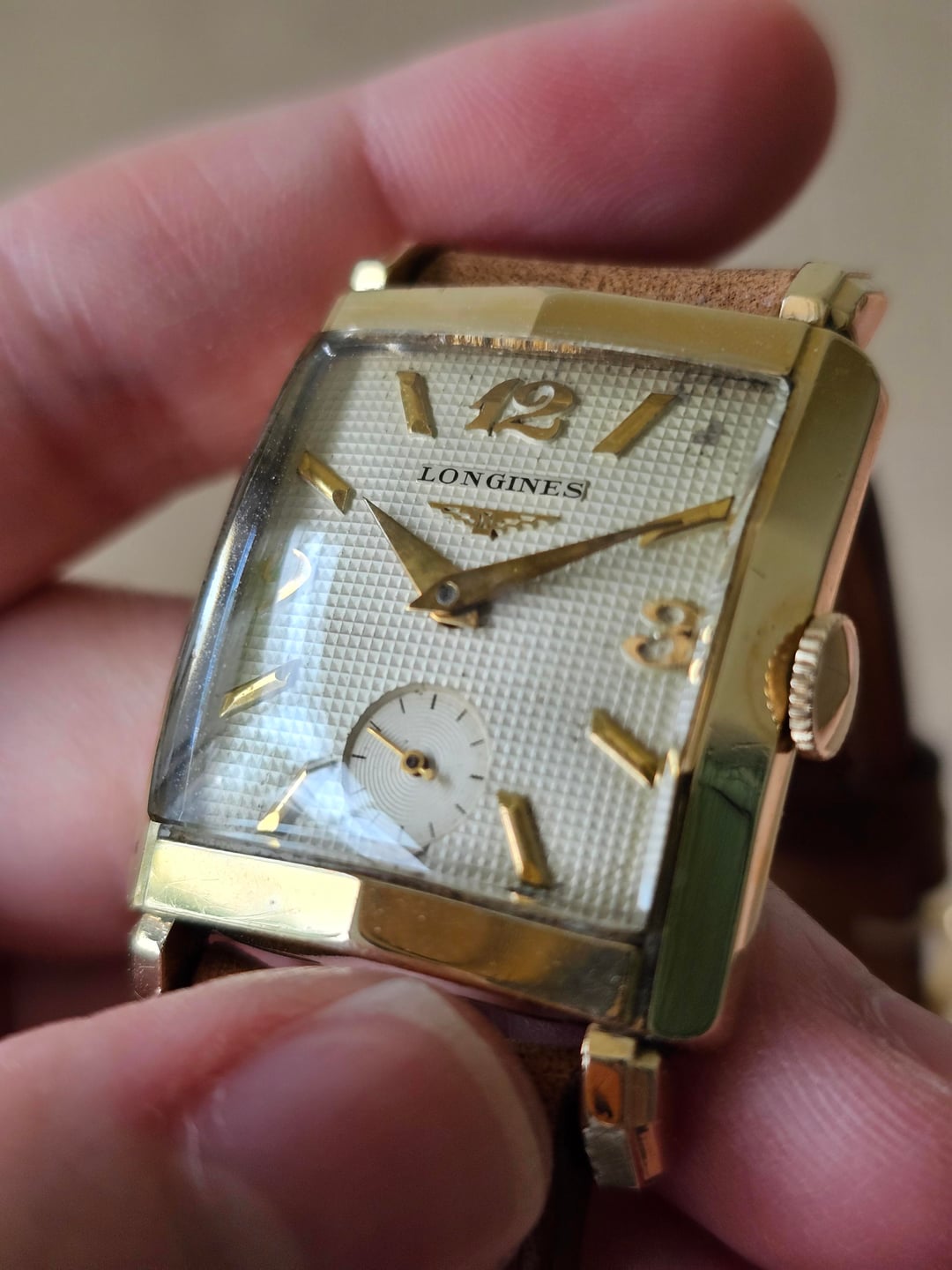 3 mesi fa | [WTS] 1950s Longines Waffle dial art deco tank vintage watch. Watch only - $325 | $325 | |