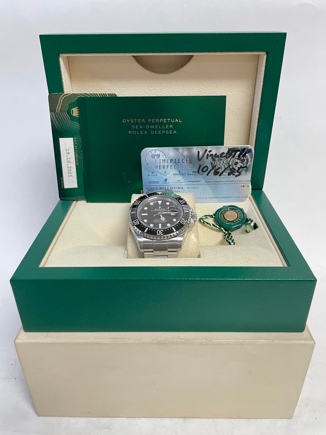 [timestamp](https://imgur.com/a/i117EzF) For sale is a like new condition Rolex Seadweller 43mm. It comes in pristine shape as shown in the pics. It comes as a fully complete set with all box, books, links, tag, and 10/2021 dated Rolex warranty card. Asking $12350 Trades welcomed and preferred WW insured shipping Vince B Brick and mortar watch store w/ countless references since 2006 Payments in the form of bank wire or credit cards + fee’s Tax if shipped to PA/NJ/FL without resale cert