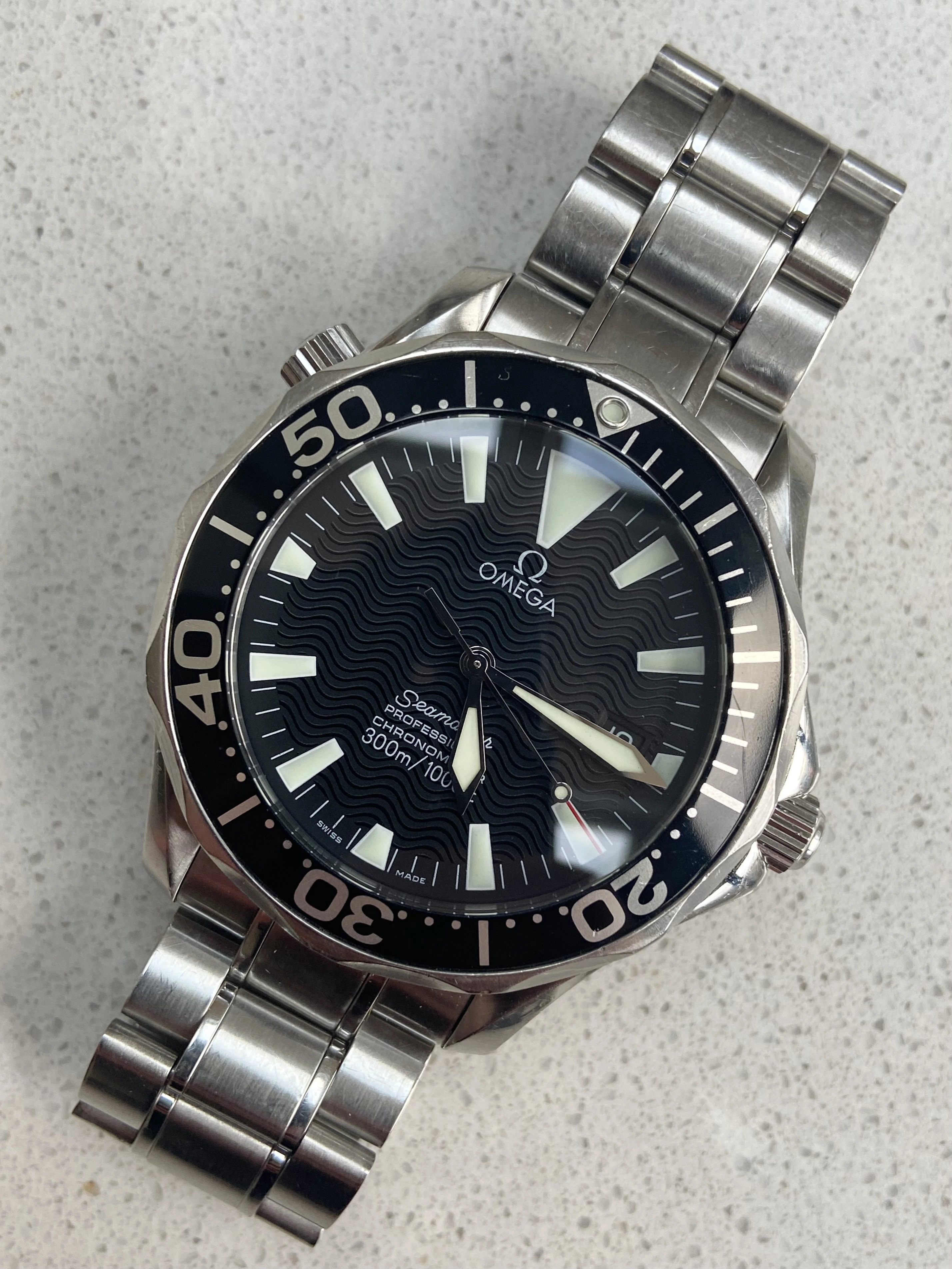 Offering for sale a Seamaster 300 ‘Peter Blake’ reference 2254.50. These are great watches, modern enough for daily wear but pre the current ceramic/coaxial, so nice and thin and retain the charm of the 60’s Seamaster 300 Big Triangle. This a lovely sharp example, I believe unpolished, keeping good time a several hundred pounds less than what’s currently on eBay etc.