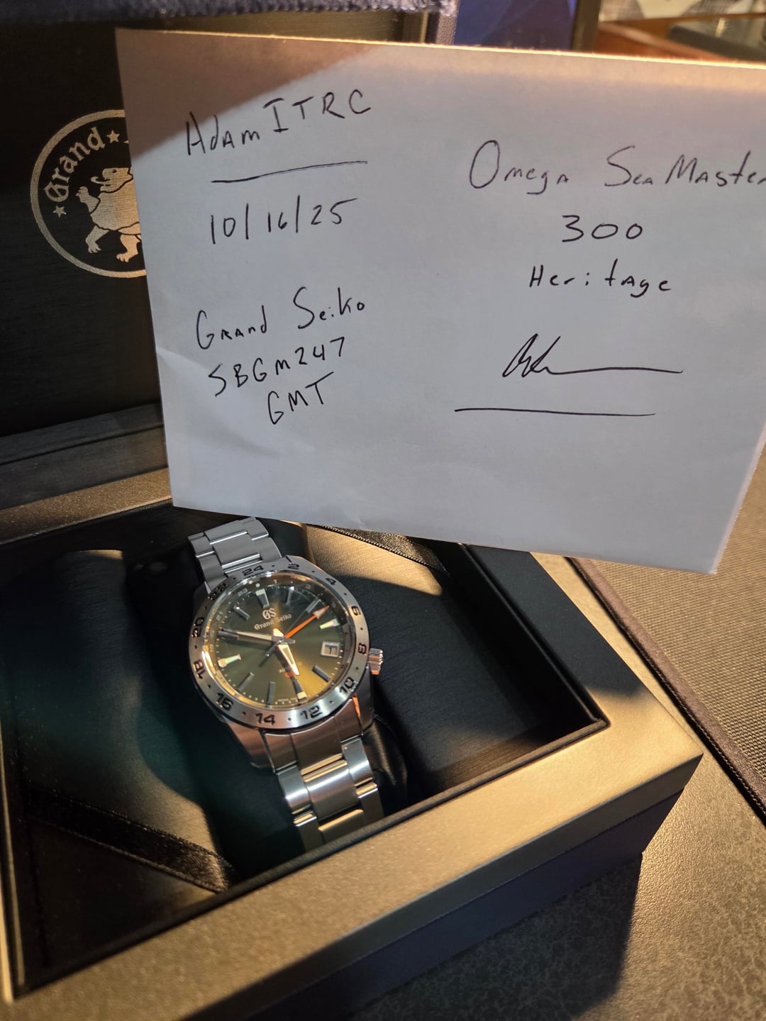Price: $2,700 (firm — fastest sale price) Payment: Zelle / Bank Transfer / Venmo / Local Cash ( no PayPal ) Shipping: Fully insured USPS Priority - CONUS only \*Buyer Pays Shipping\* Location: New York Timestamp: In photos and Complete Album: [https://flic.kr/s/aHBqjCxvEa](https://flic.kr/s/aHBqjCxvEa) 🔹 Details Model Ref: SBGM247 — Grand Seiko Automatic GMT “Green Dial.” Case: Stainless steel (39.5 mm) — excellent condition with minor hairlines or faint marks possible on polished surfaces. Hairline on Bezel near 10 marker. Crystal: Box sapphire — flawless. Bracelet: OEM stainless steel bracelet with all links. Movement: Cal. 9S66 — smooth hand-wind and accurate. I am the second owner; watch is complete and correct. Nothing missing — full kit (inner / outer boxes, manual, warranty cards, hang tag). 🧾 Notes Beautiful green dial Grand Seiko GMT, mint condition throughout. Consolidating my collection and freeing funds for other projects. Excellent example, complete and honestly described. Priced to sell — no lowball offers please. Please reply to this post before sending a chat. Plenty of feedback here, on eBay (ccurpier6x7j) and WUS (AdamITR). Happy to do FaceTime / Zoom / custom timestamp photos if needed. Buyer Must Have Some Sort of Feedback here, elsewhere, etc.