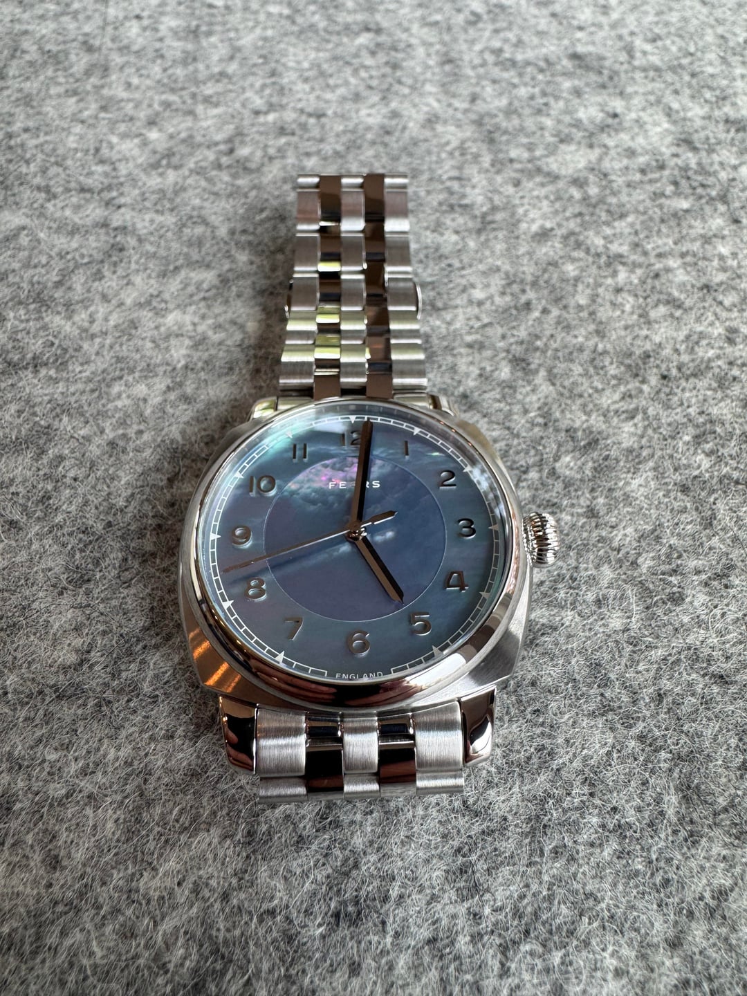 Hi r/watchexchange, up for sale is a Fears Brunswick Aurora 40mm with MOP dial purchased from Collective Horology which is an AD in the United States. It’s in fantastic condition and rarely saw any wrist time. It was purchased new at the end of 2024. This is my first post in r/watchexchange so I am willing to accommodate a potential buyer much more in this case. If you’d like a solid reference, FaceTime, etc, I’m always available. I also have other confirmed transactions on different subreddits. The watch is in Excellent Condition, a few very insignificant scratches on the non-crown side, they are difficult to see unless you look hard enough in the right lighting conditions. The Bracelet was worn once and like new. Watch is keeping great time, though I don’t know the exact deviation. Dimensions & Specs: 40mm diameter, 20mm lug width, 46.5mm lug-to-lug, domed sapphire crystal, 150m WR, Top-grade La Joux-Perret G101 automatic movement, Alcantara strap with calf-lined leather, bespoke 20mm bracelet, extra links, box, and paperwork. Timestamp: https://imgur.com/a/byyEtYb Pricing, Payment & Shipping: Price: $2900 USD Free shipping with a carrier of your choice (only shipping to the lower 48). I prefer to use UPS in most cases. Payment: PayPal F&F or +4.4% if PayPal Goods and services is preferred, Cashapp, Venmo, or Zelle as alternatives. Not looking for trades at this time, thank you and please let me know if you have any questions!