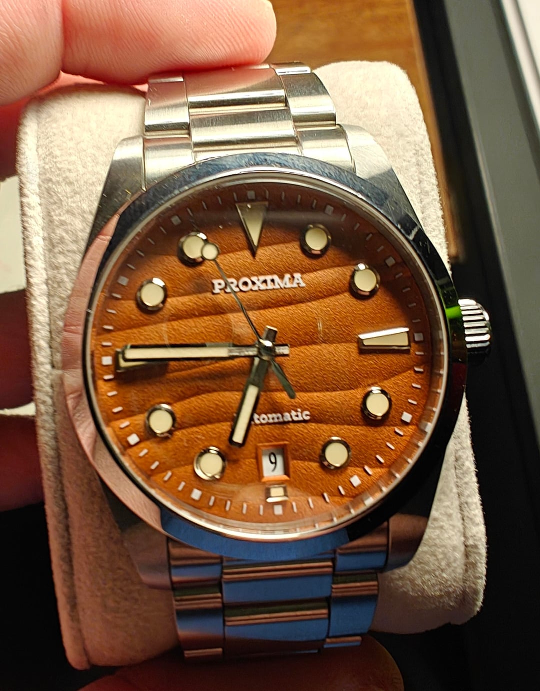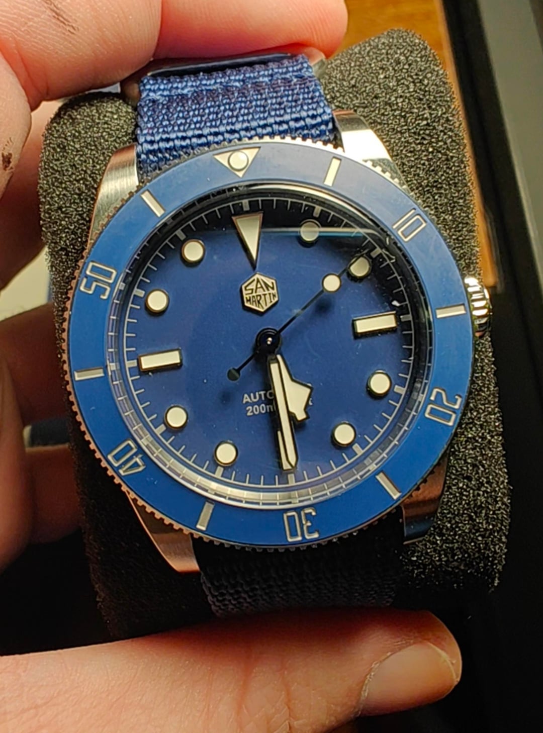 Alright selling these to raise some funds for back surgery, I'm officially old. Beat with me... Pain meds kicking in and tech is a struggle. 1st San Martin. No idea what the specific model is, using the AliExpress hard is very hard on valium. Cool guy. Orange lume and the grey enamel dial are super high quality but the piece just doesn't do it for me. Bracelet is great and basically unworn - had an issue with the screw while sizing it and San Martin sent me a whole section of links so Big Aristotle himself could probably rock it now. I photographed it on that ugly white one because my back hurts and I can't bend over to swap it back at the moment but trust, it looks ace on the bracelet. Idk wtf the market now is but this is like 9/10 almost new so idk 220 obo - argue with me about the price I'm on bed rest for 12 week 2nd San Martin - owner was a doofus and put loc Tite on the screws after sizing so if you have between maybe 7-7.25 in wrist you're in for a steal. Otherwise embrace the NATO lol. Idk maybe $110? If you're cool I'll throw in the helm Zulu, otherwise I'm keeping that, helm is my brand. All extra links included but good luck with that Proxima - are sand dials still cool or have we moved on? Pt5000 movement, everything works fine, killer finishing and bracelet. Cool watch and I may end up keeping it but it wears a bit small. 120 for the proxim Finally the seestern. Just glad I got my hands on this so I didn't blow 2k on being disappointed. Not for me but my friend who knows nothing about watches was like hey that looks expensive. I like to play a game with him where I send him pics of watches and ask how much he thinks they cost. He lost his mind when I showed him the Oris Kermit but I digress $75 but I'll probably just give it to your if you buy two other watches and aren't a dick about haggling.