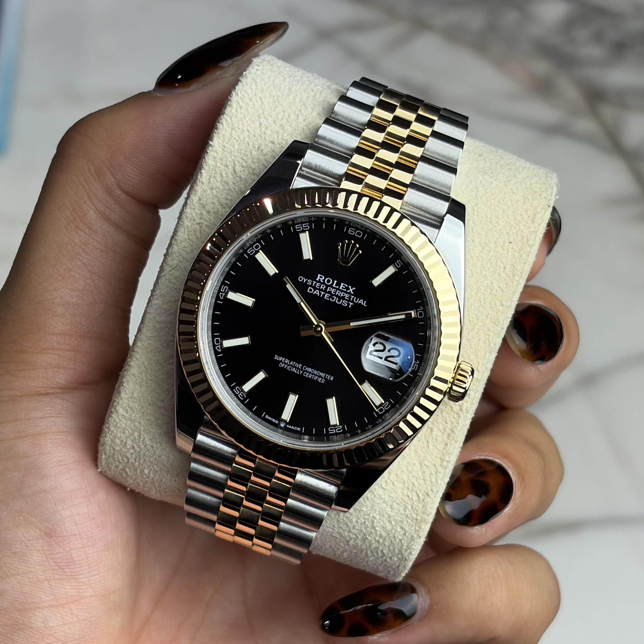 Timestamp: https://imgur.com/a/av1tRzT Album: https://imgur.com/a/dNG3eVQ ________________________________________________________________________________________ The Rolex Datejust 41 Black Dial Jubilee 126333 (2020) offers a refined balance of sophistication and versatility. Crafted from stainless steel and 18k yellow gold, it features a sleek black dial with luminous hour markers and a fluted bezel for a timeless two-tone aesthetic. Paired with the elegant Jubilee bracelet, this watch is in mint condition and comes complete with its original box and papers — a quintessential example of Rolex’s enduring design. This watch measures 41mm diameter, 47.5mm lug to lug, and 12mm thick. **Condition:** Mint condition. See pictures for the most accurate representation of condition. **Includes:** This example comes as a complete set with its original box, papers and accessories. _________________________________________________________________________________________ **Price:** **16,000** **Shipping:** Free shipping to US addresses! I'm willing to ship internationally at an additional cost to the buyer. *Local pickup available at our Scottsdale, AZ office. Sales tax may apply.* **Payment:** Wire, Zelle, Crypto, or CC (with 4% fee). **Trades:** Yes, open to trades up or down for modern Rolex, AP, or Patek Philippe. Thank you for your consideration and feel free to reach out with any questions! -Aneisa