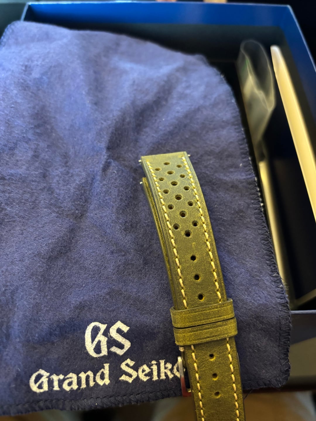 **Price: $3,600 firm** Shipping: $50 signature Payment: PayPal/Venmo **Grand Seiko SBGA491** ***Katana***. Full kit, warranty card dated 2023. Normal marks from regular wear and strap changes, but the bezel once took a good hit against a door handle which I tried to capture in the pictures, and reflect in the price. It looks worse here than it does in person. Comes with bracelet and all links, and Uncle Strap leather rally strap in green.