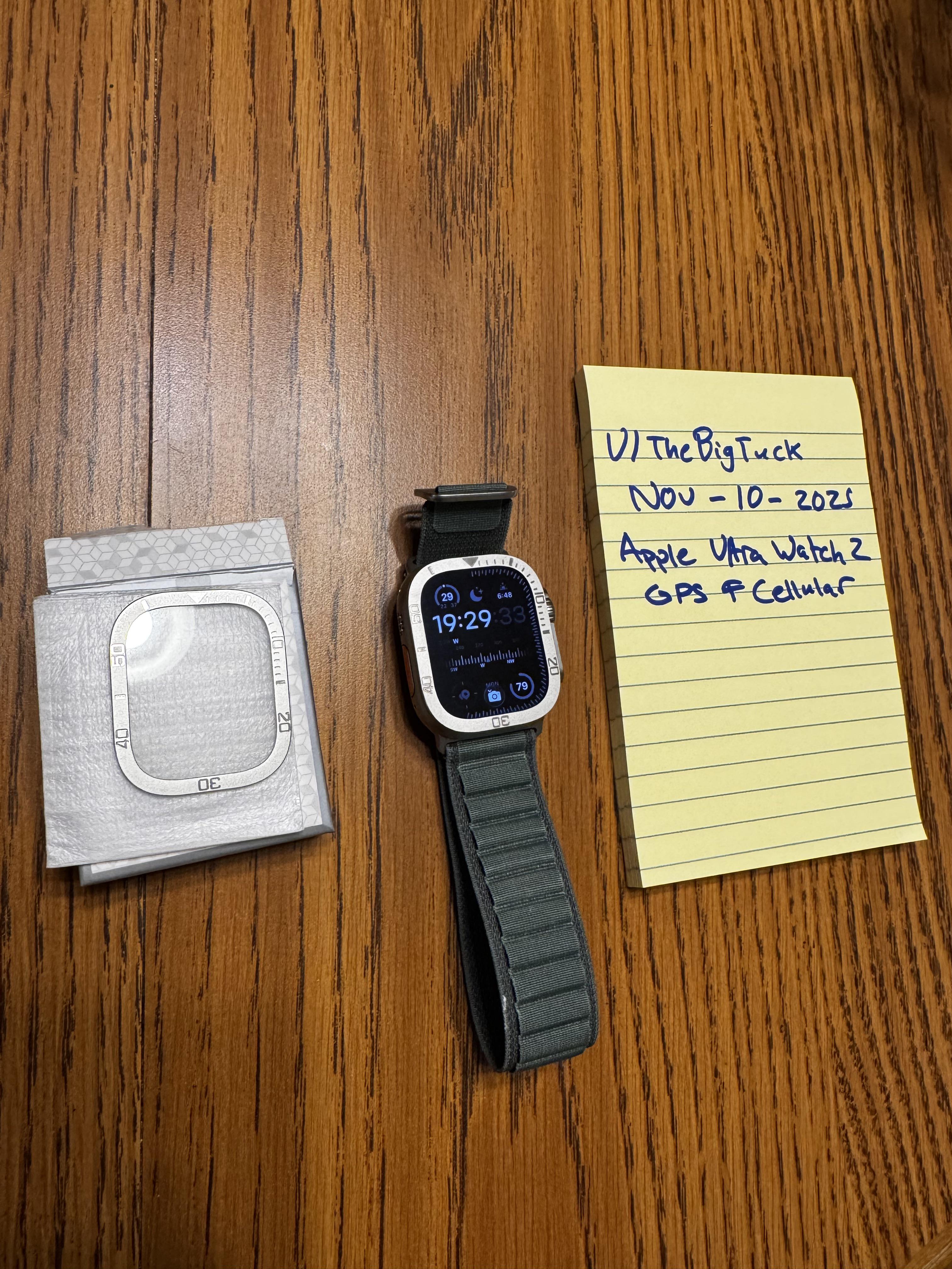 Looking to sell my Natural Titanium Apple Ultra Watch 2 w/ Forest green alpine strap - L! It’s in overall amazing condition with no visible scratches or markings. Comes with an additional bezel / screen protector, and charging cable. Looking for $350 shipped PayPal F&F or Venmo. If you have any questions feel free to send me a message. CONUS ONLY!