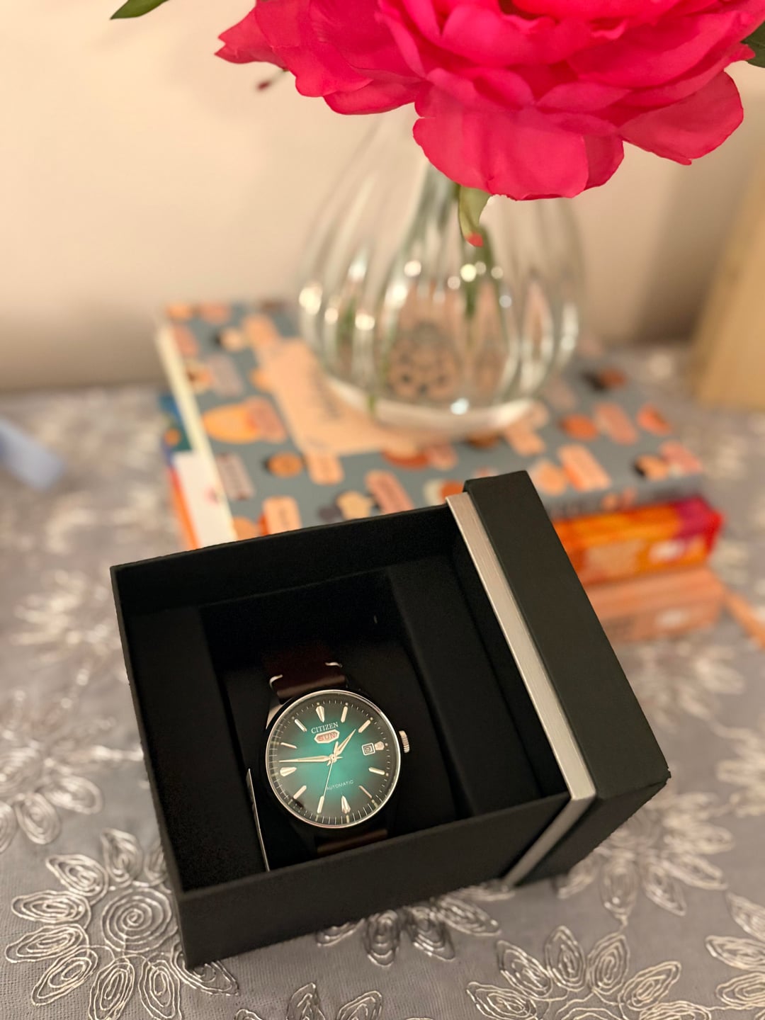[Timestamp](https://imgur.com/a/J7koMj6) WTS a watch from my husband’s collection- from Citizen- includes all original boxes/papers- Citizen C7 Automatic, model NH8390-03X, color- green (a beautiful emerald green), has some mild wear on the leather band from light use, $185 shipped in the USA PayPal goods and services. Please comment, then chat with any questions/interest. I do not have sales history here, but I have many positive transactions in r/pen_swap Thanks!