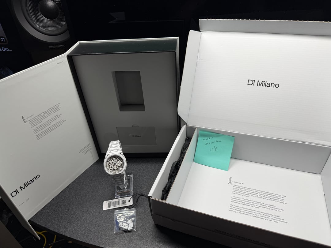 Hey folks D1 Milano Sketch Skeleton Automatic $700 shipped conus Worn couple times around house, not outside. Bracelet sized to 7 inch wrist, will come with all links. Full kit. The only sketch with a mechanical movement. Newly released by D1 Milano. Difficult to get since it’s coming from overseas with tariffs etc. $700 is less than I paid and less than retail from the brand. PayPal F&F. I have 55 positive transactions on watchexchange with good feedback so please read them. Also have an eBay store with hundreds of sales and hundreds of positive feedback so read them as well (offtherakcollectibles) Sale only, no trades. Ships from NYC so if you're in area can meet up locally. Please leave a comment here so I can view your transaction history and then message me if you're interested.