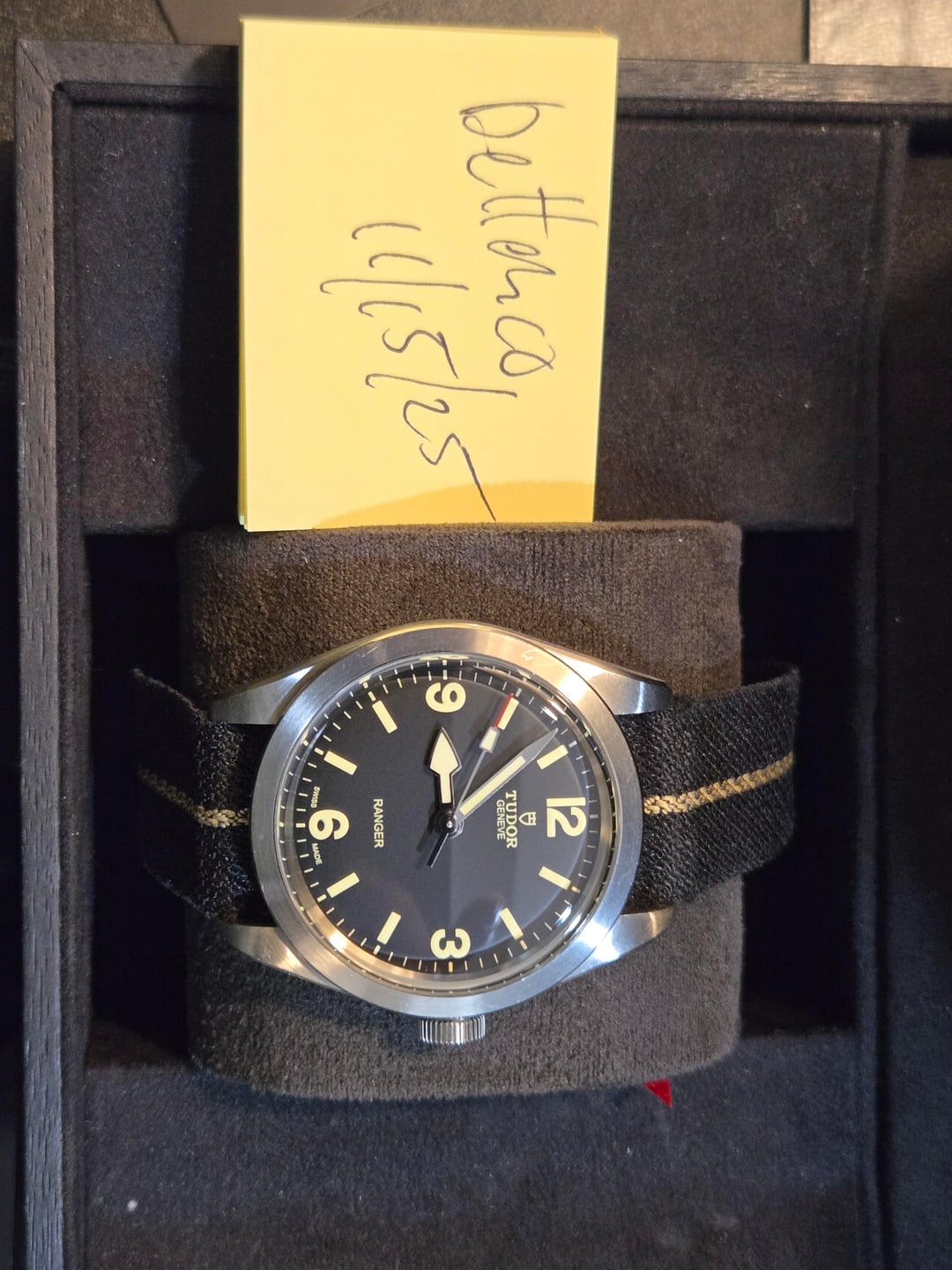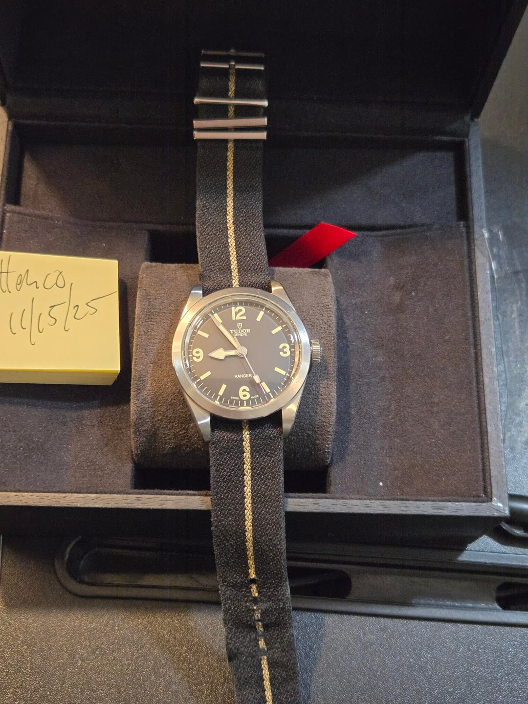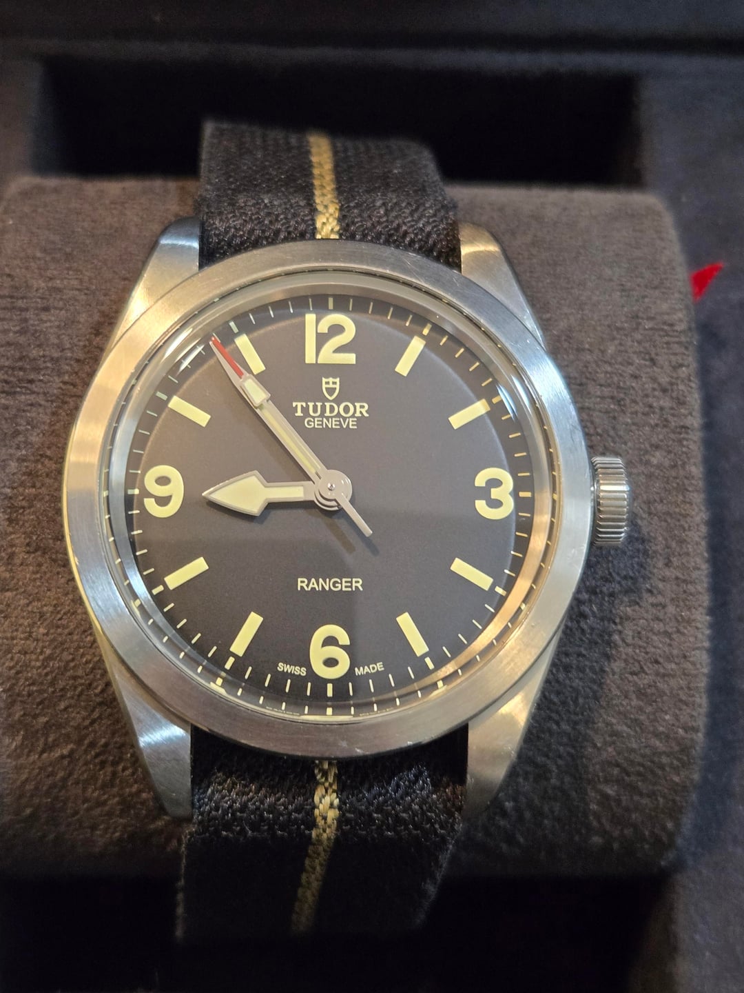 Beautiful full kit Tudor ranger 39mm Dial with a steel case. Box, papers, tag, and Tudor warranty card dated 2023 all included. watch is in very good condition. Slight wear marks with light wear, superficial only, Crystal is clear. EM MSI shoes some wear, but Plenty of life left. Mainly interested in trades for blue, white or silver dials: Seiko, oris, baltic, Omega, Grand Seiko, IWC, something with some funk. I'm also distracted by shiny things so give me a try for other watches, I apologize in advance for being picky. Trade value $2100 and I Have other watches I can add to a trade up for slightly higher value watches also. Check my feedback here and as I've also traded dozens of watches over the last decade plus on WUS under the same user name. Users with little or no feedback profiles will need to ship to me first on any trade offers.