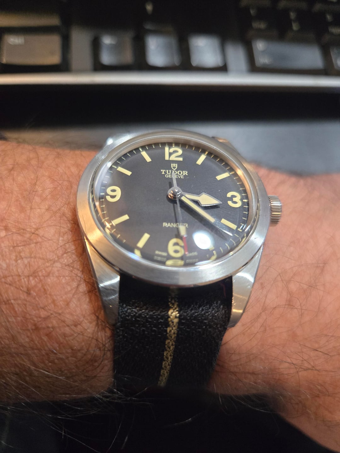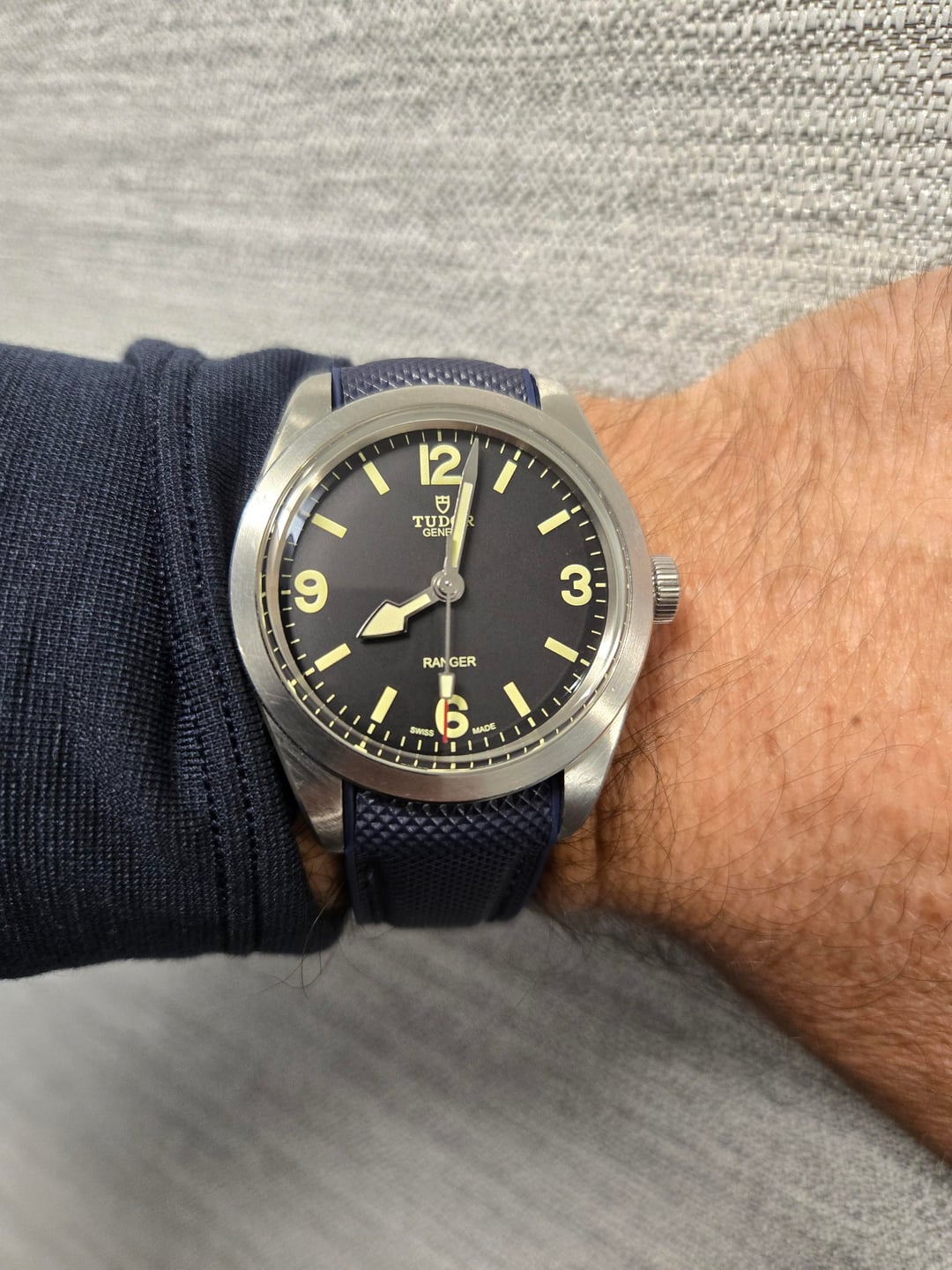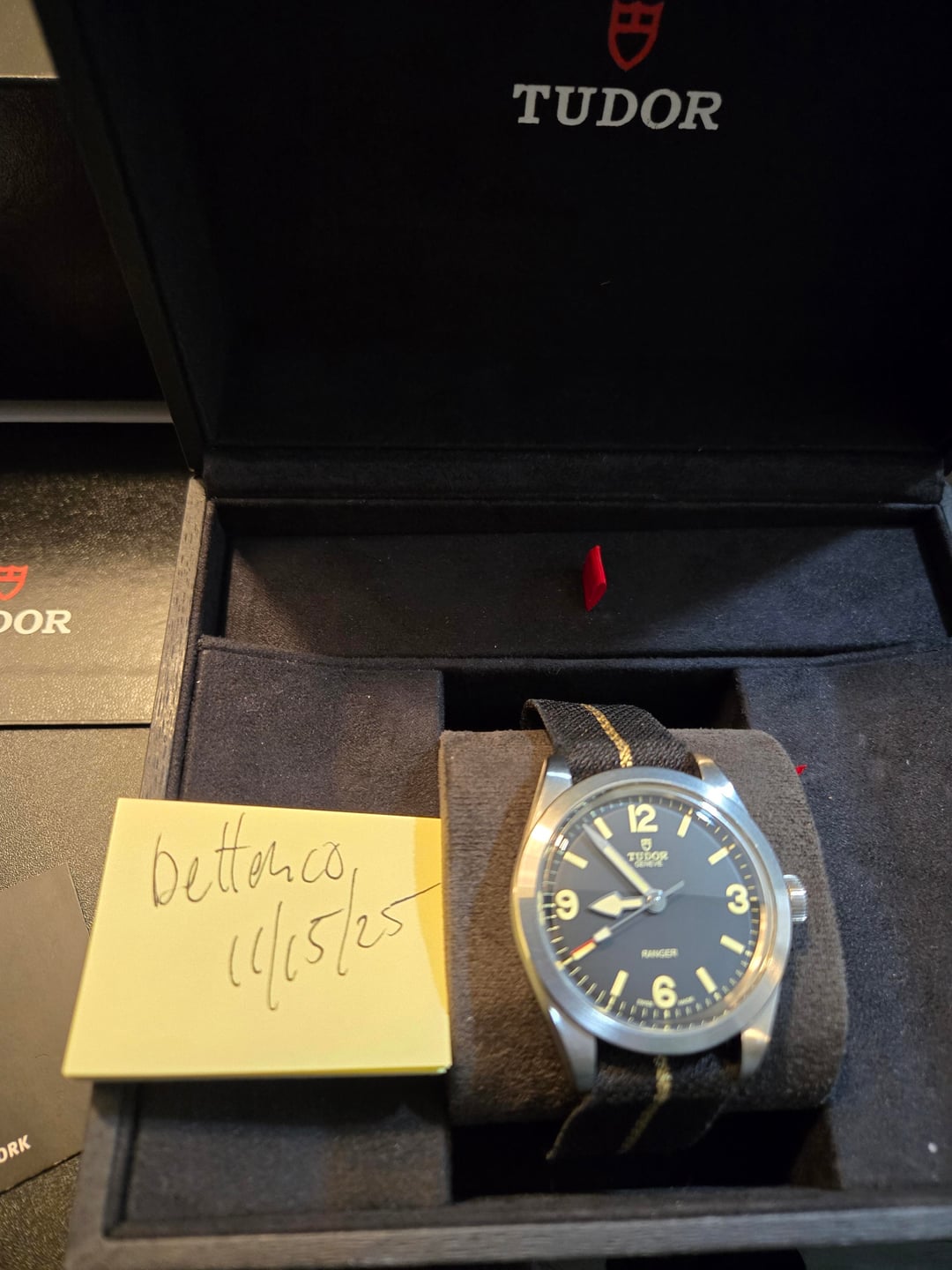 Beautiful full kit Tudor ranger 39mm Dial with a steel case. Box, papers, tag, and Tudor warranty card dated 2023 all included. watch is in very good condition. Slight wear marks with light wear, superficial only, Crystal is clear. EM MSI shoes some wear, but Plenty of life left. Mainly interested in trades for blue, white or silver dials: Seiko, oris, baltic, Omega, Grand Seiko, IWC, something with some funk. I'm also distracted by shiny things so give me a try for other watches, I apologize in advance for being picky. Trade value $2100 and I Have other watches I can add to a trade up for slightly higher value watches also. Check my feedback here and as I've also traded dozens of watches over the last decade plus on WUS under the same user name. Users with little or no feedback profiles will need to ship to me first on any trade offers.