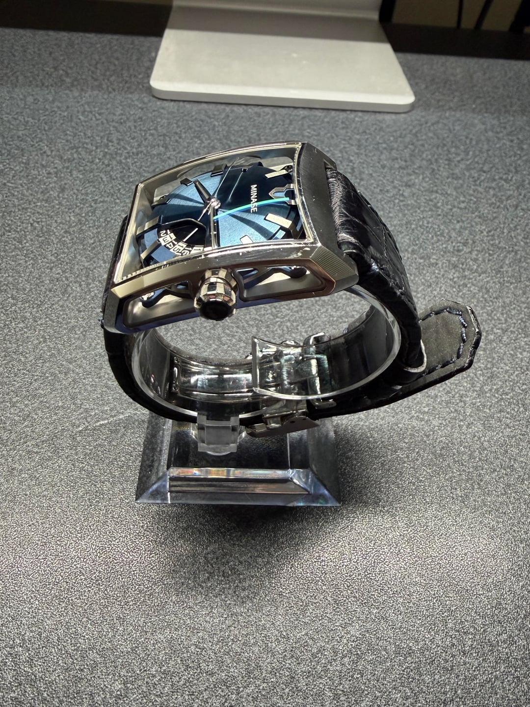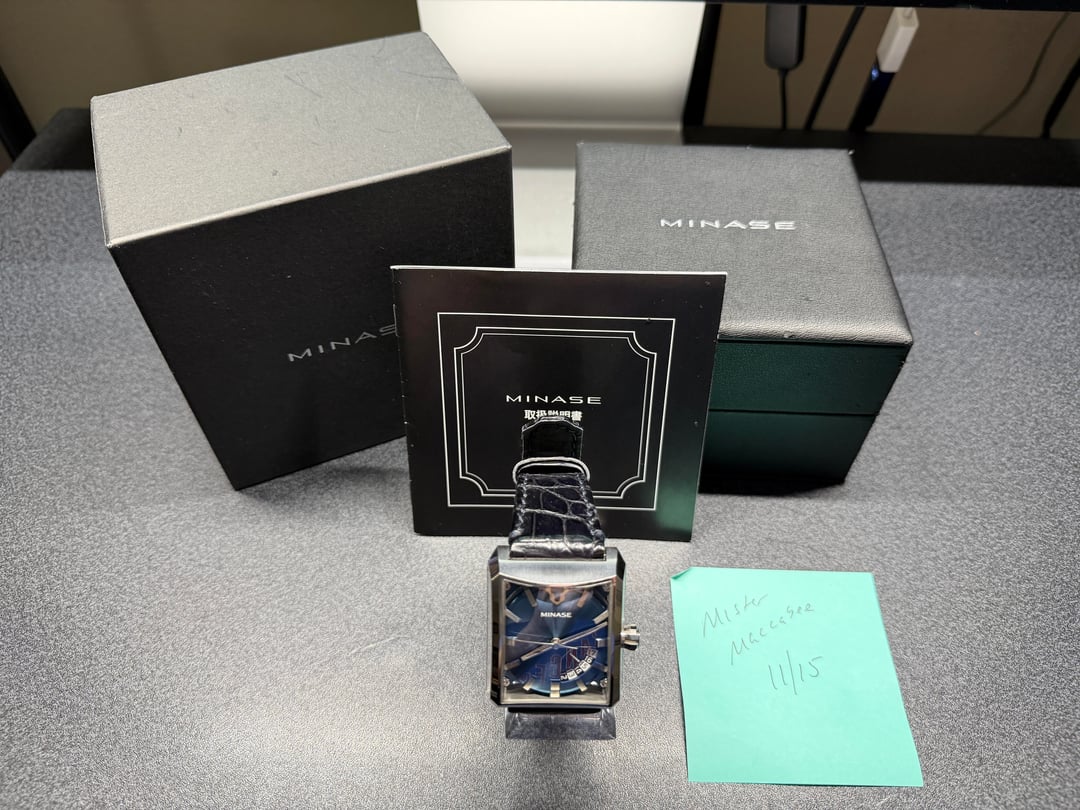 Hey folks Just picked this up secondhand. It's amazing! But I just purchased too many and need to clear some space. Model# VM03-L02SD. 38mm. Stainless steel/automatic. Everything seems to be working fine. Please see pics for condition. Looks great! Some minor desk diver marks around case. Comes on Minase blue alligator strap. $1995 shipped conus PayPal F&F or Zelle. I have 55 positive transactions on watchexchange with good feedback so please read them. Also have an eBay store with hundreds of sales and hundreds of positive feedback so read them as well (offtherakcollectibles) Sale only, no trades. Ships from NYC so if you're in area can meet up locally. Please leave a comment here so I can view your transaction history and then message me if you're interested. Thank you! \------------- Specs from Chronofactum.com: # Movement: * Swiss made self winding MINASE customized movement with hand polishing and perlage on plates and bridges * Caliber KT7001/1 * Base: ETA2824-2 * 25 jewels * 38h power reserve * 28.800 vibrations /h # case: * 316L stainless steel case * Window 1, top window: Dual spherical box type sapphire crystal * Non reflective coating * Window 2, back window: see through sapphire crystal * Window 3,4,5, side windows: sapphire crystal * 5 ATM / 50m water resistance * Dimensions: 38 x 46,5mm without crown * Thickness: 14 mm # dial, hands & numbers: * MINASE HiZ concept with individual components assembled to form a 3-dimensional dial. * Together with the movement and the hands, this structure forms an independent unit inside the case * hour, minute and central seconds hands * Date display * Indexes and hands with luminova # Wristband: * Finest quality hand made MINASE leather strap