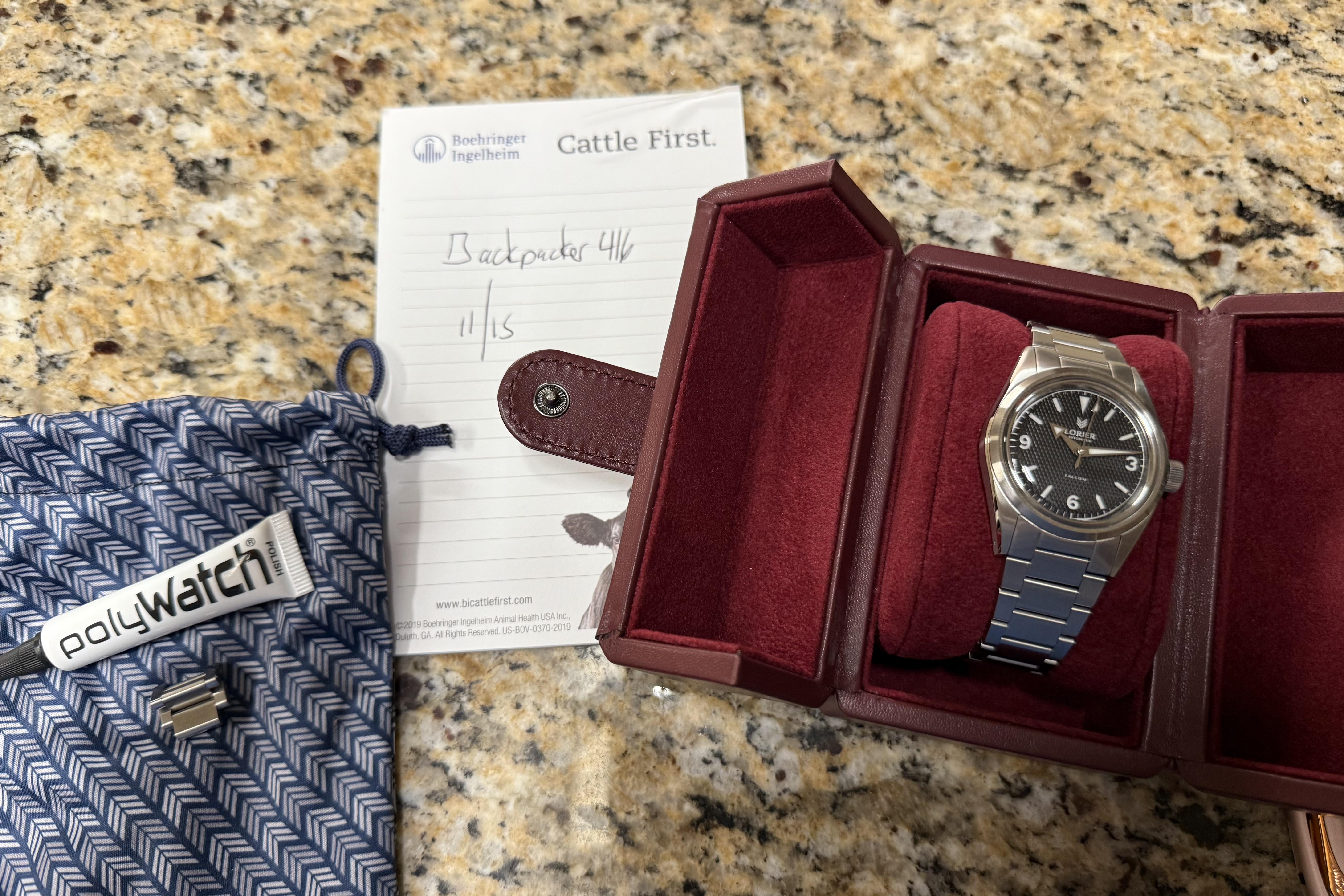 Looking to sell my newly acquired Lorier Falcon 3. I’m the second owner and literally just bought this a week ago here on the watch exchange. Beautiful watch but was an impulse purchase. May regret this later! Watch is in overall great shape with some desk marks on the clasp and bracelet as stated in the original post. Includes the box, bag, extra links and poly watch. This is my first sale on here with this watch being the first I’ve bought on here as well. I’ve bought and sold privately here and can provide contacts if needed. Looking for $400 net to me and shipping is on me. Conus sales only please. More than happy to send more pics. Thanks for looking!