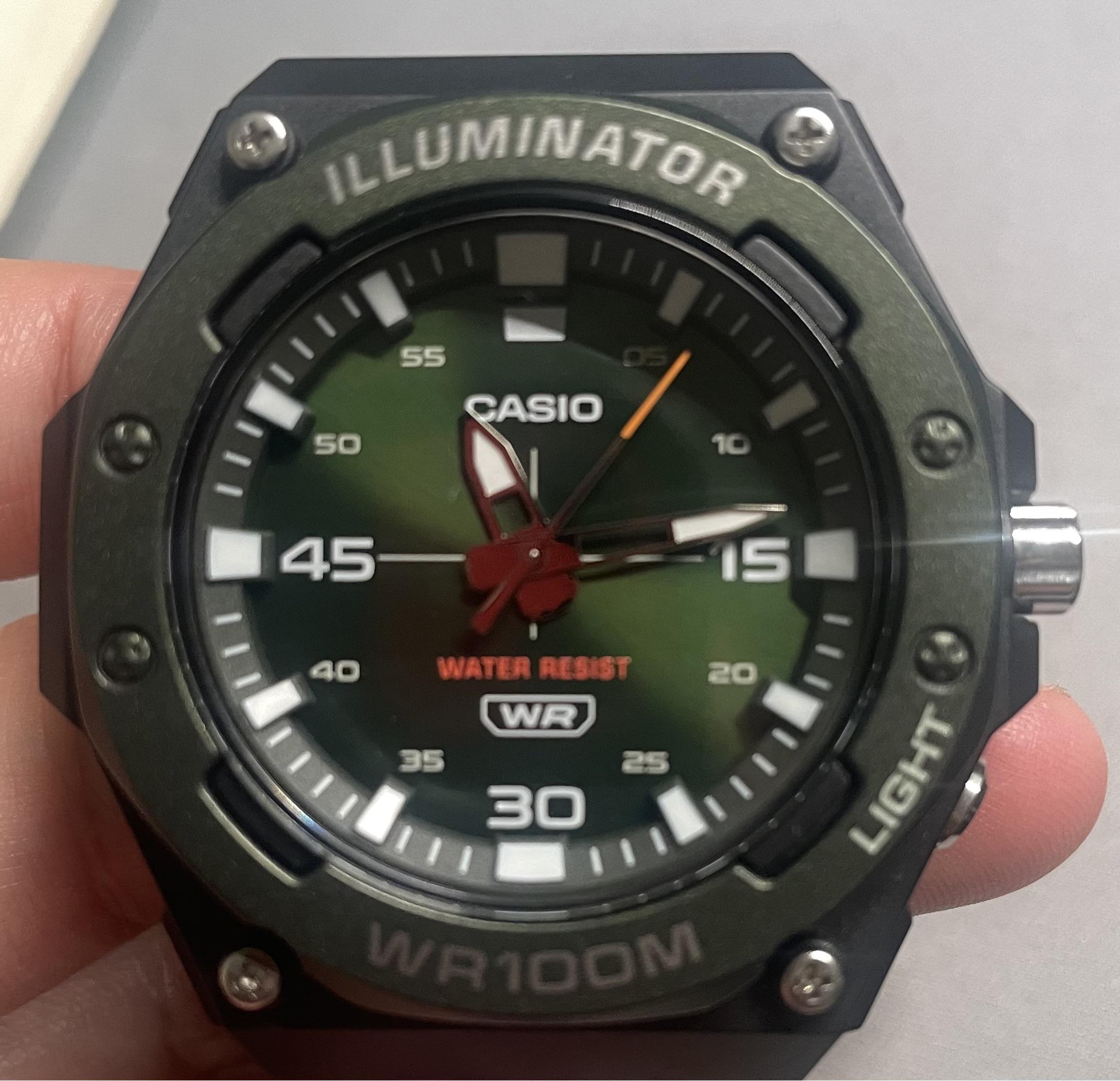 Let’s have some trade fun for cheap watch! I bought this Casio not long ago but it is just a bit too large for my taste, condition is absolutely perfect since I only tried it on once. Green dial is pretty and its 100M WR with an amber color light are both good for adventures. (btw the film on crystal fell off right after I took the picture…) I dont think I have the box anymore but I will include it if I can find it. However I do have the manual (if you want it). Buy: I will sell it for $30 with free shipping to CONUS, paypal ff or zelle only BUT!!! I prefer to trade! Maybe you have some watches you do not wear, we should give them a second life!!! Looking for a smaller Casio or Timex, similar value, especially Casio HDA-600 but feel free to DM me!!! Timestamp + photos: https://imgur.com/a/uNLQmzj