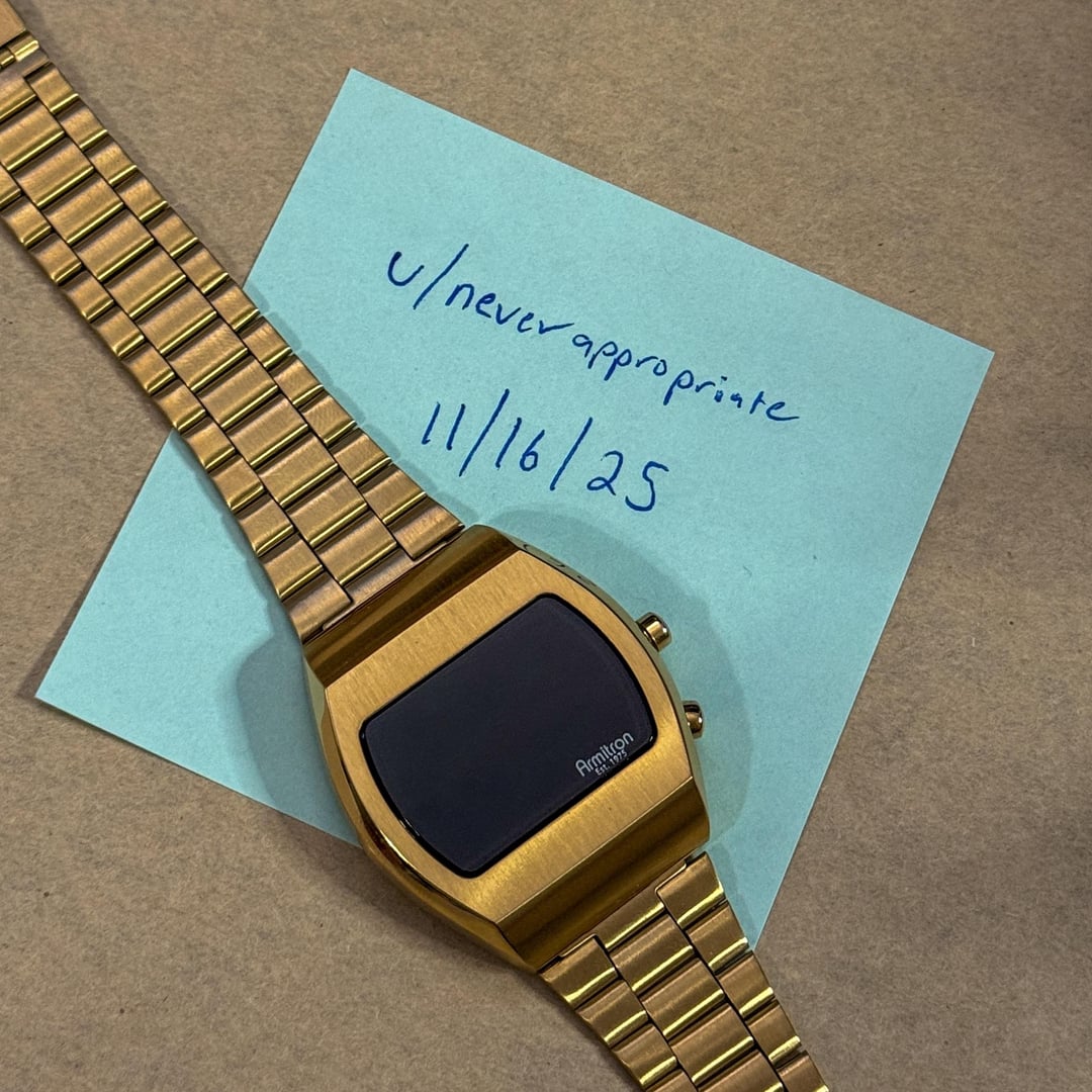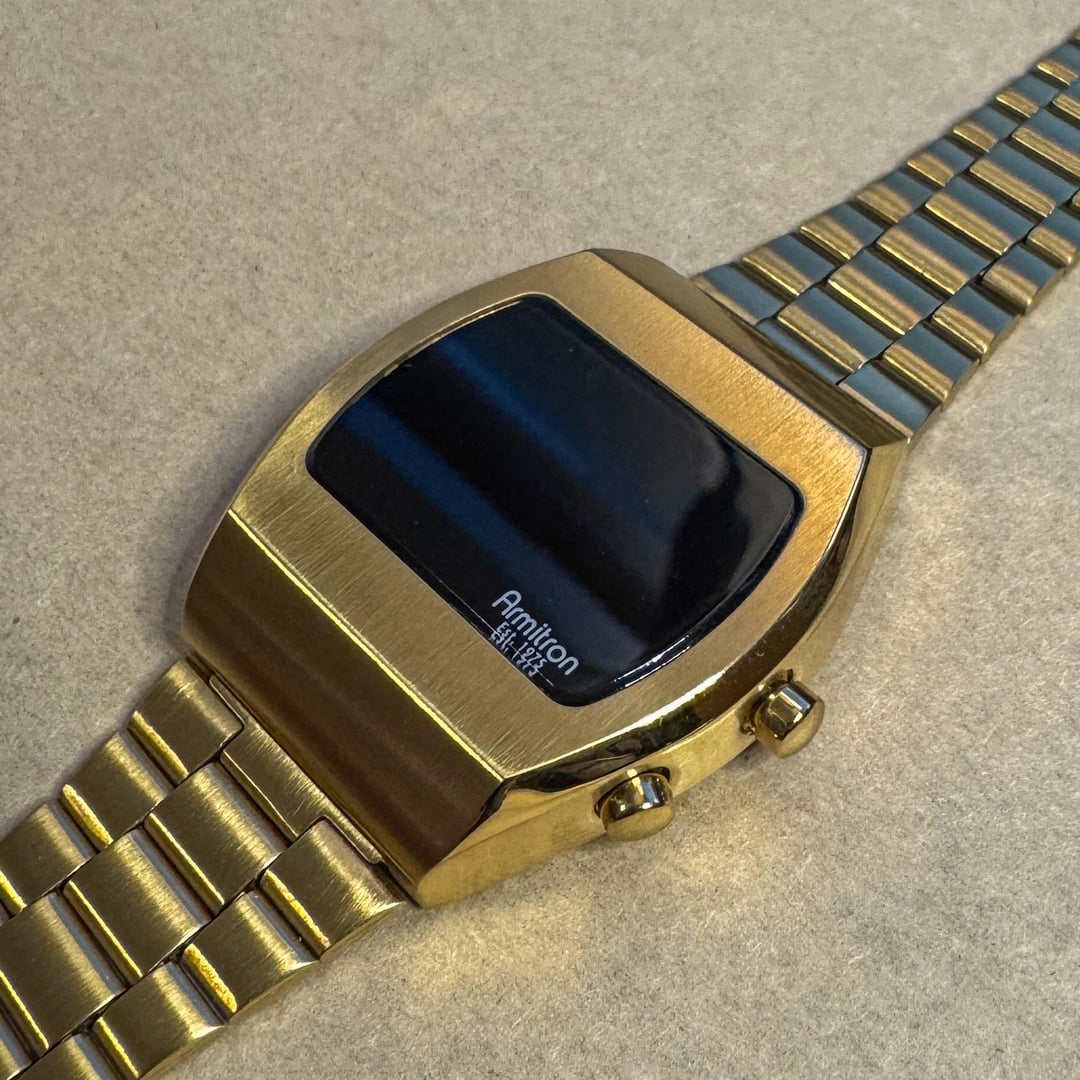 **Armitron Griffy - Gold & Red - $45 shipped CONUS** **Description:** \- Model: Armitron Griffy \- Dimensions: 34mm x 37mm x 9mm \- Case: Stainless steel - gold colored \- Crystal: Acrylic \- Dial: Flashing LED - digital \- Strap: Stainless steel - gold colored w/ fold over clasp \- WR: 50m **Condition:** Worn twice - in excellent condition. No dings,scuffs, marks, or scratches on case, crystal, or buckle. **Contents:** Watch Only **Payment:** PayPal F&F or Zelle preferred (PayPal G&S available: $50 total to cover fees) Price includes Shipping via USPS in CONUS from Tallahassee, FL. **Trades:** No trades at this time as I am looking to reduce my collection.