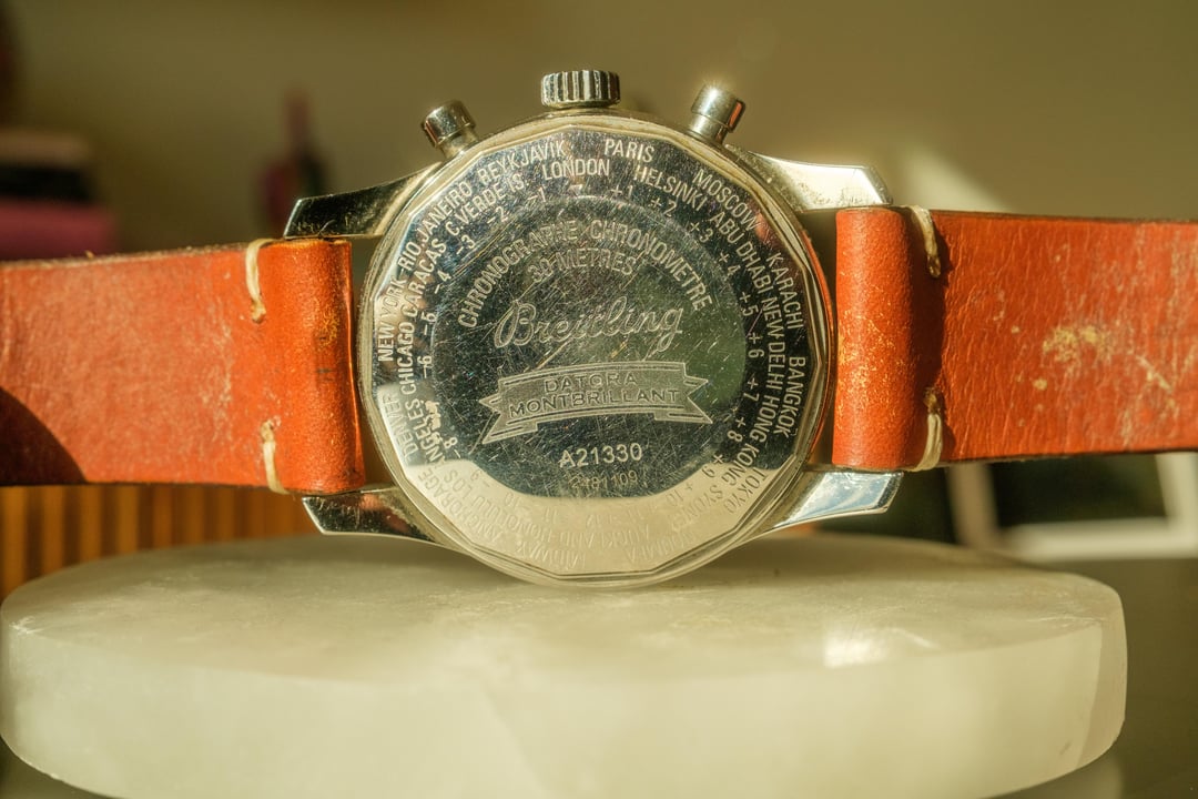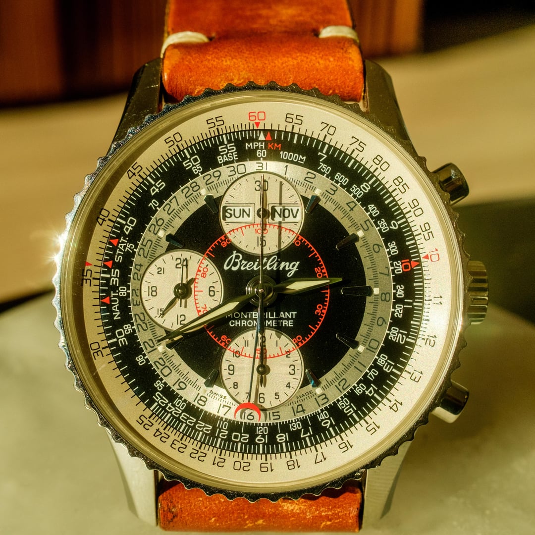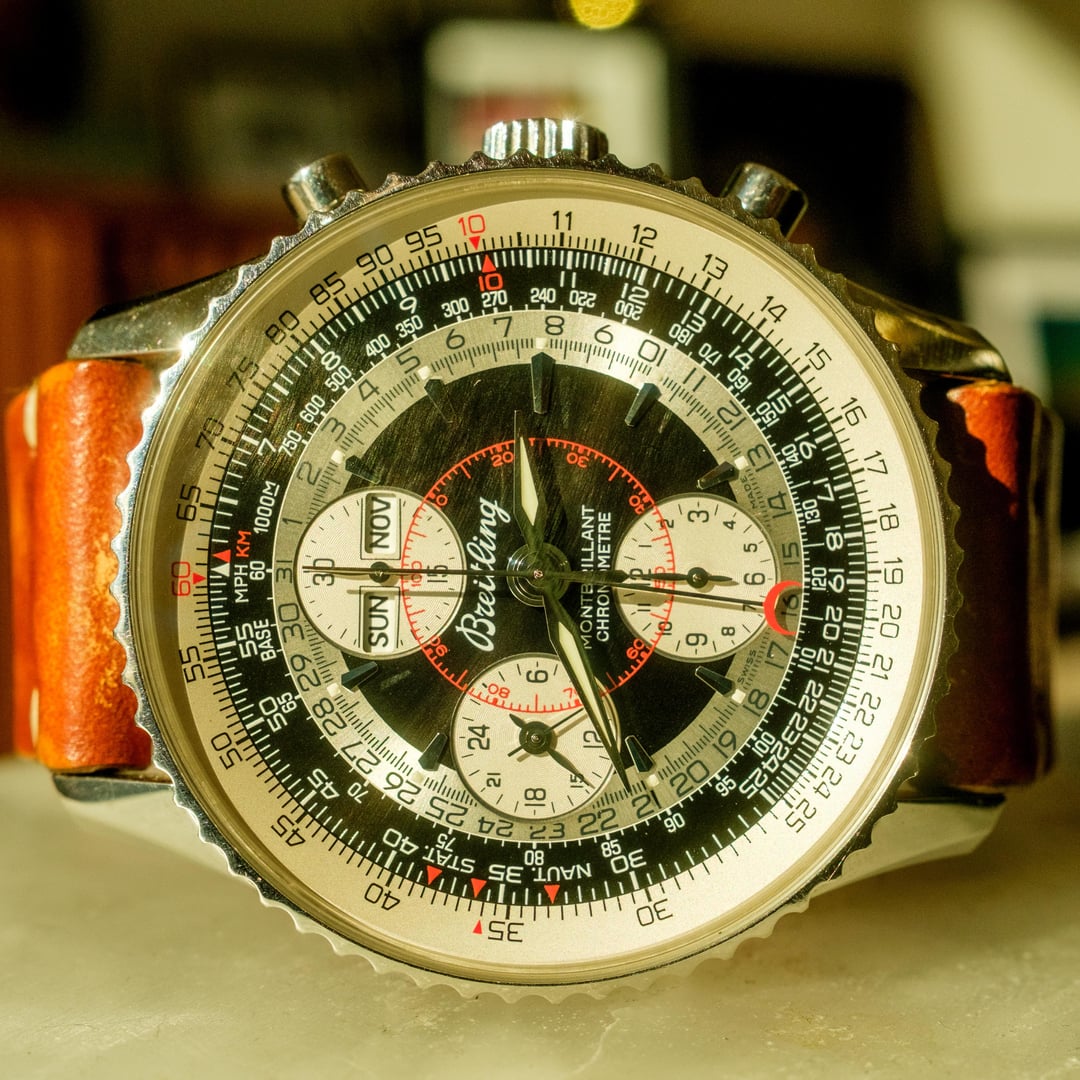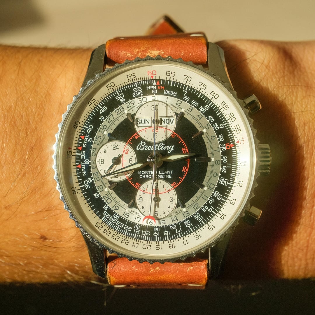 Selling a watch that has been in my collection for some years now. I’m reorganizing my collection and consolidating and due to the lack of wrist time this gets, I am letting it go. I’ve kept it in fantastic condition, no chips or dings. The bezel remains perfectly in tact and there are no scratches on the sapphire crystal (or the anti-reflective coating on top of it). All complications work perfectly well including the triple date, chronograph, and 12 hour subdial at 9 o’clock. I am including this on a vintage style leather strap that I got from etsy. It’s a very high quality strap. I am also including a black leather strap too. Diameter: 43mm Dial: Black/Panda Lug Width: 22mm Height: 14.1mm Movement: Breitling 21 automatic, 42 Hour Power Reserve Water Resistance: 30m. Not a screw down crown Lowering price (again) to $3150 USD. Shipping only to CONUS. No trades please. Pics + Timestamp: [https://imgur.com/a/BvmUGcD](https://imgur.com/a/BvmUGcD)