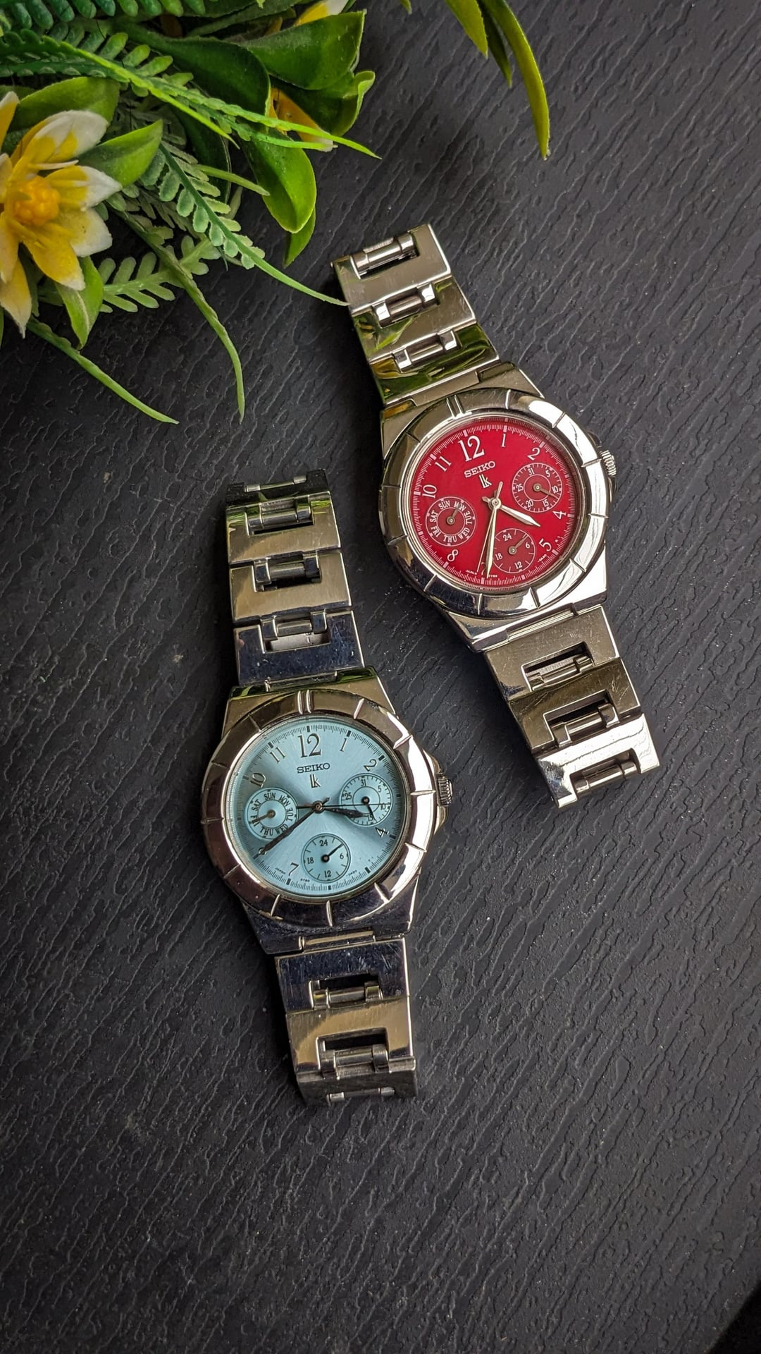 [wts] 1990's Seiko LK Lukia Women's Ice Blue and Red Dial with 3-Calendar Function 5y89-0b30 Price 150$ each