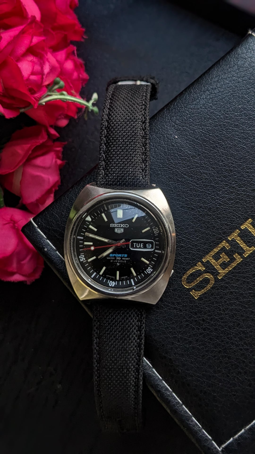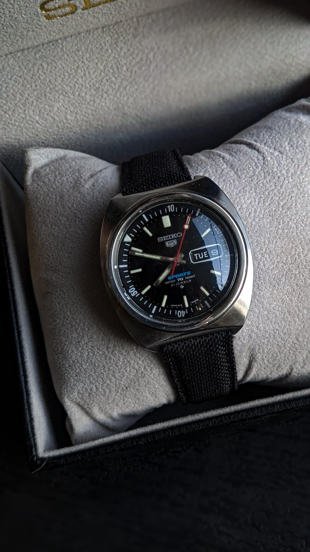 Hello Watchfam , Selling a Seiko 5 sports automatic watch which is also called Rally Diver watch have a reference number of 6119-6023 . Watch works well and overall good in conditioner . Watch comes with an aftermarket strap and box . watch features day date function . dial size of the watch is 40mm approx price $290 Timestamp : https://imgur.com/a/StEHOIH ✅ Comment before sending dm ✅ Delivery through FedEx