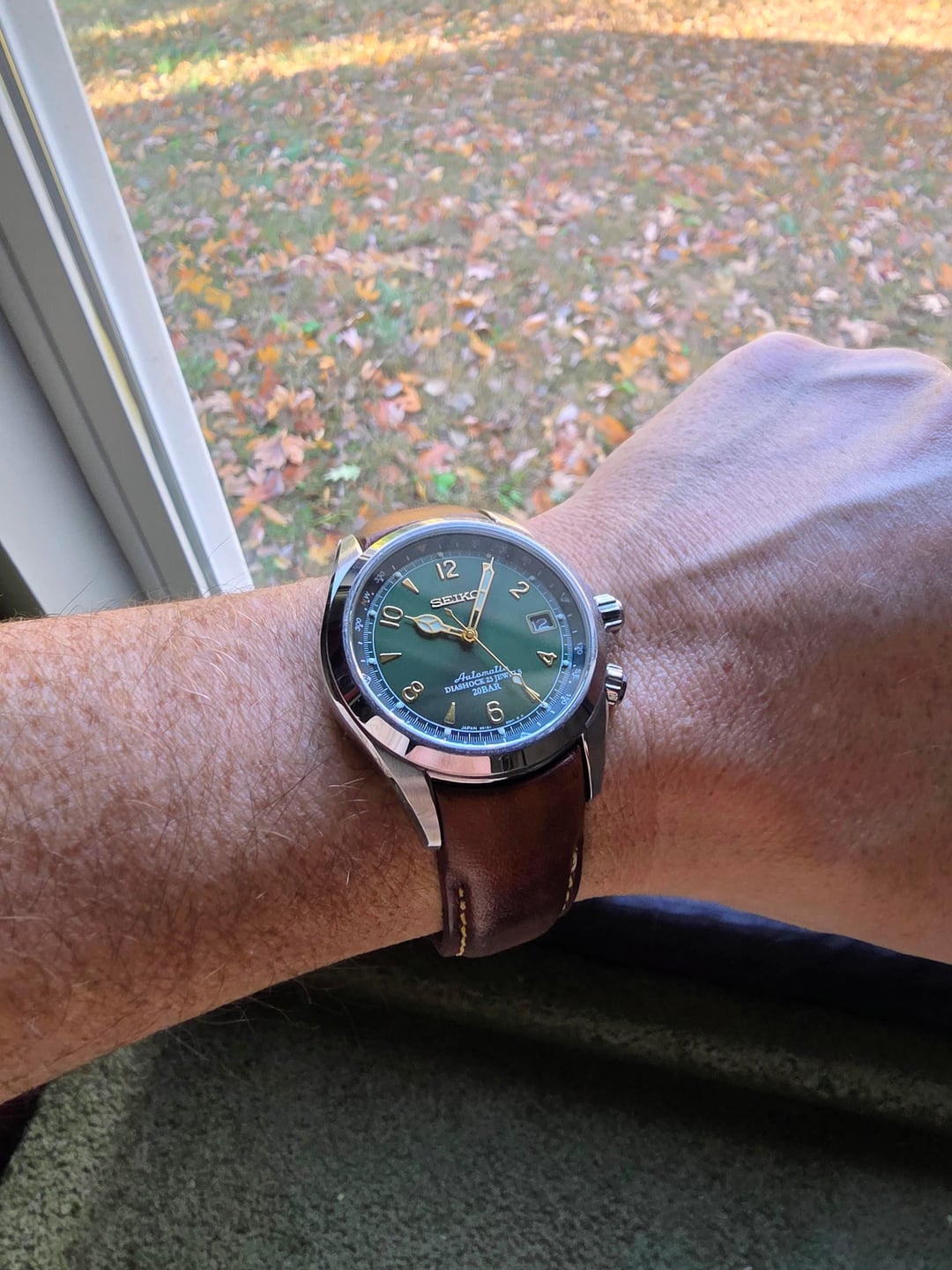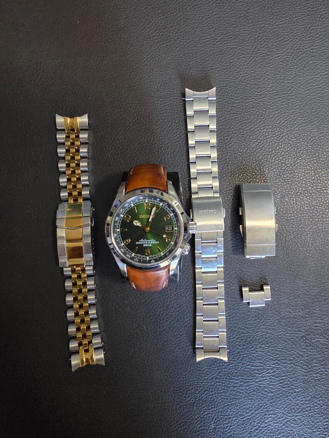 Hi Everyone, Price $1000 USD Seiko Alpinist SARB017 Watch case, two bracelets, and leather strap \- Seiko's M0TZ111J0 Bracelet \- Strapcode Angus-J Louis \- Leather fitted strap \- Island watch ratcheting clasp Watch is in good quality with no chips or deep cuts, but there are surface level scratches that could be buffed out for a like new look. I'm no photographer like half the sellers in this sub, so PM me for more pictures if you would like more. No Box, no papers, just the hardware listed above. Any questions or concerns feel free to ask. Payment Methods are Venmo or Wire.