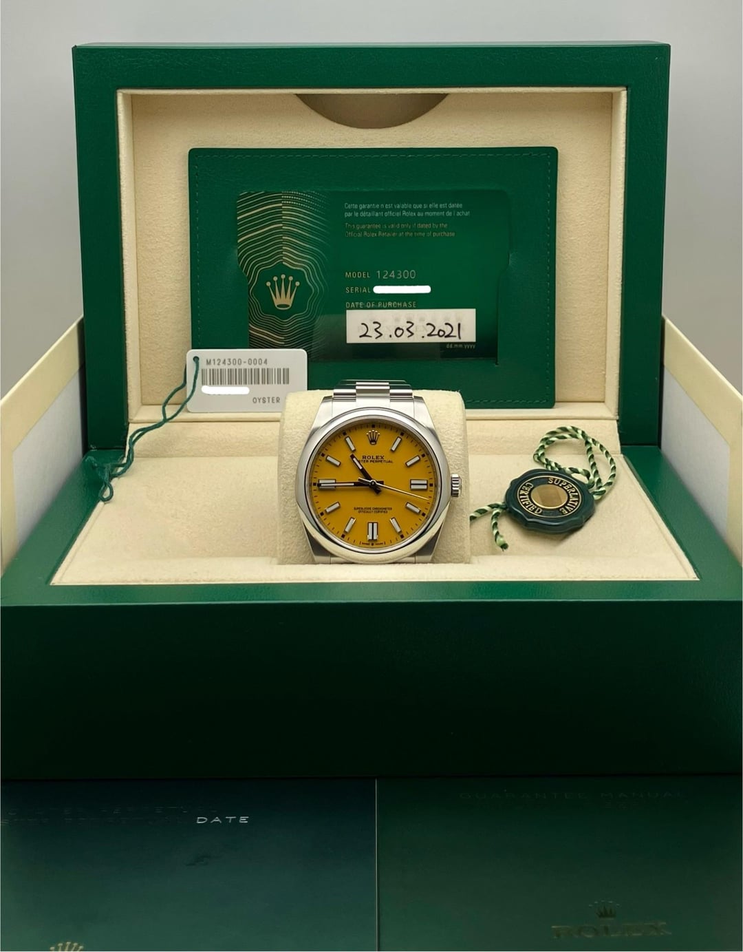 español![[WTS] Rolex Oyster Perpetual 41MM Yellow - Ref 124300 (LIKE NEW 2020 COMPLETE SET) 1](https://cdn-cf.watchpatrol.net/600x600/img/full/400e3f6f7e8b748f27400a1df24a91e3b11eaceb.jpg)