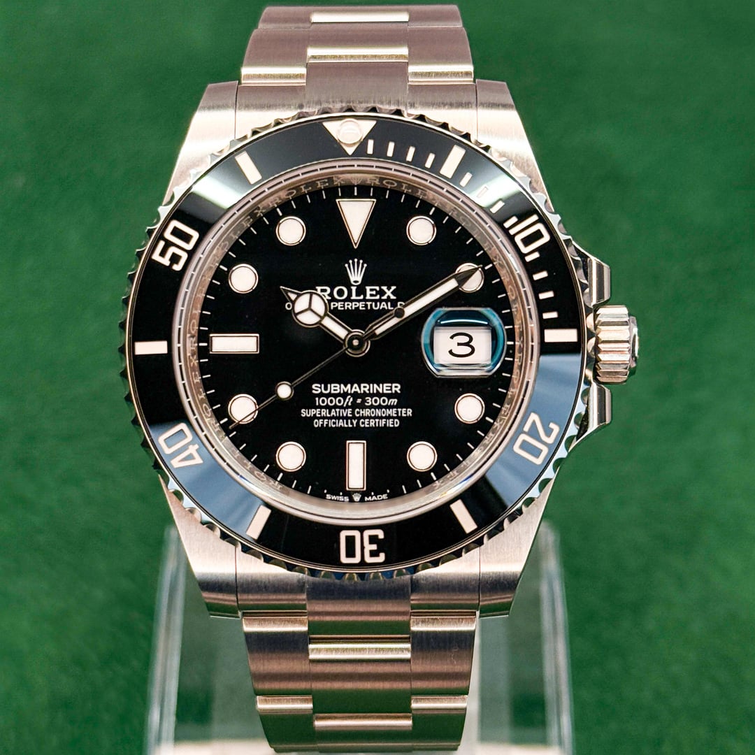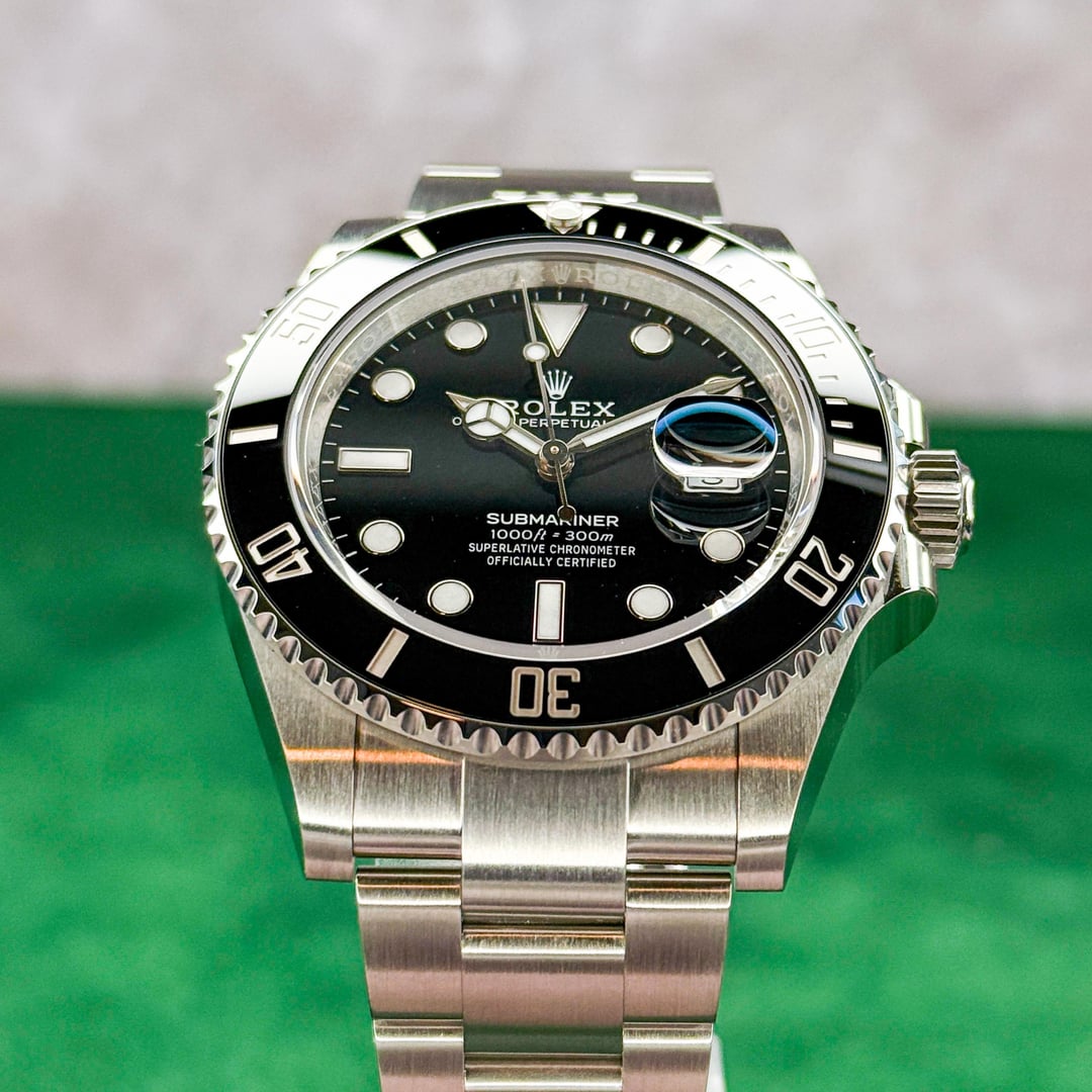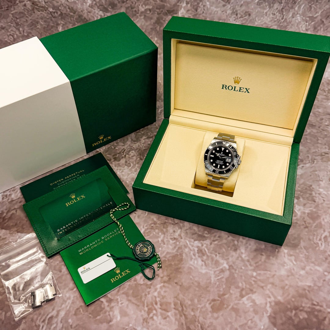 Up for sale this Rolex Submariner 126610, the latest generation of Rolex’s iconic dive watch. This model features a 41mm Oystersteel case, updated proportions, and the black ceramic Cerachrom bezel insert known for its scratch resistance and long-lasting luster. Powered by the Rolex Caliber 3235 with a 70-hour power reserve, it offers exceptional precision and reliability. The watch includes the classic black dial, Chromalight luminescence, and the Oyster bracelet with Glidelock adjustment for a perfect fit. A modern Submariner that delivers timeless style, rugged durability, and everyday versatility. This piece is less than a week old and in like new condition. There are few handling marks on the sides of the case. Other than that, no signs of use on the bracelet, crystal or clasp. A few protective stickers still on the case. The timepiece was sized to leave the AD and extra 2 links are included. Comes as a complete set with the new green outer Rolex box, inner green Rolex box, outer Rolex box sleeve, serialized white hangtag, Rolex green tag, warranty card dated 11/2025, card holder, instruction booklet and service booklet. Under factory Rolex warranty through 11/2030!!! Offered at $14,727 shipped. Payment by Zelle or bank wire. Watch is located in Located in Cary, NC. Shipped insured overnight via Fedex. Buyers shipping the watch to NC will be required to pay applicable sales tax. Thanks for looking and I am happy to provide additional pictures or videos of the watch. Please excuse any lint or dust in the photos. Phots are taken using a macro lens to capture as many details as possible. I have dozens of references in watch groups and 100% feedback on eBay on over 200 transactions. I am happy to jump on a call/video to show the watch and answer any questions you may have. Connect on IG: [u/triangleluxeco](https://www.reddit.com/user/triangleluxeco/) Website: [www.triangleluxeco.com](http://www.triangleluxeco.com) Email: [[email protected]](mailto:[email protected])