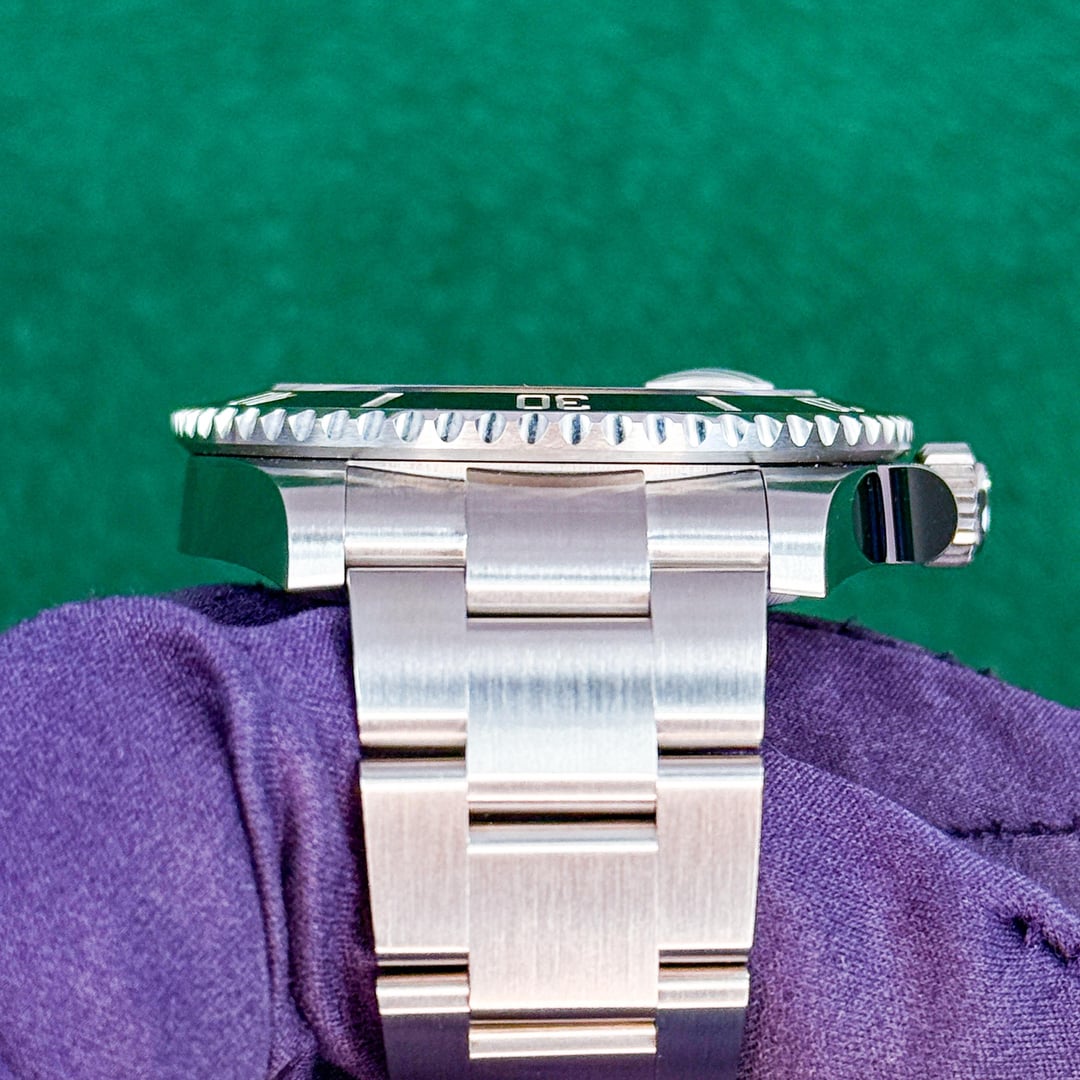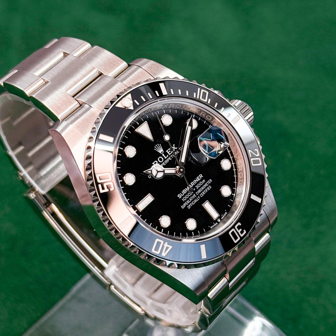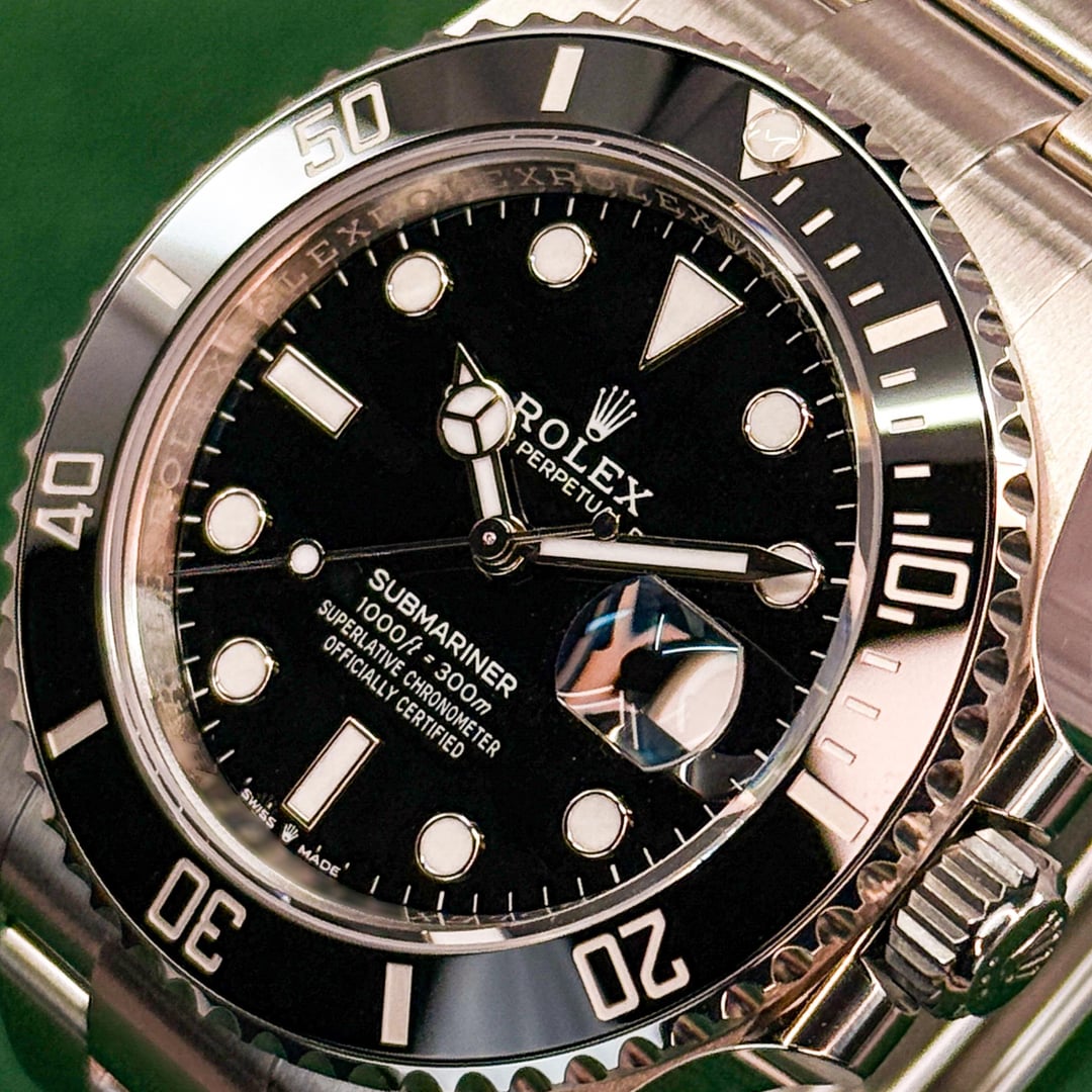 Up for sale this Rolex Submariner 126610, the latest generation of Rolex’s iconic dive watch. This model features a 41mm Oystersteel case, updated proportions, and the black ceramic Cerachrom bezel insert known for its scratch resistance and long-lasting luster. Powered by the Rolex Caliber 3235 with a 70-hour power reserve, it offers exceptional precision and reliability. The watch includes the classic black dial, Chromalight luminescence, and the Oyster bracelet with Glidelock adjustment for a perfect fit. A modern Submariner that delivers timeless style, rugged durability, and everyday versatility. This piece is less than a week old and in like new condition. There are few handling marks on the sides of the case. Other than that, no signs of use on the bracelet, crystal or clasp. A few protective stickers still on the case. The timepiece was sized to leave the AD and extra 2 links are included. Comes as a complete set with the new green outer Rolex box, inner green Rolex box, outer Rolex box sleeve, serialized white hangtag, Rolex green tag, warranty card dated 11/2025, card holder, instruction booklet and service booklet. Under factory Rolex warranty through 11/2030!!! Offered at $14,727 shipped. Payment by Zelle or bank wire. Watch is located in Located in Cary, NC. Shipped insured overnight via Fedex. Buyers shipping the watch to NC will be required to pay applicable sales tax. Thanks for looking and I am happy to provide additional pictures or videos of the watch. Please excuse any lint or dust in the photos. Phots are taken using a macro lens to capture as many details as possible. I have dozens of references in watch groups and 100% feedback on eBay on over 200 transactions. I am happy to jump on a call/video to show the watch and answer any questions you may have. Connect on IG: [u/triangleluxeco](https://www.reddit.com/user/triangleluxeco/) Website: [www.triangleluxeco.com](http://www.triangleluxeco.com) Email: [[email protected]](mailto:[email protected])