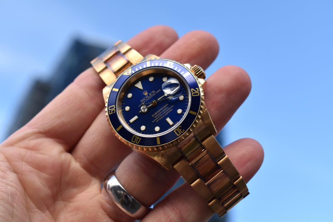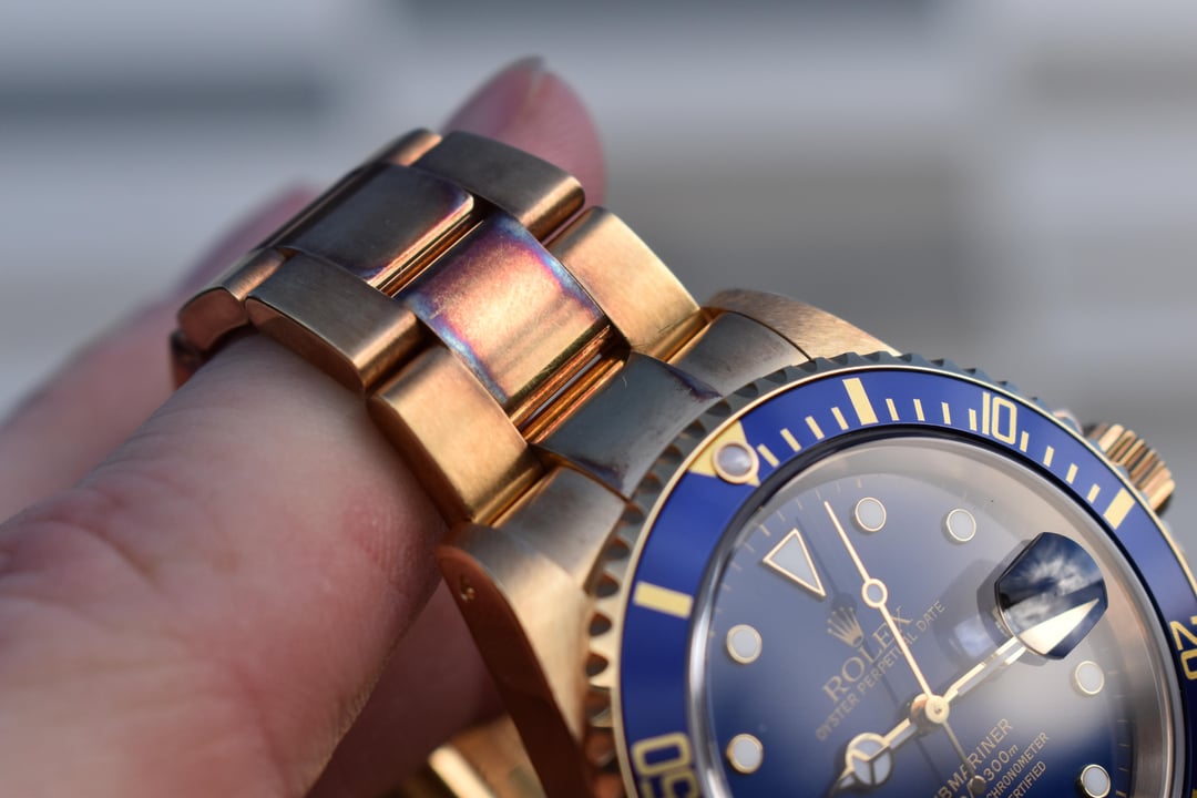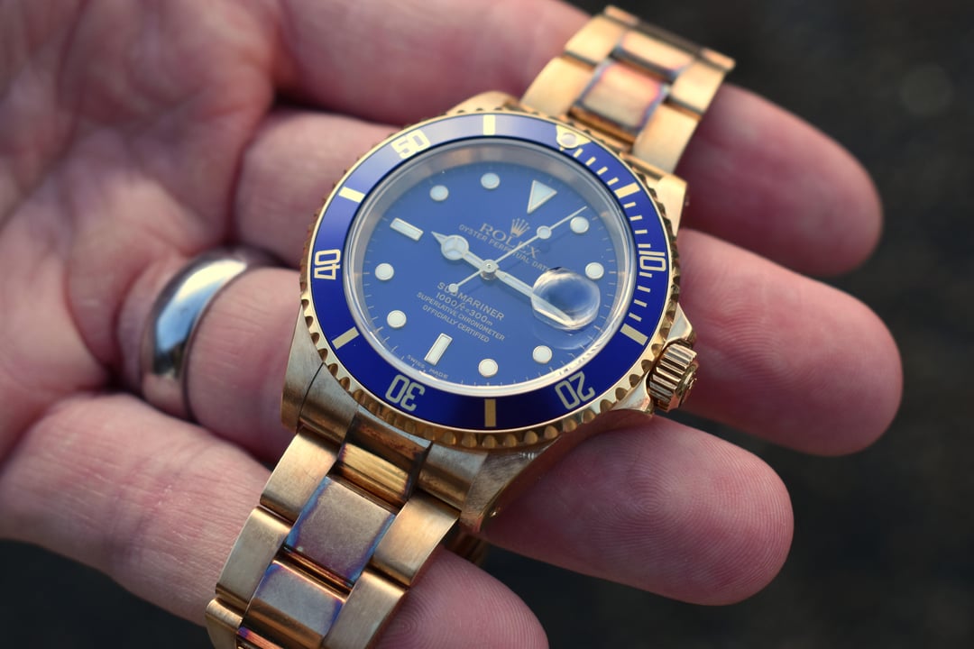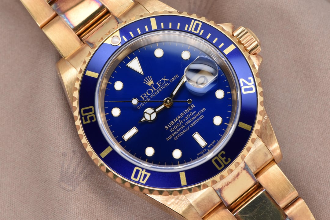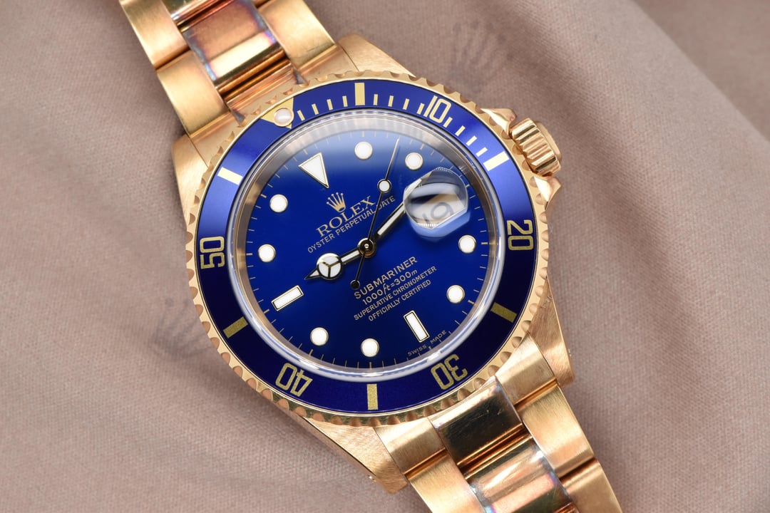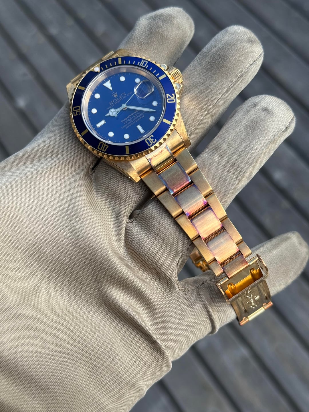 [WTS] Unpolished 2002 Rolex Submariner Date 18K Yellow Gold Blue Dial SEL 16618