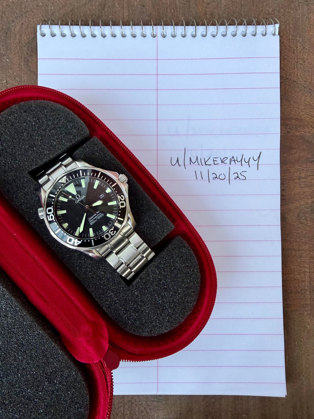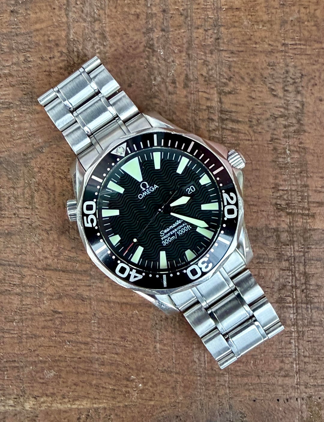 Up for sale is a classic SMP “Peter Blake” quartz model in 41mm. Overall the watch is in great shape with the case/bracelet showing minor wear consistent with its age. A few blemishes on the crystal that are pretty hard to capture with the naked eye. Unknown service history but the quartz movement is keeping accurate time. No original box/papers but will include the pictured Omega service pouch. As is, the bracelet will fit a MAX wrist of 17.5CM. No extra links. Asking: $2100 shipped or local deal in Boise, ID. Happy to FaceTime or send additional photos if needed. If you have any questions at all, please do not hesitate to reach out! Photos/Video: https://imgur.com/a/8xDt52A