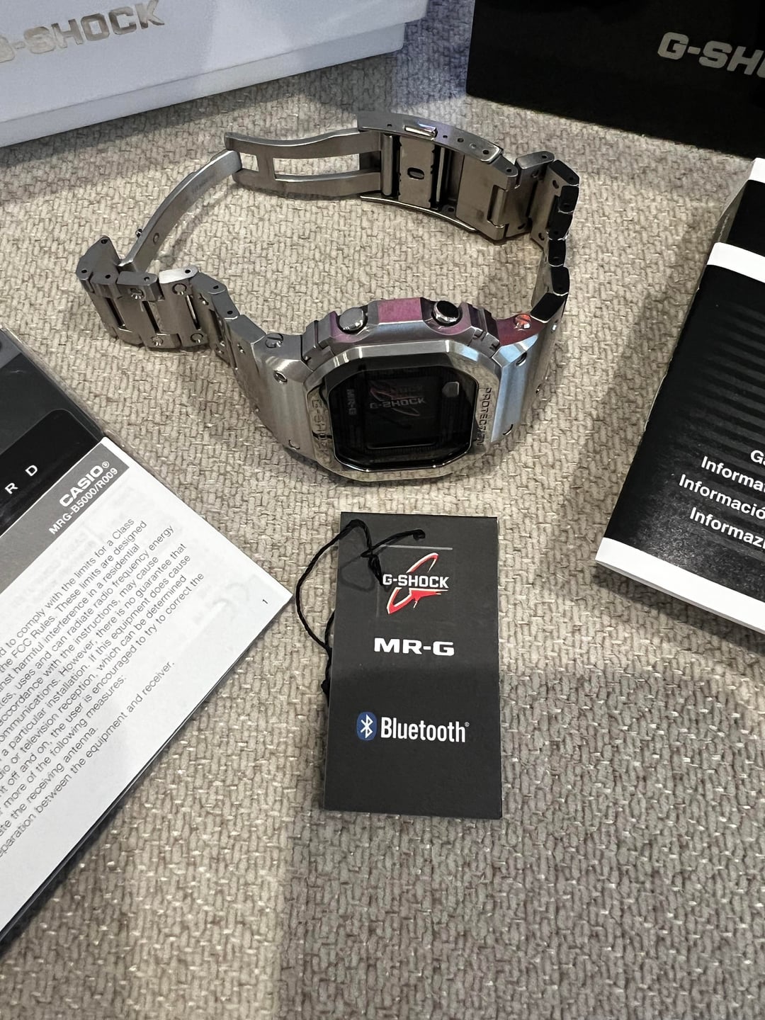 Up for sale is a preowned MRG-B5000D-1 from March 2025. Condition: preowned and worn only to the office/casually and not as a beater. Normal wear and tear will be present. I’ll note that the bezel will have visible scratches, there’s a scratch on the clasp, and a scratch on the edge of one of the links. I did the best that I could to highlight these in the pics. Comes with: everything as new. Boxes, manuals, warranty cards and all extra links. Price: $2150 shipped to the US only. No trades and returns. Payment by Zelle only. Casio product page: https://www.casio.com/us/watches/gshock/product.MRG-B5000D-1/ Please feel free to let me know of any questions. Thanks!