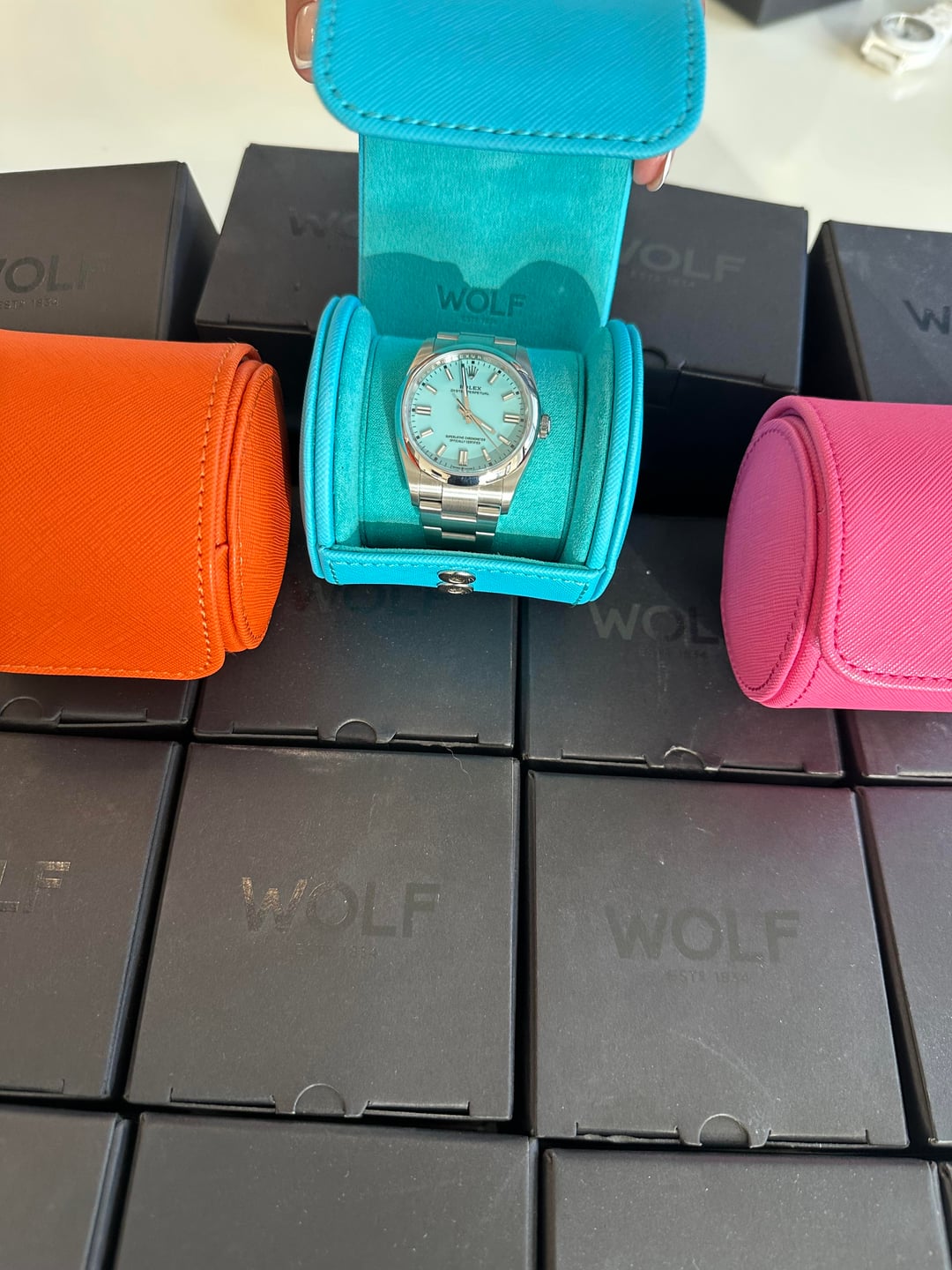**\[WTS\] WOLF Watch Rolls Turquoise / Pink / Orange / Yellow / Red - Tutti Frutti collection** Color your travels with vibrant watch protection! WOLF’s iconic Tutti Frutti collection combines bold, eye-catching colors with premium craftsmanship. Perfect for keeping your watches safe during travel or at home, these watch rolls feature WOLF’s signature anti-tarnish lining, ensuring your timepieces stay pristine. Available Colors: • Turquoise x 3 • Pink x 4 • Orange x 5 • Yellow x 6 • Red x 6 • Green x 1 Link to the producer: [https://www.wolf1834.com/us/tutti-frutti-single-watch-roll](https://www.wolf1834.com/us/tutti-frutti-single-watch-roll) Selling here for $75 each + shipping CONUS Zelle (preferred), USDT, PayPal/Venmo FF Condition: Brand New in Box (BNIB) Payment Methods: Zelle (preferred), USDT, PayPal/Venmo F&F Watches in photos are for presentation only. DM for more details or additional photos!