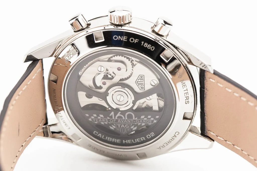 Up for sale is an excellent condition Tag Heuer Carrera 160 Years Anniversary Limited Edition, reference # CBK221B.FC6479. It comes complete with all boxes, papers, booklets, hang tag, loupe, OEM leather strap and Tag Heuer Warranty Card dated October 2020.