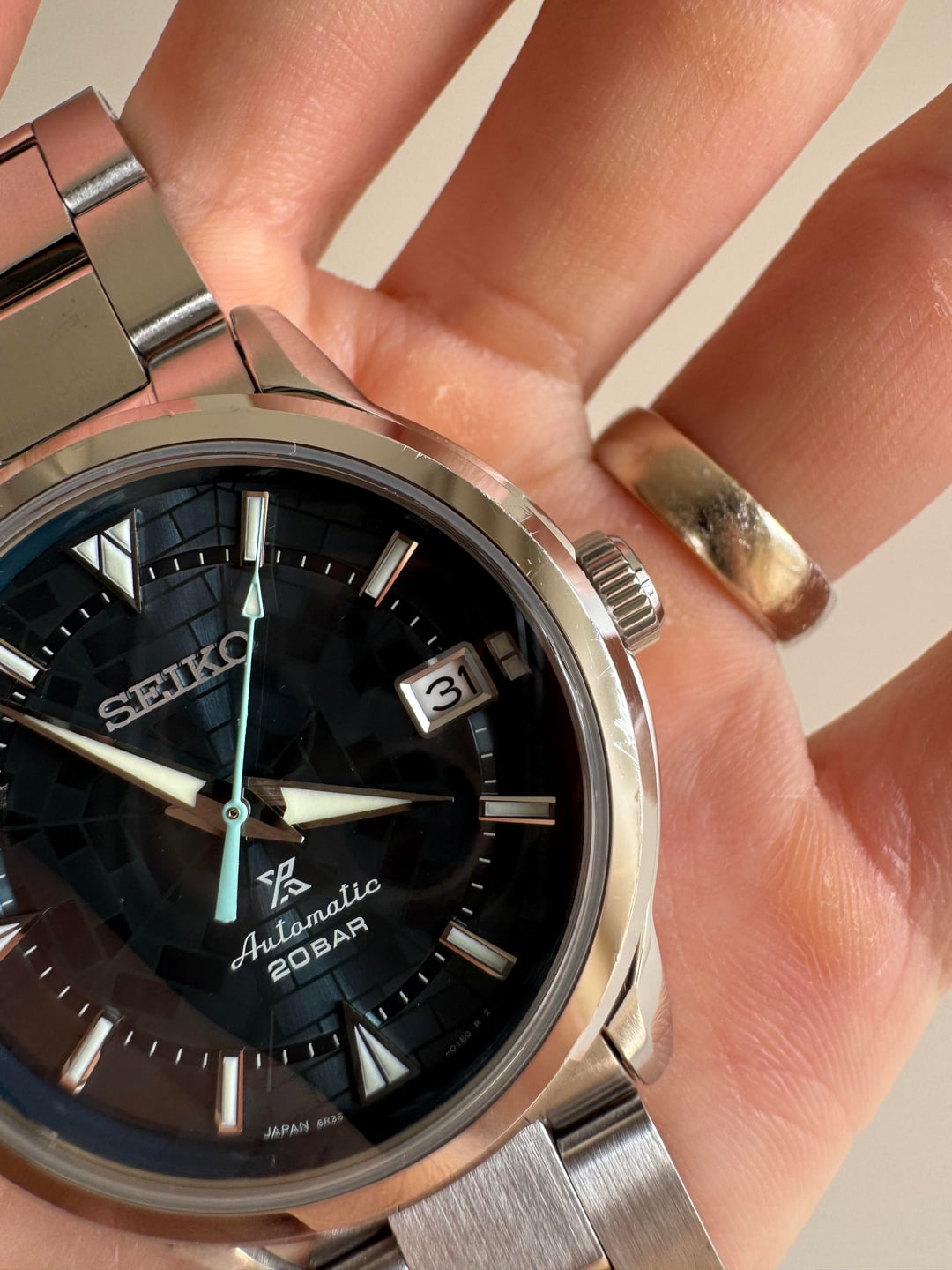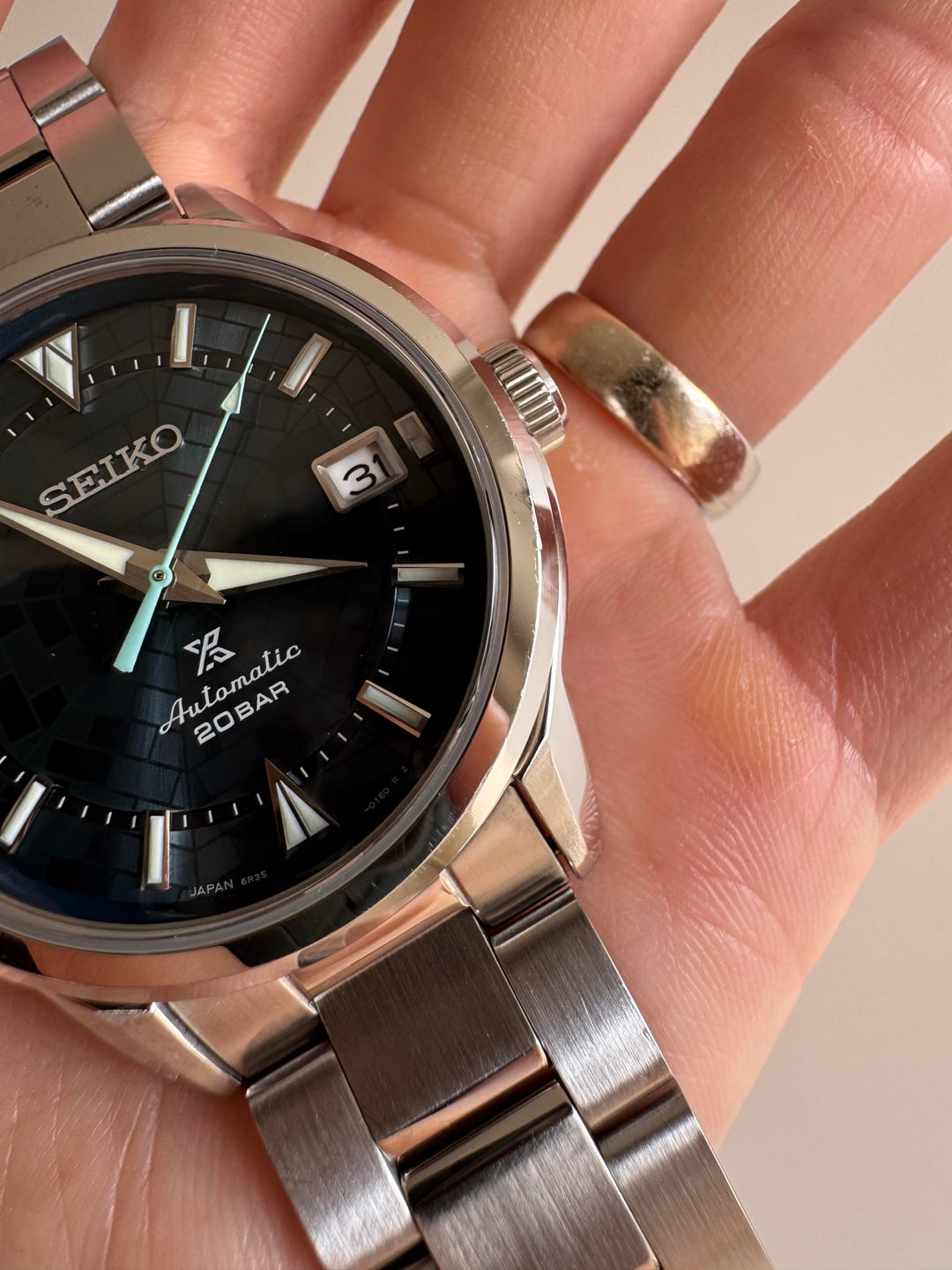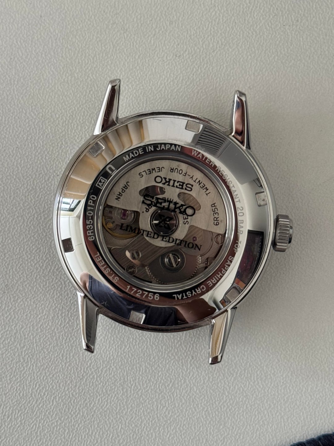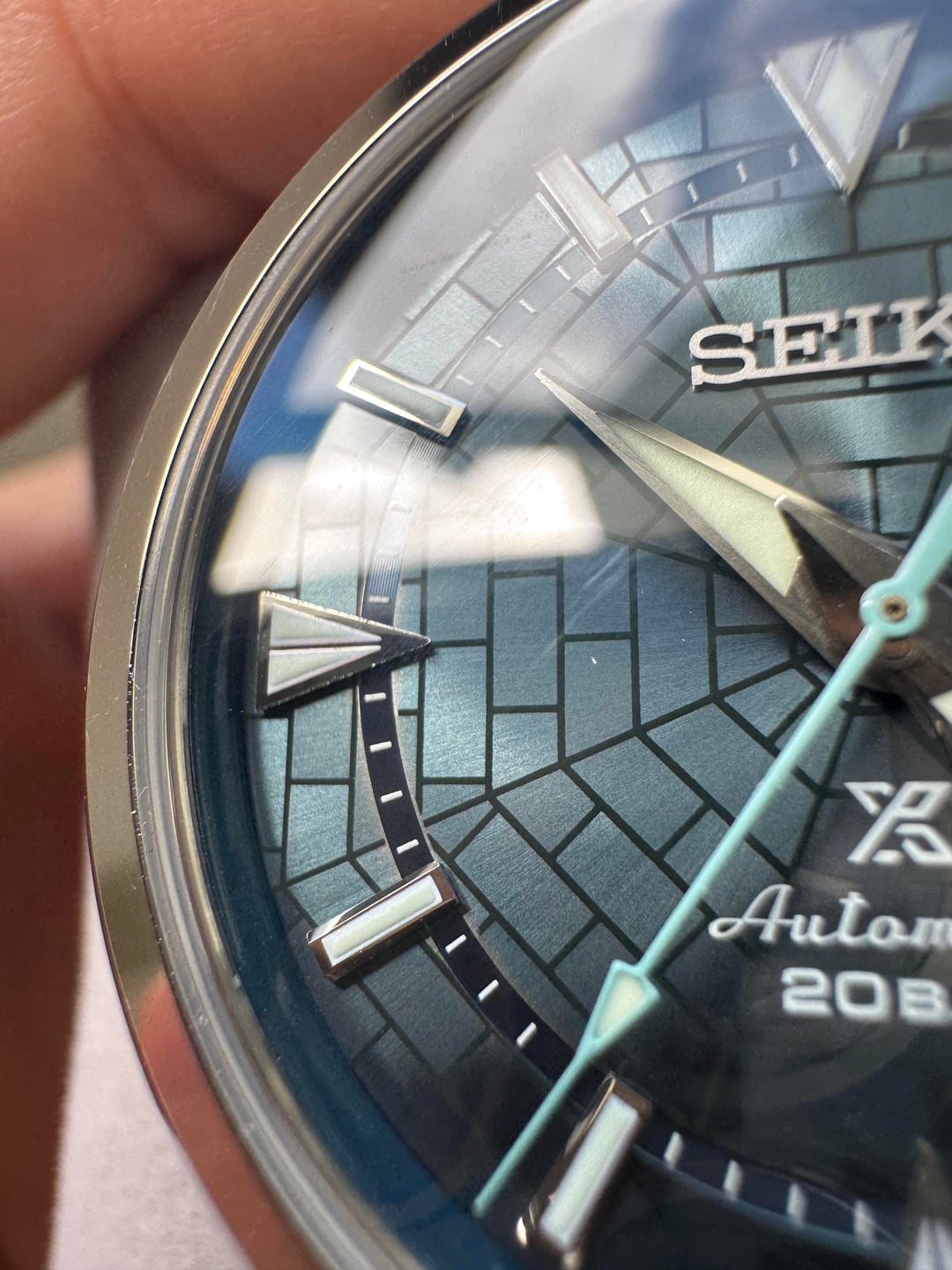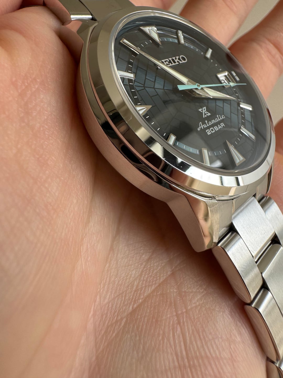 Seiko Prospex SPB259J1 for sale - beautiful dial that really stands out under light. Full set with warranty card (expired), tags, full links and box. Currently sized for a 6" wrist. Watch has some wear from daily use over a year, but nothing major. Most of it is on the bezel, with a couple dings and light scratches - most of what you'd expect from regular wear. A small nick (took me a few tries to capture it at a certain angle) on the sapphire crystal that can be polished off if you want to, hairlines around the watch - bezel, caseback and bracelet. Overall still plenty of life left. Watch has not been serviced since purchase, and I have not noticed anything out of the blue. Manual timekeeping (dial up) gives me a reading of -19 s/d. Asking for $1360 shipped from Singapore to US / Europe / Australia / Asia via FedEx / Aramex Priority. Payment methods: Wise / Revolut preferred due to unfavourable exchange rates on PayPal. * Diameter: 38.0mm * Lug-to-lug: 46.2mm * Case thickness: 12.9mm * Lug width: 19.0mm Do leave a comment before sending a PM, thank you!