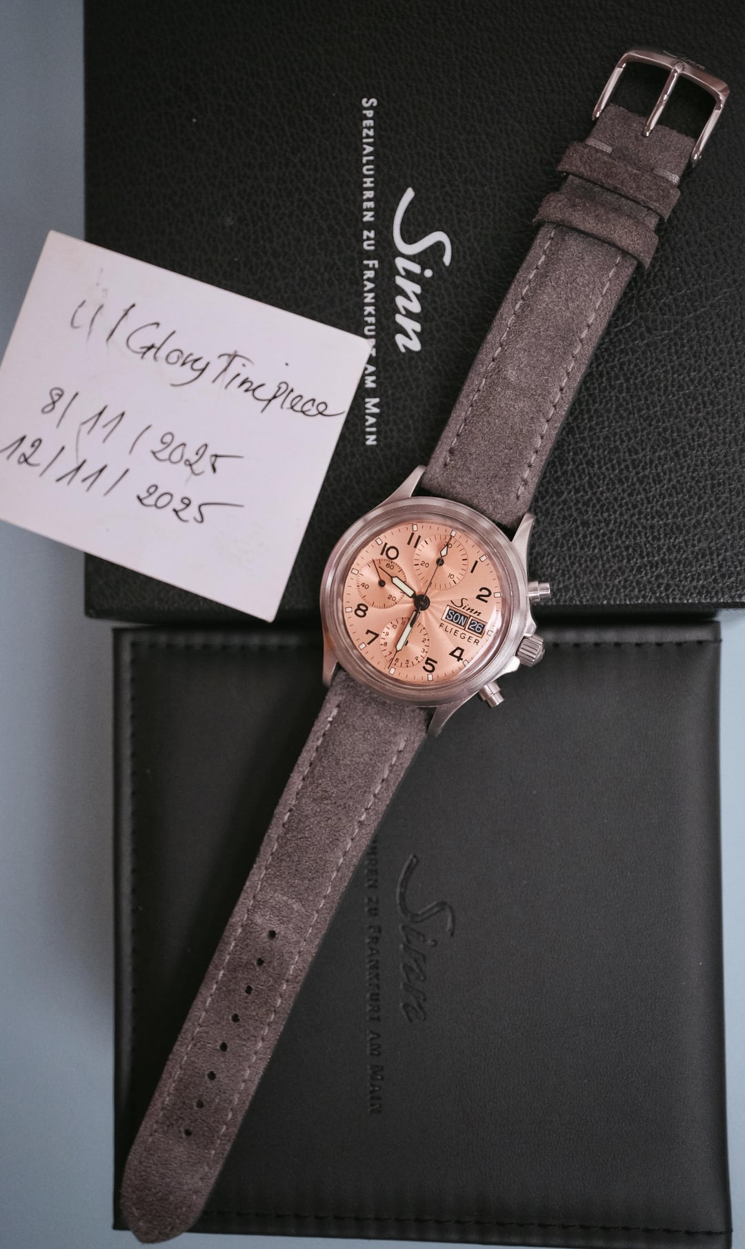 I am letting go one of my favorite piece, an original Sinn 356 Pilot, the first edition with the coveted acrylic crystal and solid caseback, a true collector’s piece from 2014. The watch is in excellent condition, showing no major scratches or dents, only minimal signs of light wear. The caseback shows surface scratches consistent with normal desk wear. It has been recently overhauled and is keeping excellent time. Album : [https://www.flickr.com/photos/61327256@N05/albums/72177720330295129/](https://www.flickr.com/photos/61327256@N05/albums/72177720330295129/) Timestamp : [https://i.postimg.cc/X7kz3pfk/IMG-7595.jpg](https://i.postimg.cc/X7kz3pfk/IMG-7595.jpg) ---- * Case: 38.5mm stainless steel (satinized) – *perfect pilot watch proportions* * Dial: Stunning copper with high legibility * Movement: Swiss automatic chronograph (25 jewels) * Crystal: Acrylic (warm, vintage charm) * Water Resistance: 100m (10 ATM) * Caseback: Solid (first edition feature) * Original Sinn suede strap, buckle. Sinn boxes, no papers **Pricing & Shipping:** Price : **$2,222 USD,** plus shipping, firm. **No trades, please.** Payment is accepted via PayPal Friends & Family, or PayPal Goods & Services with an additional 4.6% fee covered by the buyer. The watch will be shipped from Asia ( Tariff / Import fee covered ) via UPS, with an estimated delivery time of 5-7 business days. Please let me know if you have any questions, thank you !