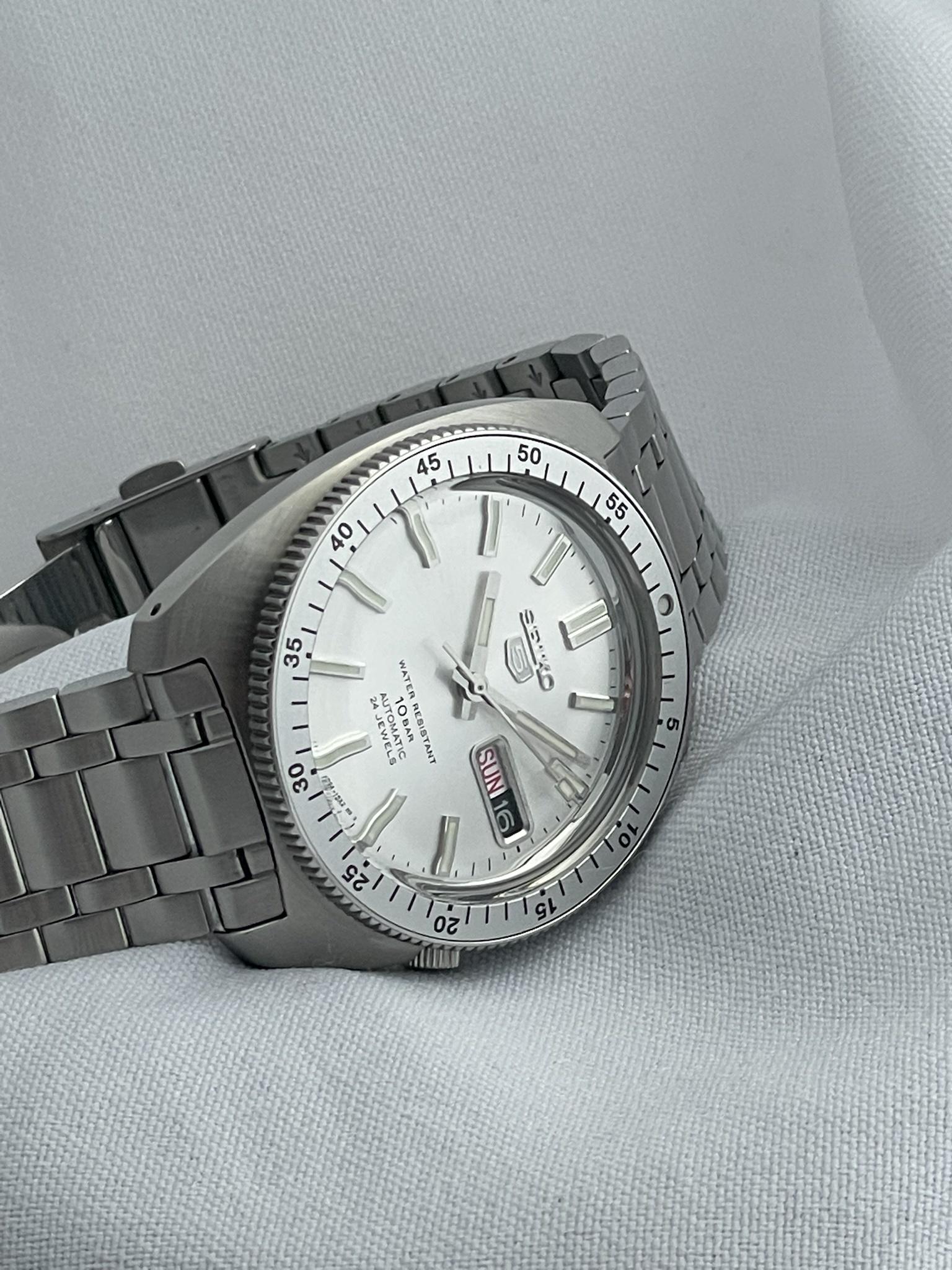 For your review and consideration is the SRPL91 Seiko5 Sports Gene Kranz special edition. Condition is very good - no significant marks on case. Crystal is clean. Normal wear on bracelet. Watch shows very little wear. \*\* 38.2mm case --- silver dial --- 4r36 mvmt ---- 41 hour power reserve --- It is water-resistant up to 100 meters and features a Hardlex crystal, LumiBrite on the hands and markers, and a bi-directional rotating bezel. \>> worn sparingly in rotation --- I can't comment on accuracy. --- Box and full kit. ….price is $435.00 or best reasonable offer. Via PayPal and shipped to US PM if interest or questions. [https://imgur.com/a/srpl91-TdE1HVg](https://imgur.com/a/srpl91-TdE1HVg)