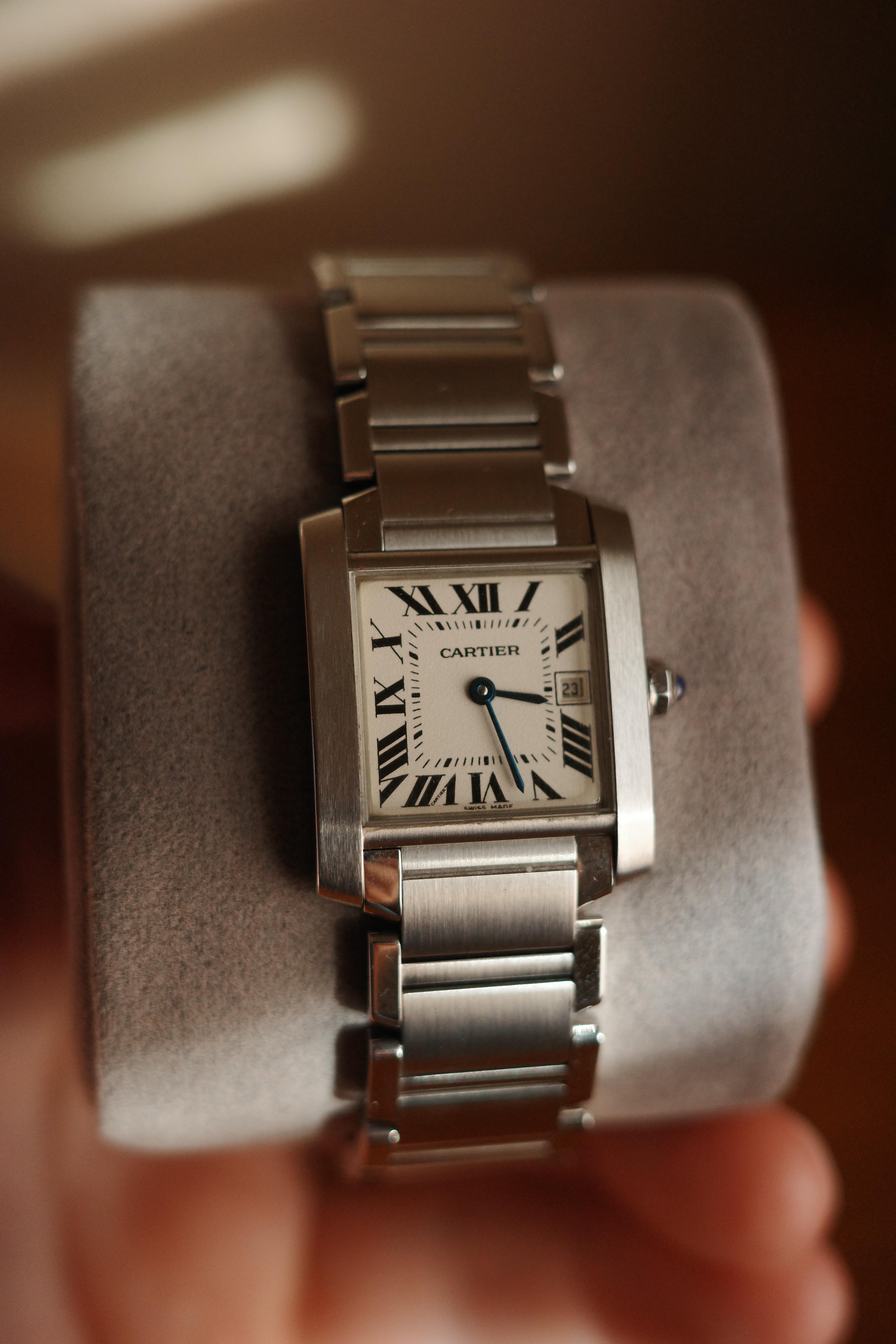 I purchased this Cartier Tank Francaise ref. 2465 from Watchstox just a couple months ago. It is in great condition for its age (circa 2002). No box or papers, it will ship in the Watchstox case it came with. The bracelet length would fit my 6.7” wrist just a bit too tight. I believe it would probably fit wrists up to 6.5”. Case dimensions for this reference are approximately 25mm x 30mm. It looks great on a leather strap as well, with a lug width of 18mm. Images: [https://drive.google.com/drive/folders/1u9TSbUzKUrkMbsTdvN-XDGosSO4iI2LN?usp=sharing](https://drive.google.com/drive/folders/1u9TSbUzKUrkMbsTdvN-XDGosSO4iI2LN?usp=sharing) Timestamp: [https://drive.google.com/drive/folders/1t8febLgGZL7p5eriEiLUgLrXT-GyX-rT?usp=sharing](https://drive.google.com/drive/folders/1t8febLgGZL7p5eriEiLUgLrXT-GyX-rT?usp=sharing) Payment: Paypal F/F, Zelle or Venmo preferred. I am happy to verify via FaceTime. Price: $2,250