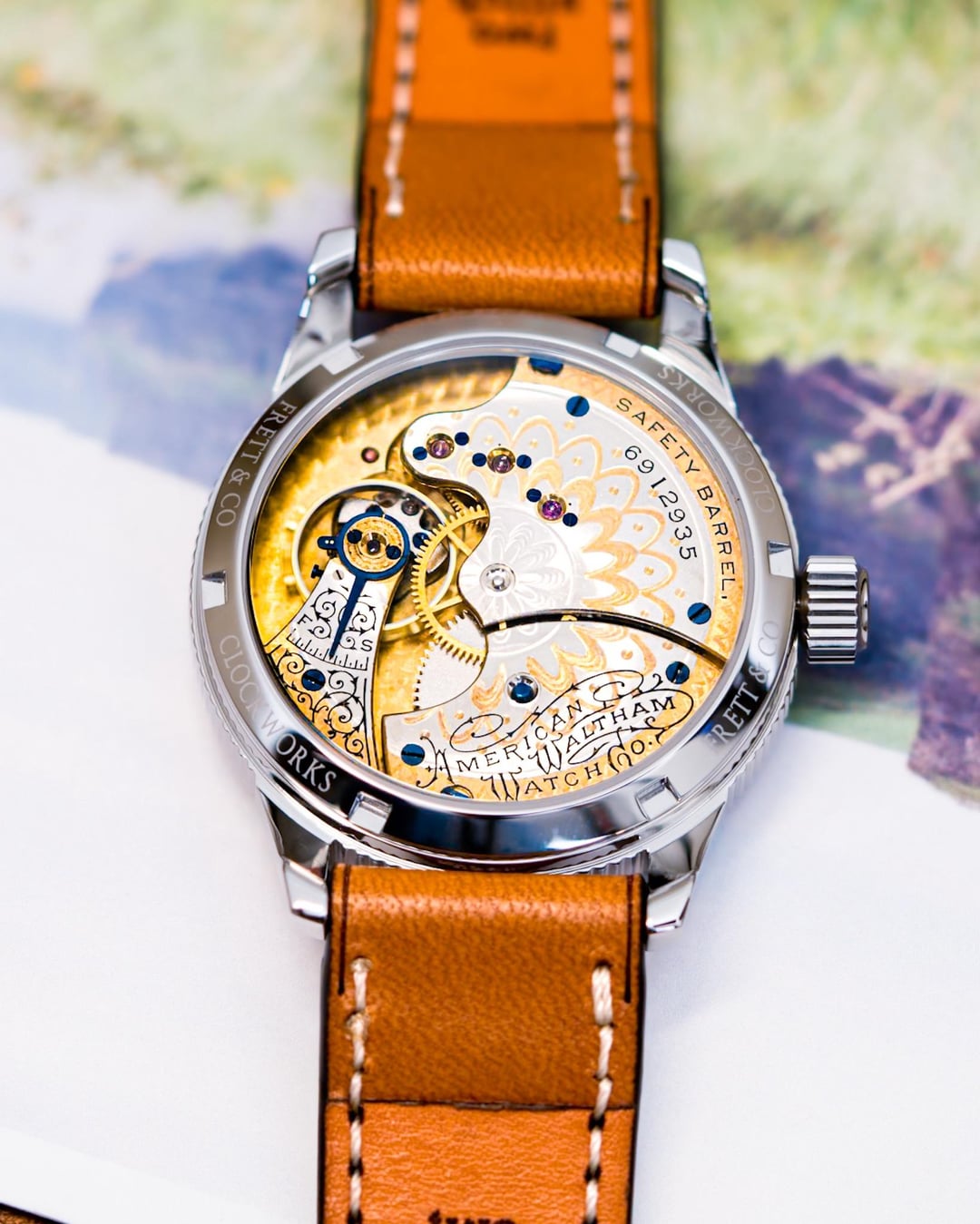 **Photos**: [https://imgur.com/a/uRAR0OI](https://imgur.com/a/uRAR0OI) **Movement Shots**: [https://imgur.com/a/o6vU4tR](https://imgur.com/a/o6vU4tR) **Videos**: [https://imgur.com/a/fN6XNJ8](https://imgur.com/a/fN6XNJ8) **Timestamp**: [https://imgur.com/a/XLBKL0y](https://imgur.com/a/XLBKL0y) *American Waltham Watch Co. was in operation from 1852-1957 and was an American pocket watch manufacturer. Manufacturing of Waltham watches took place at their facility in Waltham, Massachusetts.* This piece brings together two features we rarely see paired: a private label porcelain enamel dial commissioned for CAW Crosby and Son in Boston, and a preserved two tone Waltham Grade L movement from 1895. The dial was made by Waltham specifically for this jeweler in the late 1800s and remains flawless. Flip it over and the movement is just as compelling. The alternating gilt and nickel finishings create that classic two-tone look, and the original factory blued screws are still intact. That level of period finishing is part of what inspired us to pursue and perfect traditional thermal coloring in our Little Rock, Arkansas workshop. We hand blued the regulator, arbor, and case screws to complement the original work and bring even more contrast to the two tone movement. A rare Boston commissioned dial paired with one of Walthams most visually striking finishes housed in our 40 mm stainless steel case, this one feels special the moment it hits the wrist. All work was completed in our shop in Little Rock, Arkansas 🇺🇸 (read more about us [here](https://www.littlerocksoiree.com/relics-to-riches-what-makes-frett-co-clockworks-tick/)). **Price**: $3,799, But negotiable—especially to someone with an interest getting into vintage American watchmaking. **Case**: 316L stainless (surgical grade steel), 40 mm diameter, 48 mm lug to lug, 13 mm height, sapphire crystals AR coated, front crystal domed, and 50 meters water resistance. Recommend to remove before water activities. Read more about our 40 mm case [here](https://www.frettclockworks.com/blog/introducing-our-40-mm-pocket-watch-conversion-case). **Thermal Coloring**: To enhance both corrosion resistance and visual appeal, the movement hardware was thermally colored using a traditional technique employed by early 20th-century watchmakers: open-flame bluing (read more [here](https://www.frettclockworks.com/blog/the-art-and-science-of-thermal-coloring-for-pocket-watch-conversions)). **Shipping**: UPS 2nd Day Air free in the USA. International shipping via DHL Express (\~$100), which takes approximately one week from date of shipment. **Payment Method**: PayPal, PayPal Credit, Venmo, Apple Pay, CashApp, Wise, Afterpay, Affirm, Klarna, and All Major Credit Cards **Service History**: The watch was serviced in 2025 and comes with a 1-year service warranty. The watch was inspected and cleaned. The watch was re-assembled and oiled using high-grade synthetic Swiss oil (Moebius). Time keeping will vary depending on position. **About us**: We are a small batch, custom watch restoration company located in Central Arkansas USA. Our mission is to preserve and enhance vintage and antique watches. Everything we work on is done in house completely by hand. Each timepiece we produce is one-of-a-kind. Please follow us on [Instagram](https://www.instagram.com/frettcoclockworks/) Please like us on [Facebook](https://www.facebook.com/frettcoclockworks/)