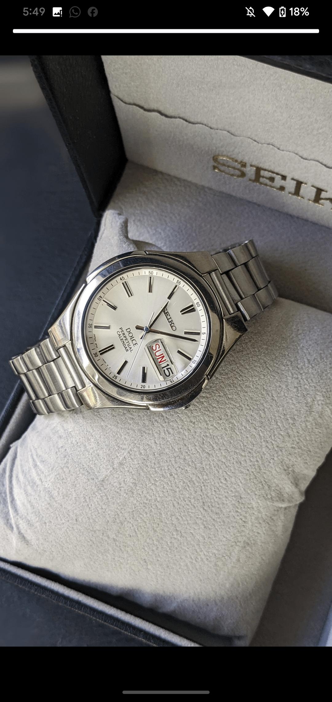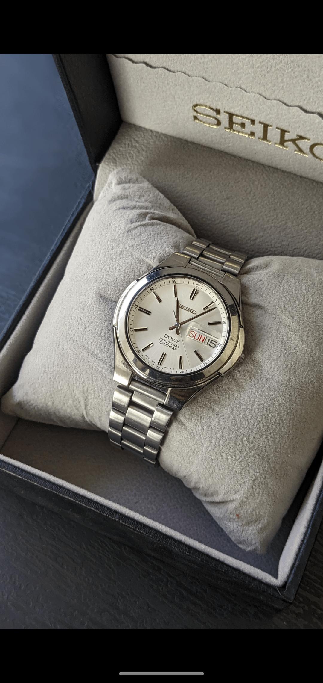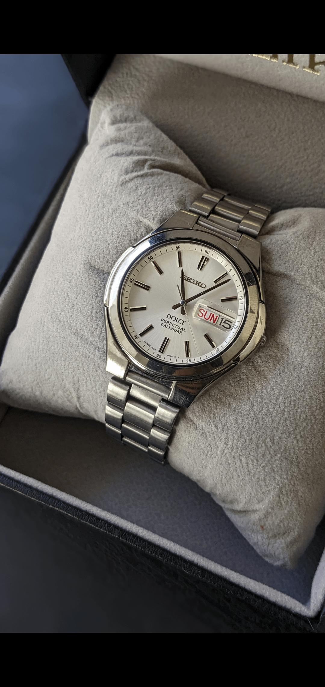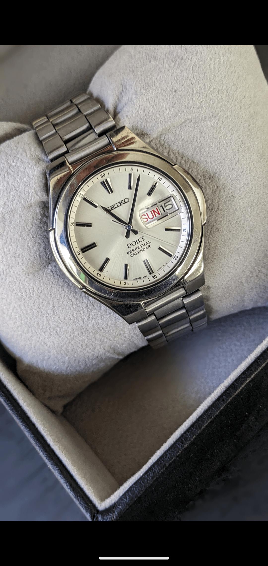 español![[WTS] 1990 Seiko Vintage Watch Model Dolce Perpetual calendar Day/Date Watch 8f33-0030, Price $220 1](https://cdn-cf.watchpatrol.net/600x600/img/full/d324cdebe518c1c1d45b706ce47d925aa2bd55a7.jpg)