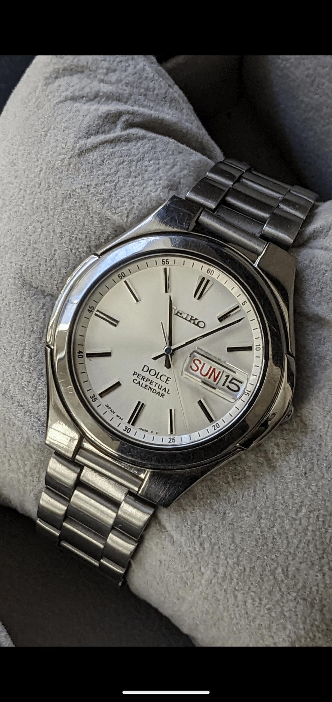![Thumbnail [WTS] 1990 Seiko Vintage Watch Model Dolce Perpetual calendar Day/Date Watch 8f33-0030, Price $220 6](https://cdn-cf.watchpatrol.net/120x120/img/full/64f44c01ccd3db2f8ff8dcf6bb201a4145d6f8c8.jpg)