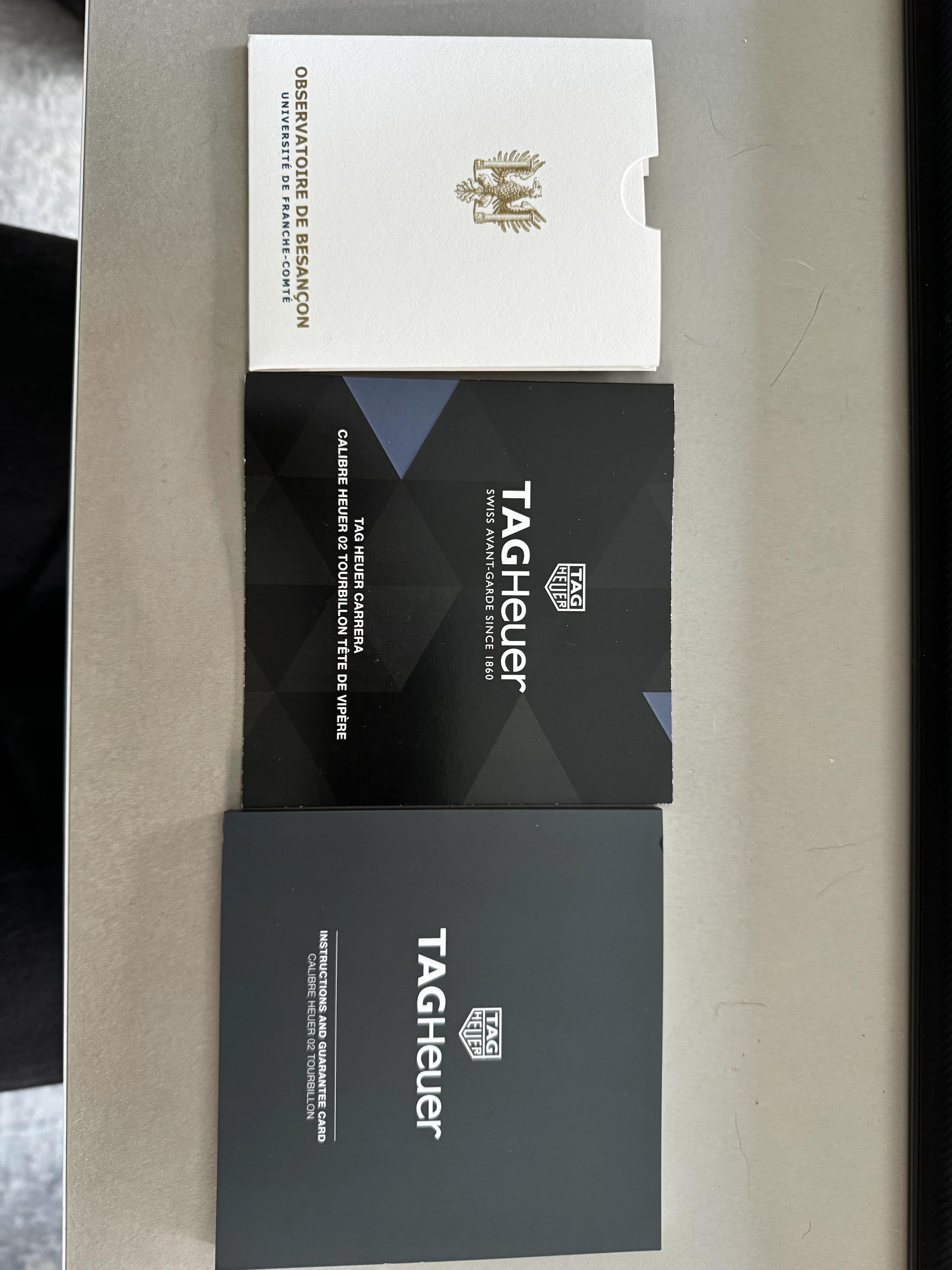 here's an unworn new in box TAG 02T Tourbillon, no 78 of 155, with box and papers. It has the coveted Tete de Vipere chronometer certificate from Besancon - don't think TAG did that again. Was 16600 GBP originally but I don't wear it so needs to go.
