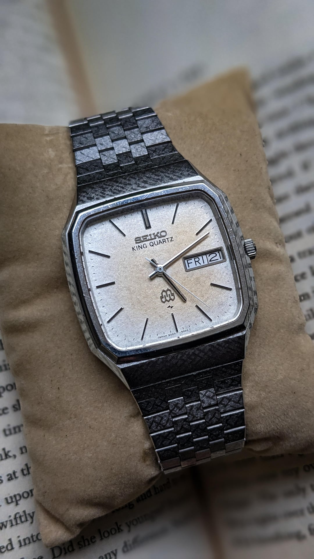 Up for sale is a Vintage Seiko King Quartz Ref. 9223-5000, featuring Seiko’s high-accuracy Twin Quartz movement. This model is known for its excellent precision, clean angular case design, and refined vintage aesthetics. The watch features a beautiful Snowflake Patina silver dial, day-date display, and its original Seiko integrated bracelet . It runs flawlessly. Watch Details Brand: Seiko Model: King Quartz Reference: 9223-5000 Movement: Twin Quartz (high-accuracy quartz) Case Size: \~35mm Bracelet: Original Seiko integrated bracelet Accessories: Watch only Timestamp: [https://imgur.com/a/aIpRM0Z](https://imgur.com/a/aIpRM0Z) 💵 Price: 225$ only 📩 Please comment here before sending a PM.