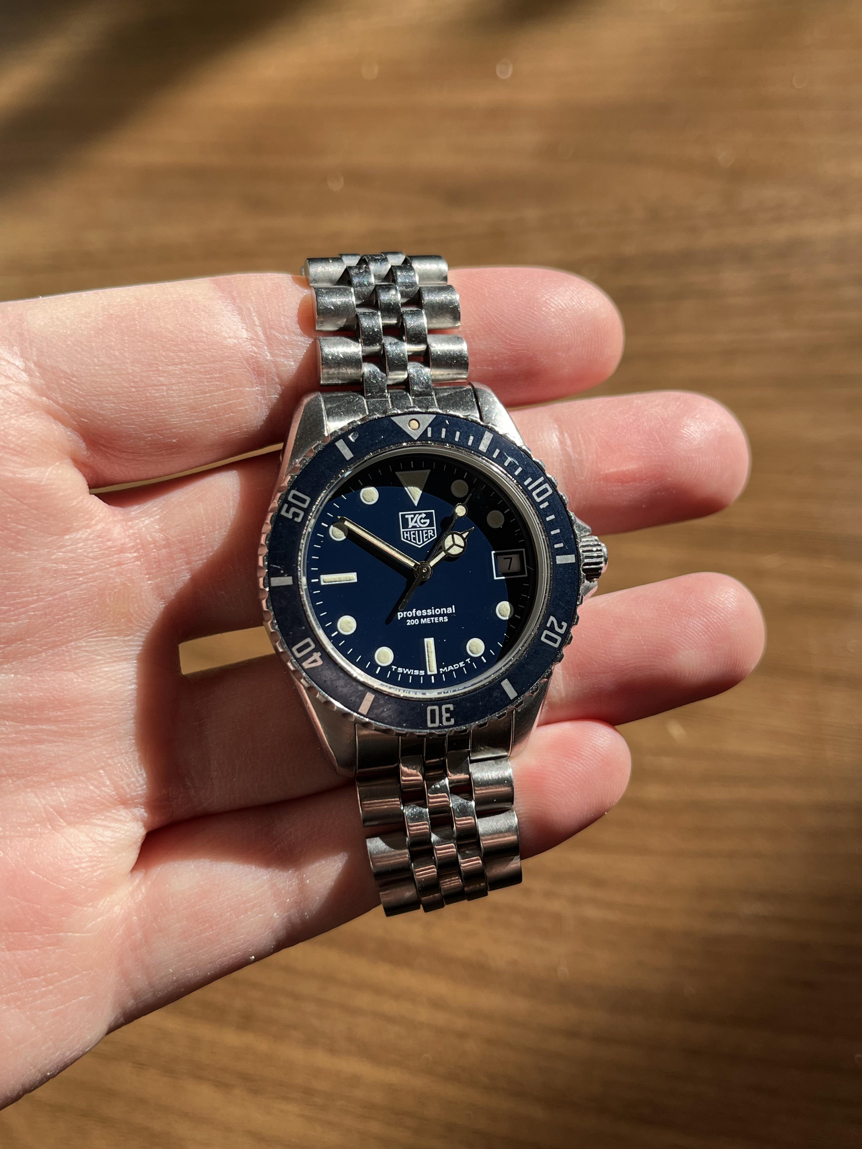 Hi all, Up for sale is an 80s incon -- the Tag Pro 1000! This one is in great condition considering the age. The blue dial is free of any blemishes and the bezel has a slight fade to it. Earlier this year, it received a new ETA quartz movement, new sapphire crystal and gaskets from Tag1000Diver.com, and was pressure tested to 6 atm / 60m. This one also comes with a blue Crown and Buckle NATO strap and the original Tag bracelet (with diver's extension) and 3 extra links. # Media - [Timestamp & Album](https://imgur.com/a/rsVm080) # Price - ~~$675~~ $599 shipped to the CONUS - Slight discount available for local meetup in the greater Denver area