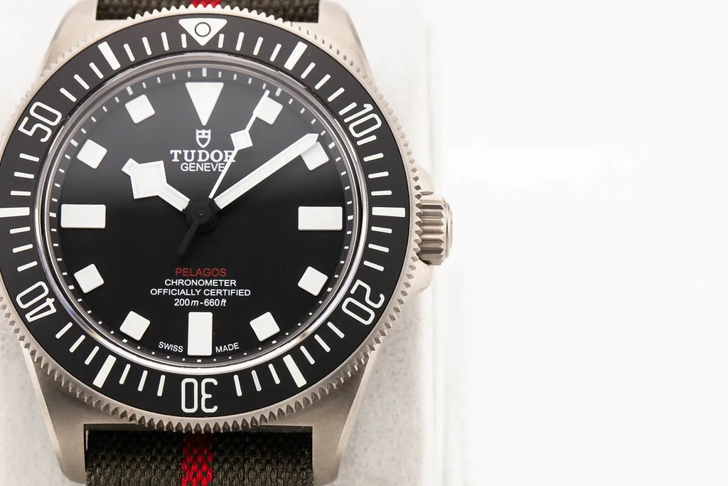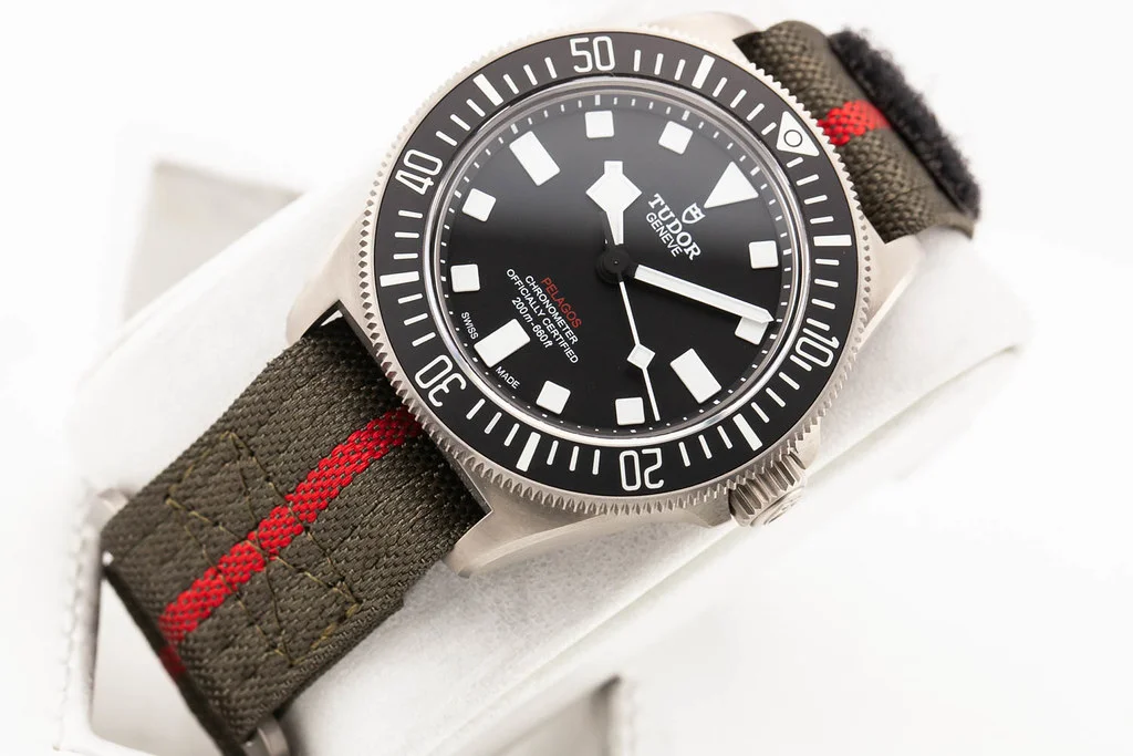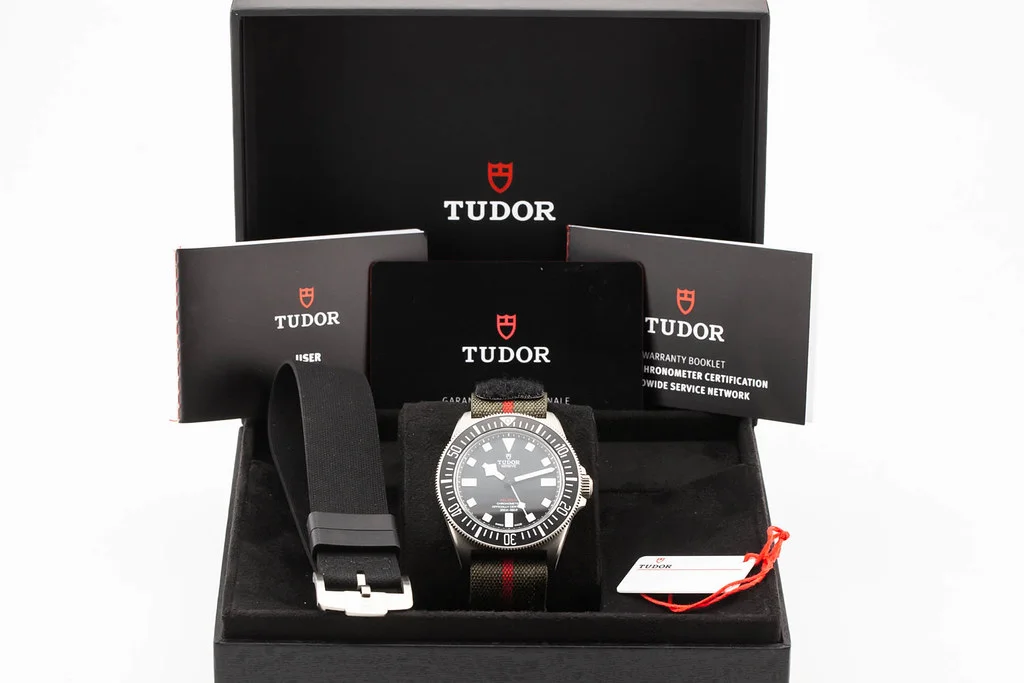Up for sale is an unworn condition Tudor Pelagos FXD Black Dial with Fabric Strap, reference # 25717. It comes complete with all boxes, papers, booklets, hang tag, strap, and Tudor Warranty Card dated October 2025.