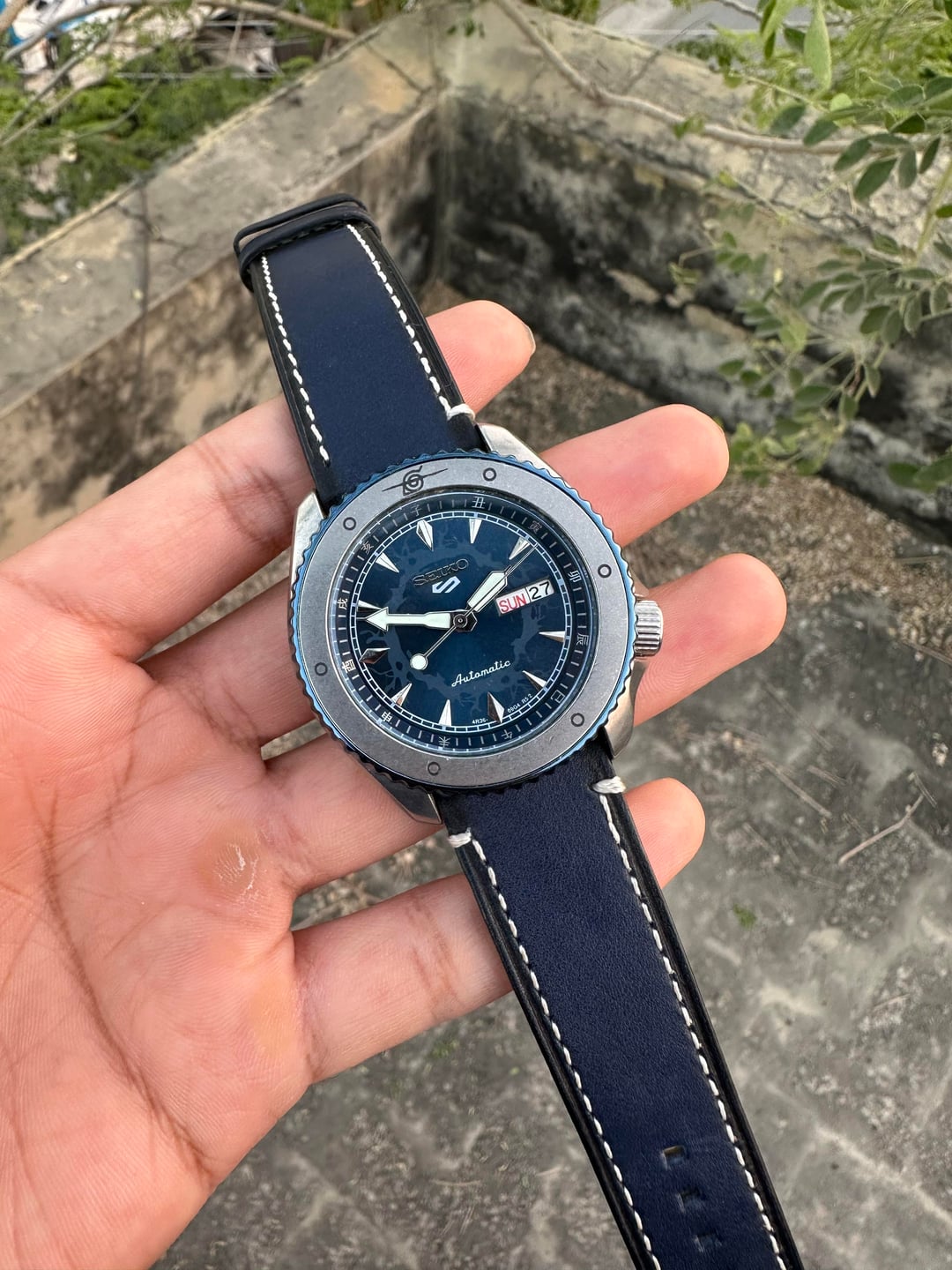 [WTS] Seiko 5 Sports – SRPF69K1 – “Sasuke” Limited Edition – 4R36-09F0 Movt ––––– $199 USD Only!!! 🔹The dial is adorned with the pattern of Sasuke's trademark Jutsu 'Chidori'. With the hand positions highlighted discreetly at the one, three and eight o'clock positions. The hidden leaf village symbol on the bezel features a line running through it to symbolise the scar left on Sasukes forehead protector by his friend and rival Naruto. The case back of this watch is in an exhibition style 'see through' allowing you to witness the inner workings of the watch. The glass of the case back has the Uchiha Clan's Kamon printed to further add aspects of the Naruto manga to the watch. Only 6500 pieces ever made hence limited edition. ⬜Specifications: 🔹Stainless Steel Made 🔹Mineral Crystal 🔹Lumibrite Indices 🔹Aftermarket Strap 🔹Aftermarket Crown 🔹Exhibition Caseback 🔹4R36-09F0 Movement ⬜Measurements: 🔹Diameter: 42.5mm 🔹Thickness: 13mm 🔹Length: 46mm ⬜Condition: Great. Comes with aftermarket strap and the crown has been replaced. Please review the images provided. No Original box and papers. 🔹Please COMMENT FIRST before sending me a pm or chat. 🔹Custom Timestamp Pictures will be given if requested. 🔹Payment Method: PayPal F&F, Revolut, Monzo. 🔹Feel Free to ask any questions in the comments or pm. 🔹Ships Internationally by UPS. (Customs of buyers county to be paid by the buyer. Shipped from UAE)