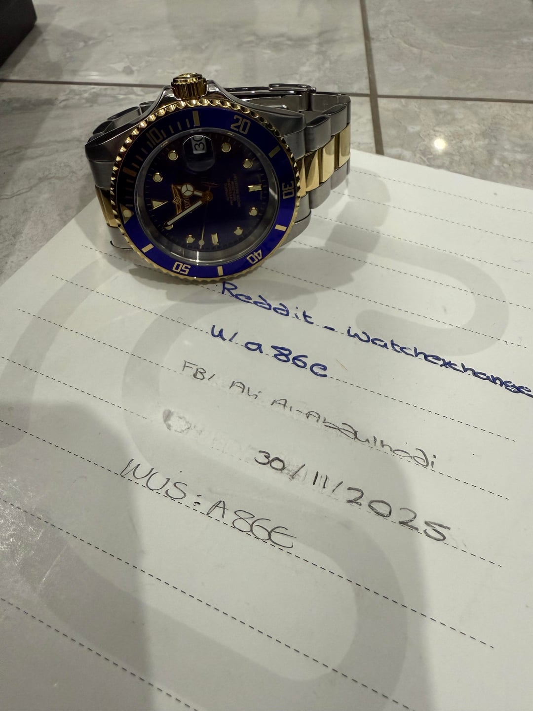 Hey all, Invicta Bluesy automatic pro diver watch, overall good condition, heavy signs of wear near the buckle and links around it I believe these are the first gen pro diver with the Seiko movement Price: $125 shipped TYD Not interested in trades Please read the disclaimer before shooting a PM Thanks ⸻ Watch Sale Disclaimer: • I am a private collector, not a store or reseller, and I am not affiliated with any watch brand mentioned in this listing. • The watch will be shipped from Kuwait via FedEx, and a tracking number will be provided to the buyer once dispatched. • Buyer is responsible for any customs duties, VAT, or import taxes that may be charged upon delivery, depending on your country’s regulations. • I welcome all reasonable requests for additional information, including more photos and/or videos to verify the watch and its condition. • Payment terms: • Established Watchexchange members with verifiable feedback may pay via PayPal Goods & Services only, I do not accept Friends & Family nor Zelle • New or low-feedback users must pay via wire transfer. All watches are sold as-is, with details described to the best of my knowledge. Serious inquiries only, please. Thanks for looking