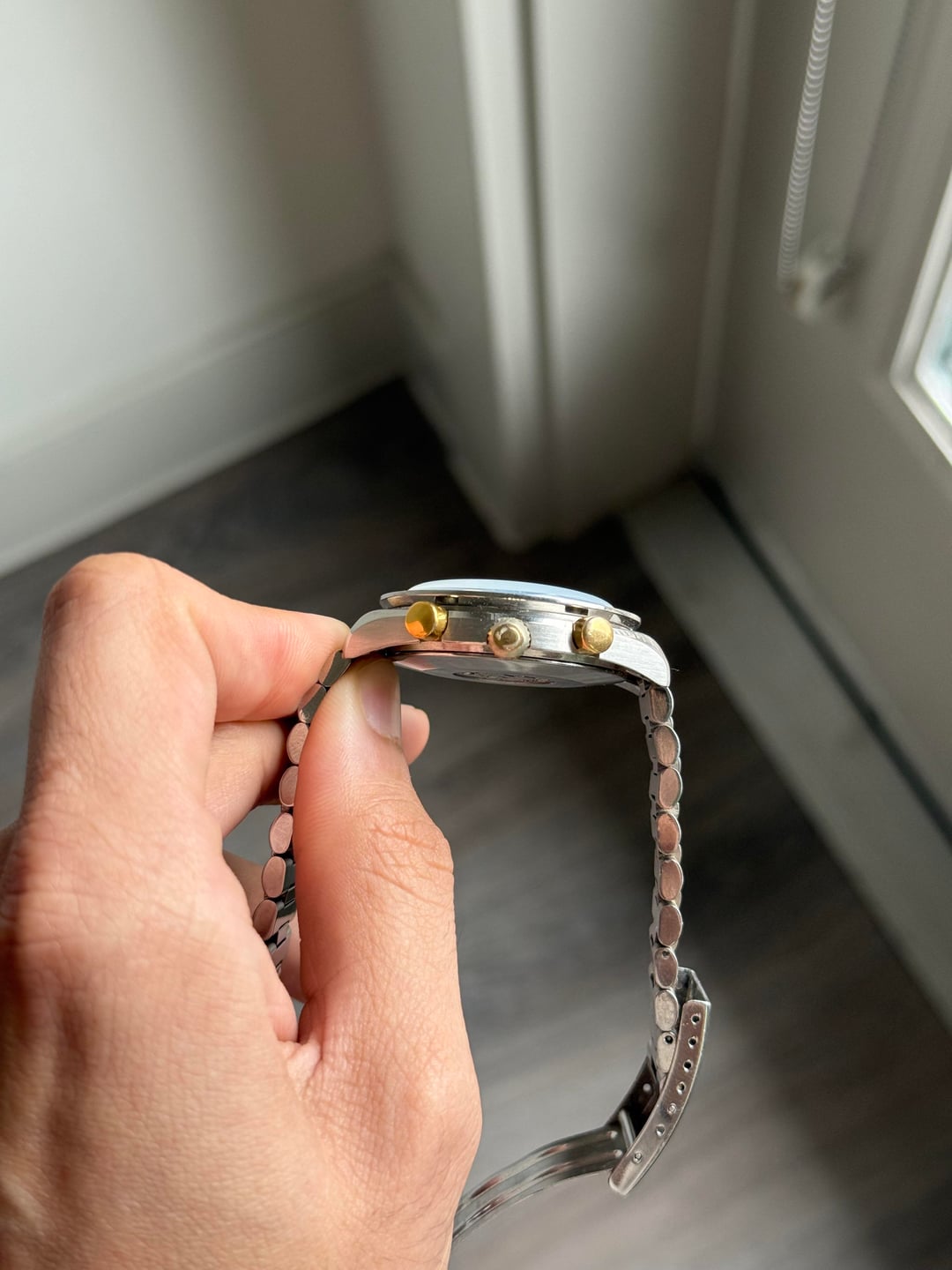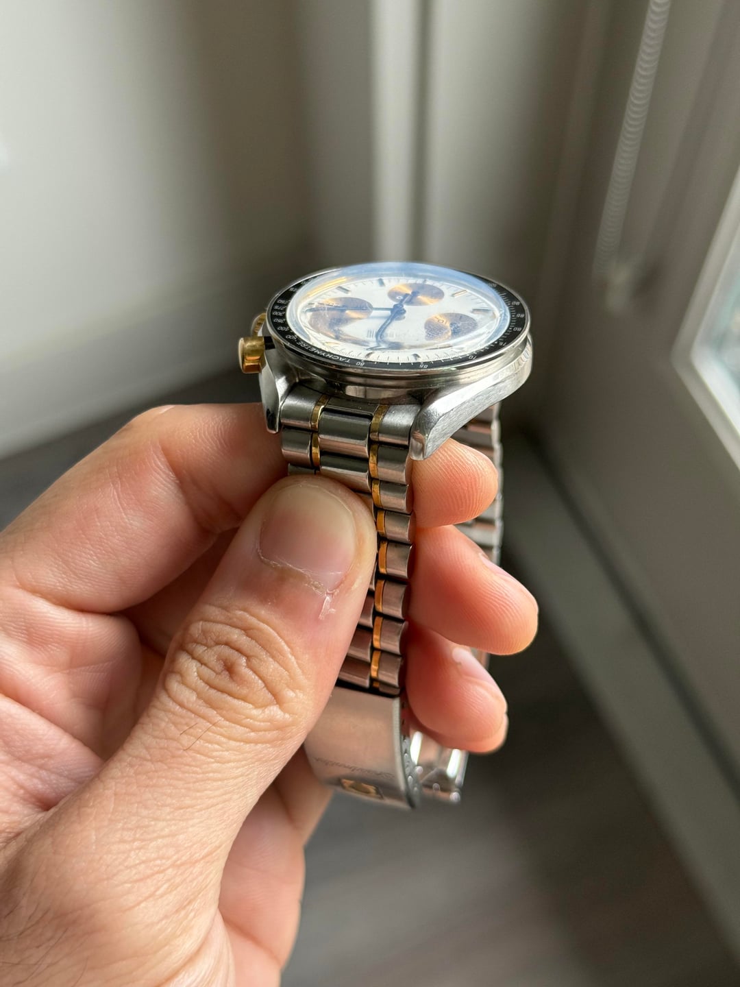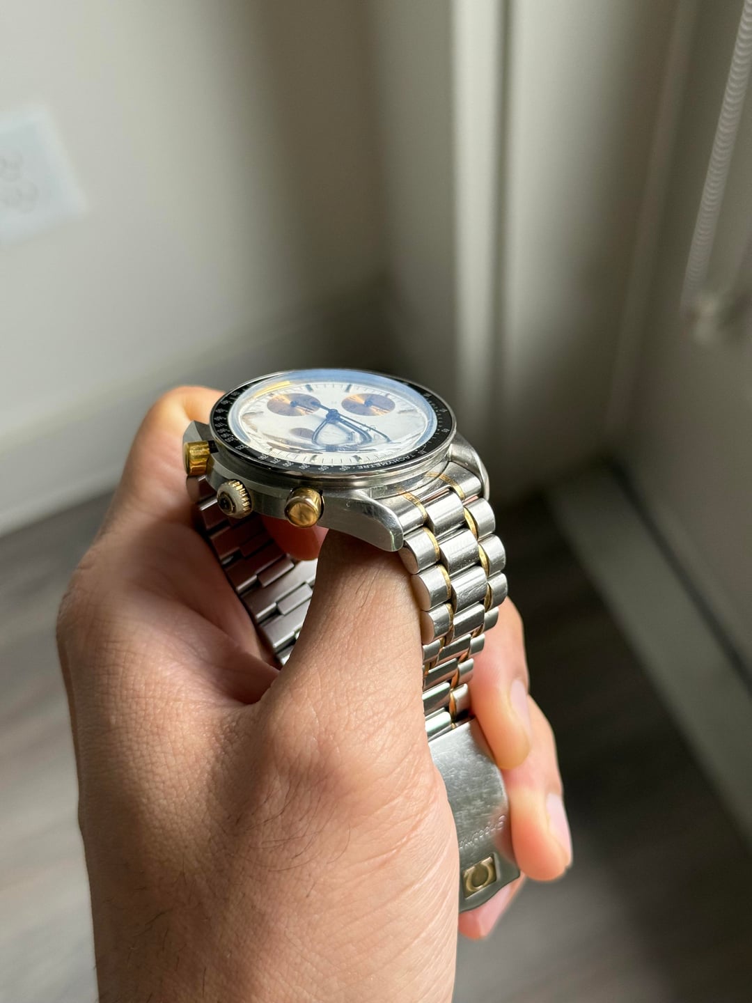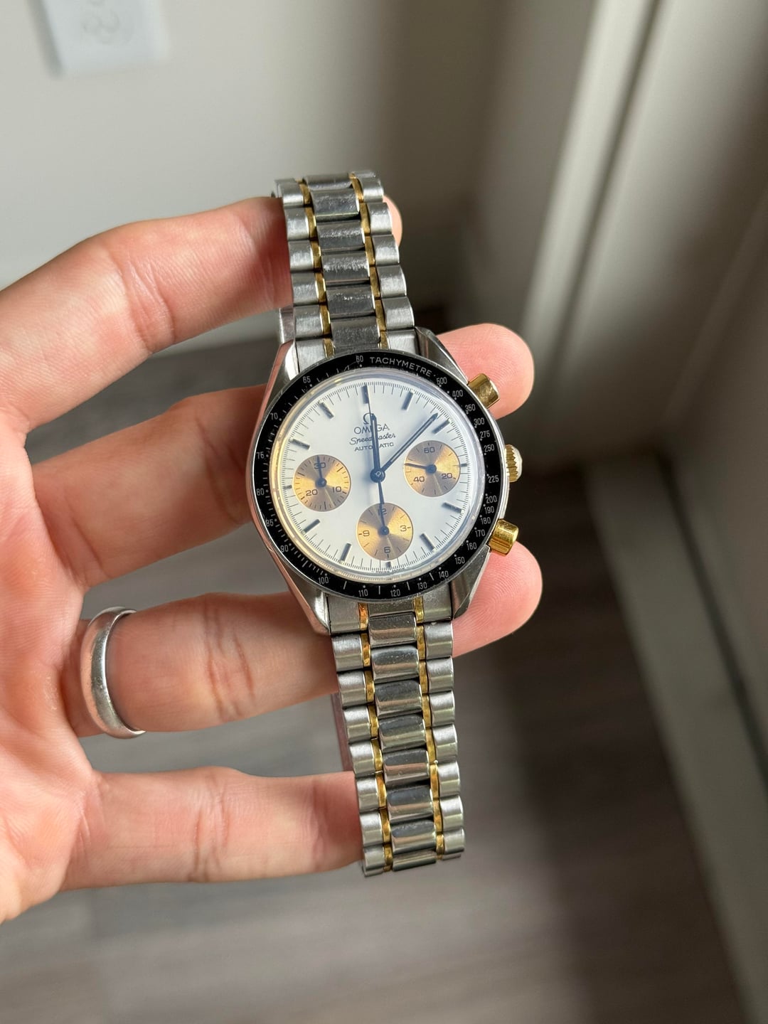 Timestamp: https://imgur.com/a/5sIxGXS WatchEx, got something cool and vintage today. Have a Speedy Reduced 3310.10 with a 39mm case. According to the resources online the serial dates back to 1989 (51-51.9 million serial)! These don’t show up very often and this particular one does have a bit of wear to it but it’ll comfortably fit a 6.75 inch and what’s special about this one is that it comes with an upgraded 175.0033 dial with the white dial and gold sub-dials. Watch has an amplitude of 252, beat error at 0.1ms and is running about +10 sec/day which can easily be regulated so overall in healthy running condition. Chronograph functions as it should! Comes with an eBay authentication card dated 01/03/2025 and its original champagne dial! 💲2️⃣3️⃣5️⃣0️⃣ shipped to you Accepting Wire or Zelle If you don’t want the OG champagne dial, I’ll take $300 off my asking. And, as always feel free to reach out with more questions - always happy to hop on a FaceTime (video) call! Don’t sleep on this one 🔥