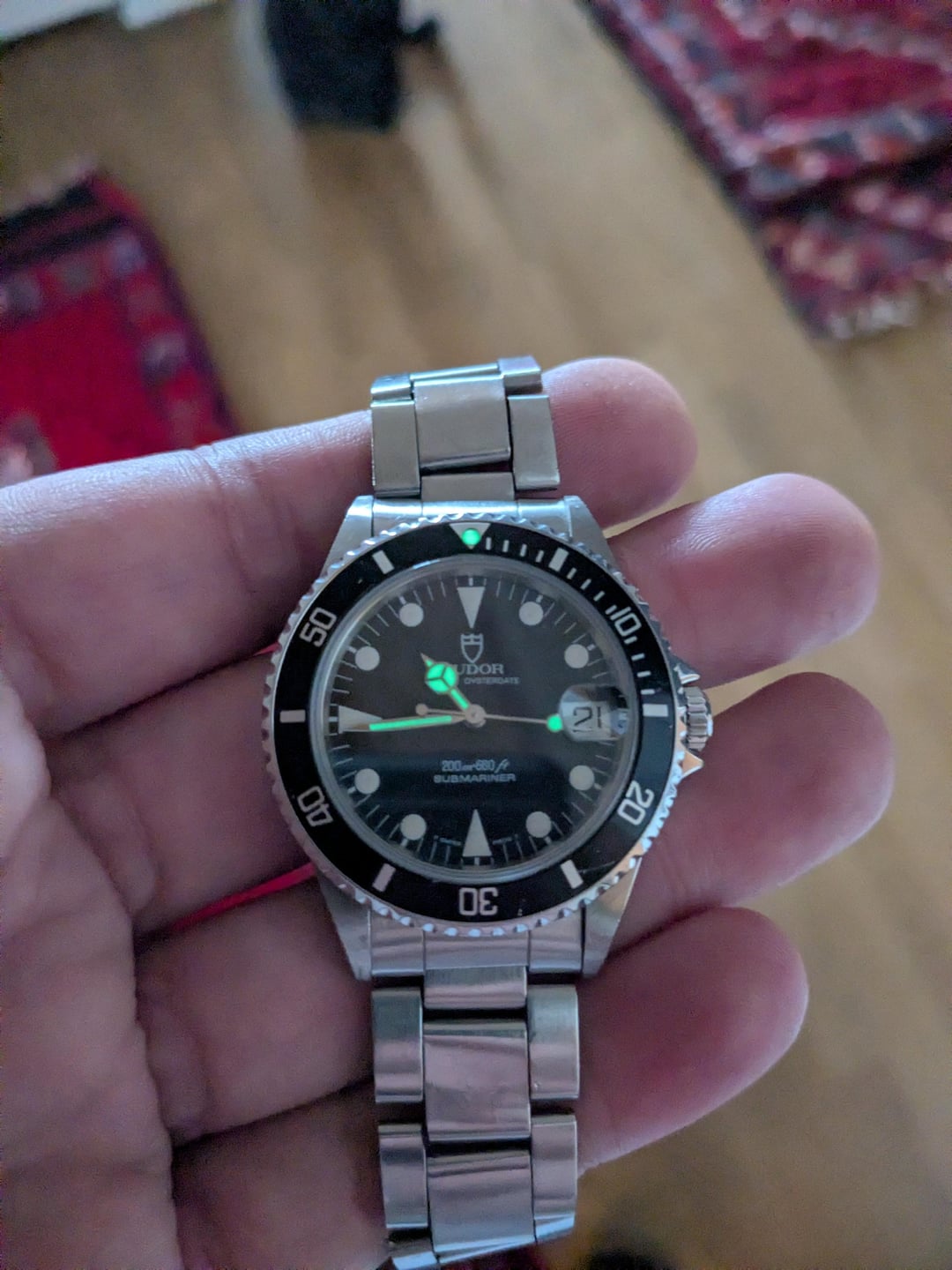 Selling my good condition unpolished 1992 (B4 serial) Tudor 75090 Prince Submariner. The thin profile, 36 mm case, and vintage Oyster bracelet make this watch infinitely wearable and feels like slipping on your favorite pair of comfortable jeans. Rolex insignia on case back and crown. Comes naked and fit to my ~7" wrist. No additional links for the 9315 bracelet, though I could point you towards one or two online sellers that still make these vintage folded Oyster steel links. Running like a top and gaskets were checked at last service ~2 years ago. Winds, sets, and crown screws down with no issues. Small surface scratches throughout bracelet and sides of case but crystal is perfect. Hands and pip were replaced at some point and still glow in the dark. Timestamp: https://imgur.com/a/zwweNn0 CONUS only, could be interested in trades down. $3799 or small discount if you're in the Chicago area