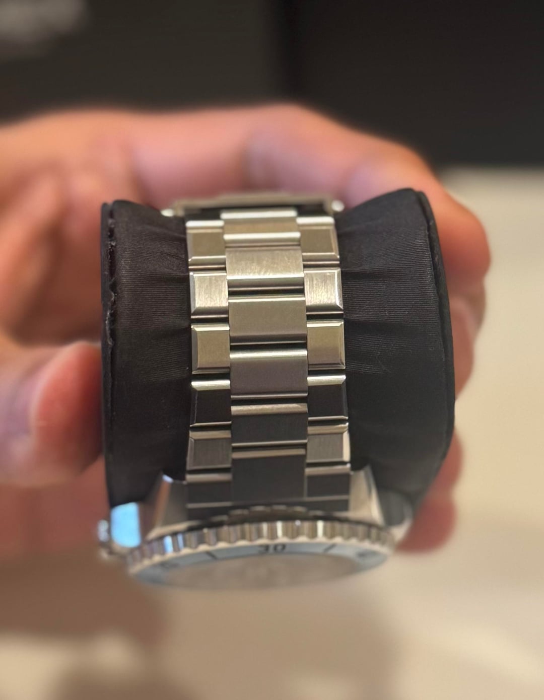 Hi everyone - listing my Baby Reef. I’m in pursuit of a IWC Le Petit and need to sell. Formex Baby Reef 39.5 Bahama Blue Arguably the most comfortable watch I’ve owned with quick adjust clasp! Going to be sad to see it go. Available only for pre order at the moment Dated: Sept 2024 Full kit, including additional silver bezel MSRP (Watch with bracelet and additional bezel): over $2400. Lightly used in daily rotation In excellent condition Small single hair line on the clasp Asking: $1700 shipped CONUS Thank you for looking and happy holidays!