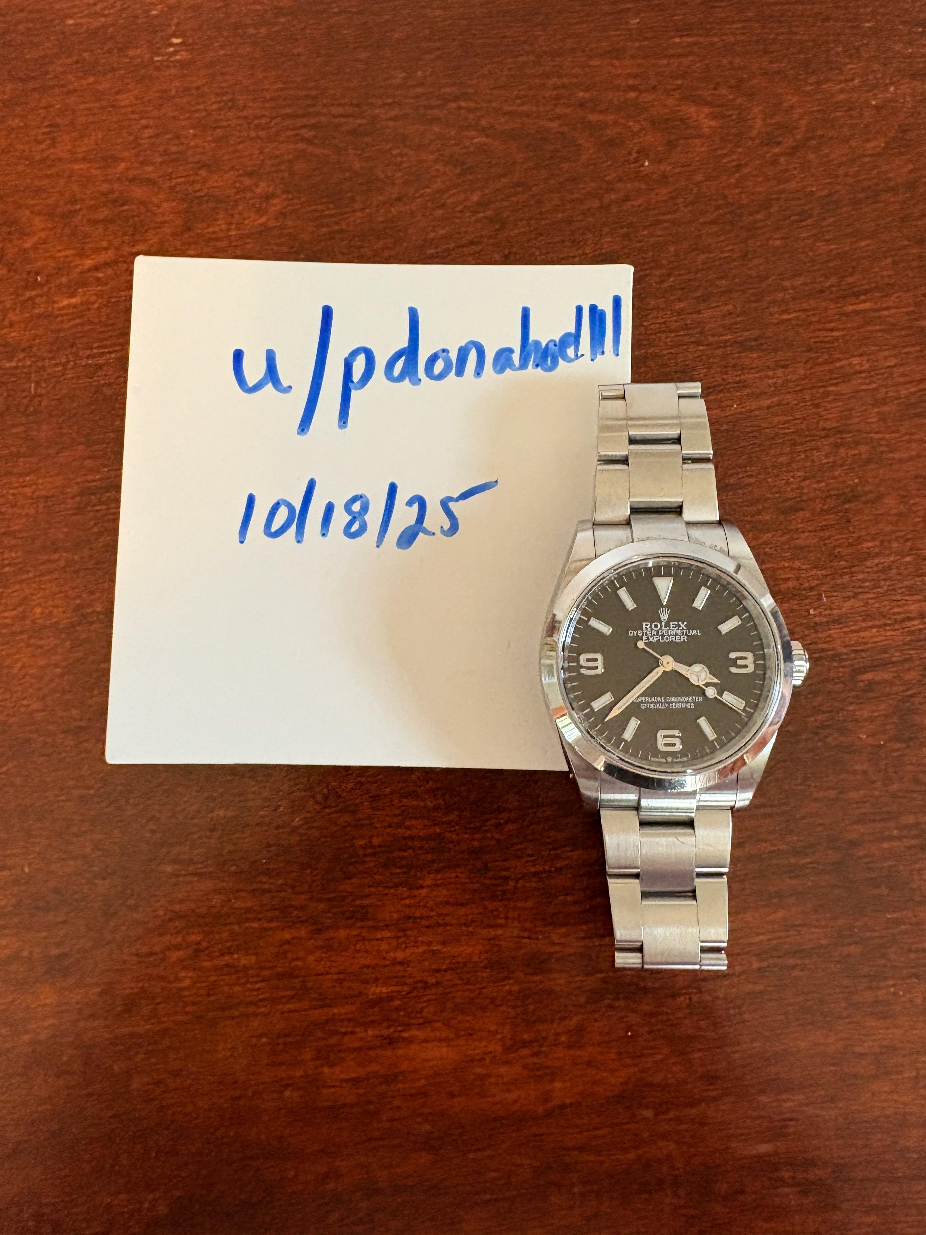 Hey WatchExchange, I am letting go of my excellent condition Rolex Explorer. I am the original owner and purchased it brand new from an AD. Model Number: 124270 Size: 36mm Date of Purchase: 02/22 - Still has two years of original warranty remaining. Condition: In fantastic condition! Has been lightly worn so there are some shallow scuffs here and there ( never been polished/no Cape Cod rags of any kind). The sapphire crystal is in pristine shape and the watch operates perfectly keeping time well within specs. Please refer to the pictures to get an accurate representation of the condition of the watch. Full Set Included: Tags, Box and White Outer Sleeve, Dated Warranty Card, All Links, Card Holder, Manuals. Price: $7100 net to me. Shipped from NY State USA, includes overnight insured shipping anywhere in CONUS Payment: Wire or Zelle If you have any questions or concerns please feel free to reach out. I can provide more photos, a video call, and the original purchase receipt that I am not uploading but are included. Thank you for taking the time to view this listing. Excellent watch, wearable, iconic, goes with everything, and full set and documentation for buyer peace of mind. I have purchased and sold a 1960's Omega Constellation on WatchExchange and sold it after acquiring this watch through WatchExchange but I did not do flair correctly but I think you can see my prior history. Also, photos available with me enjoying the watch are on my profile. Patrick Pictures located at this link. [https://imgur.com/a/Wyqf3Z3](https://imgur.com/a/Wyqf3Z3)
